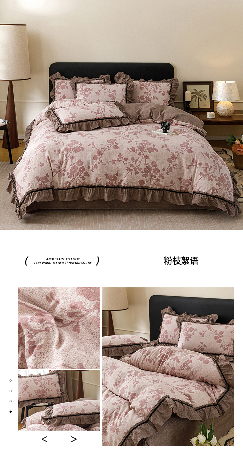 (总)悦然毛巾被 2026新款原麻水洗提花四件套,粉枝絮语,花境织梦,咖枝雾影,蓝花雾影,紫萝绮梦,紫莓花田,紫枝凝香,棕枝花信