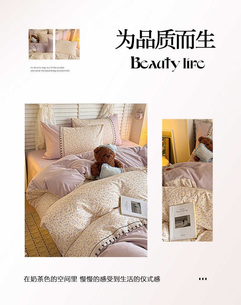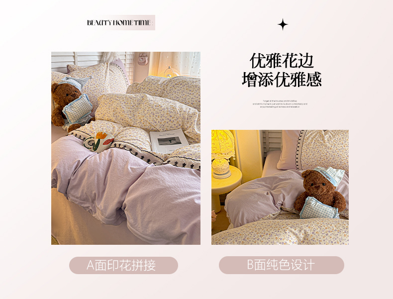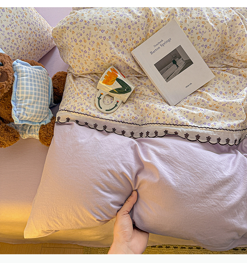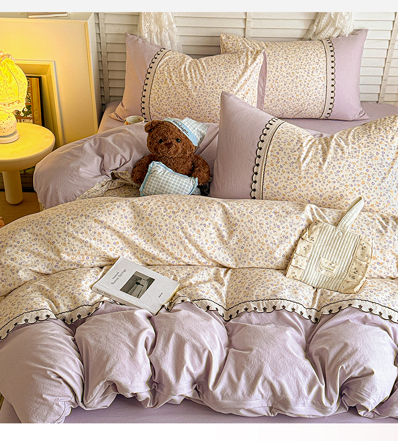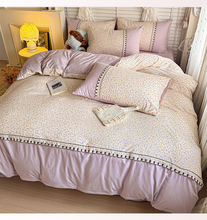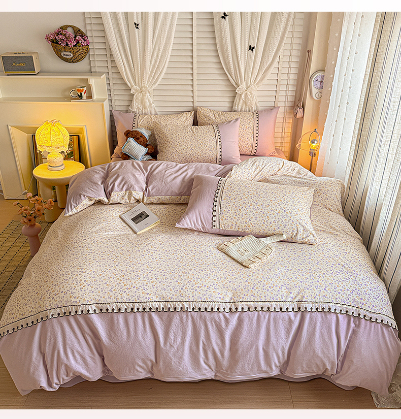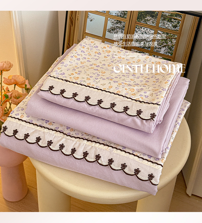 当前位置: 91家纺网 > 商品网购 > 床品套件 > 四件套 > 其它四件套 > 鑫利来家纺 2026新款古法水洗棉法式花边四件套甄选纯棉花边拼接款四件套印花被套床单单品四件 花千朵