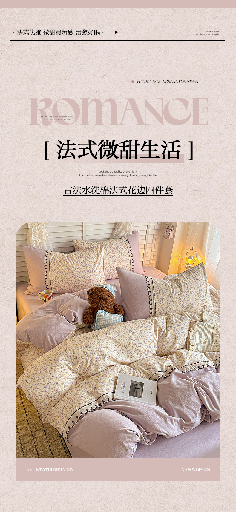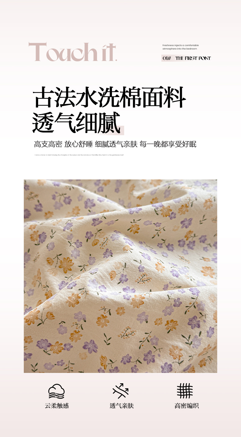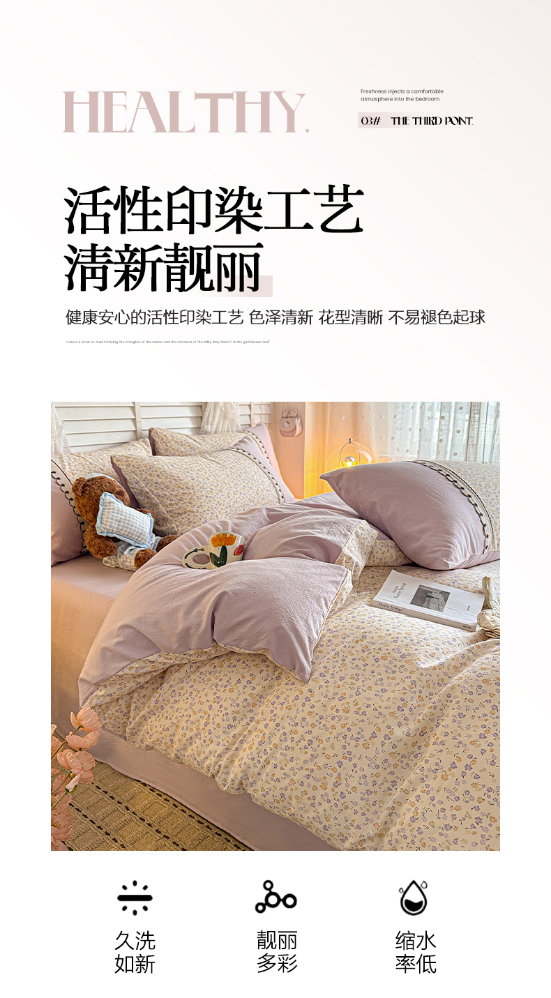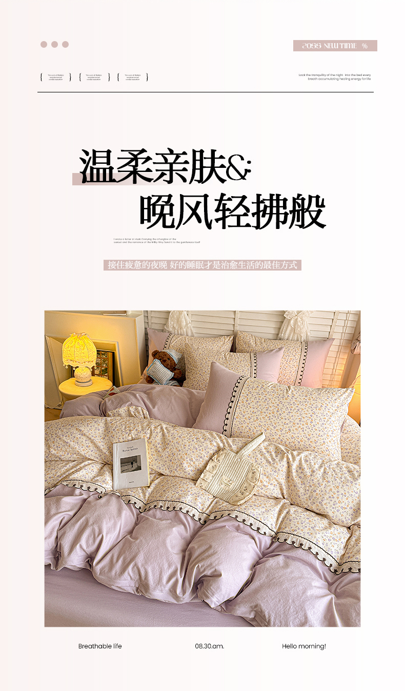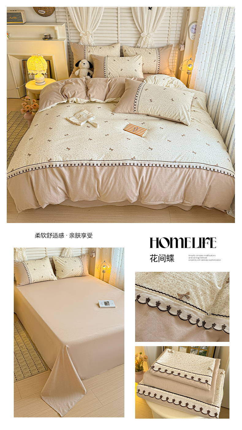 当前位置: 91家纺网 > 商品网购 > 床品套件 > 四件套 > 其它四件套 > 鑫利来家纺 2026新款古法水洗棉法式花边四件套甄选纯棉花边拼接款四件套印花被套床单单品四件 花千朵
