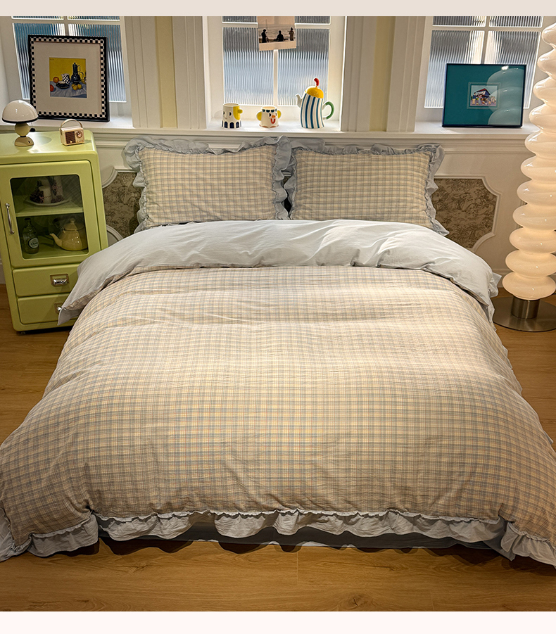 曼町家居 2026春夏全棉纯棉水洗棉花边款四件套 未眠