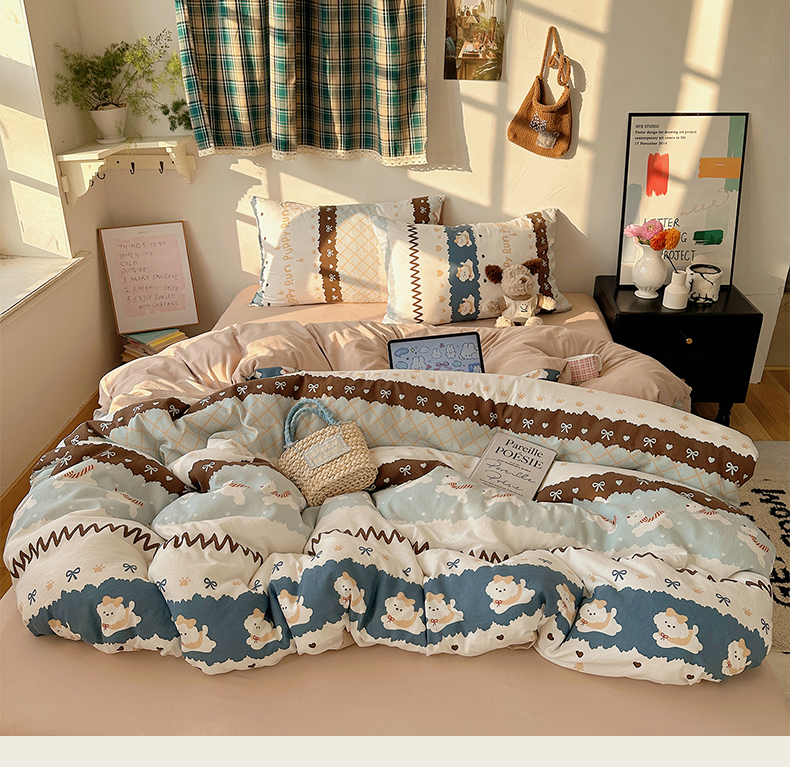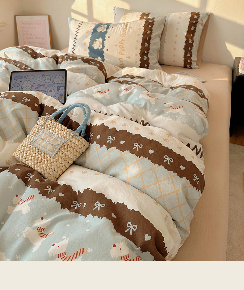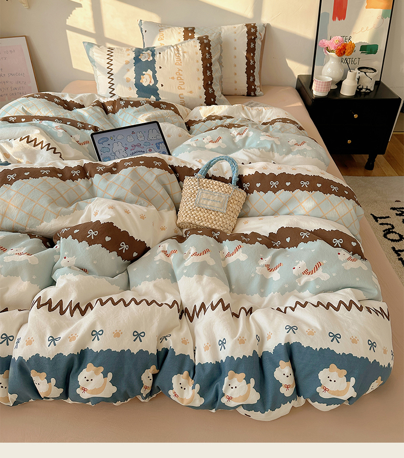 (总)沐芷 2026 【提供买家秀】水洗棉四件套A类简约小清新床上用品床笠款被套床单三件套被罩卡通可爱,奔向幸福,云朵狗,饼干熊,彩虹天堂,烘焙师,蓝豹喵星人,蓝色假日,猫屿甜心,萌猫派对,趣跑,森系田园兔,雾蓝西高地,旋转木马,芝士碎