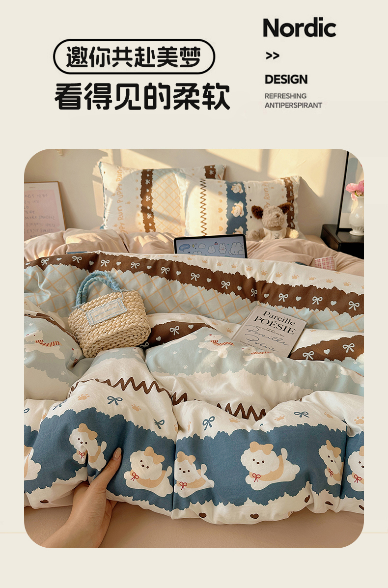 (总)沐芷 2026 【提供买家秀】古法水洗仿棉A类四件套床上用品三件套被套被罩床笠款---第一波,萌犬游记,豹纹音乐,波点汪语,草莓啵啵,花屿庄园,灰度情书,家园,假日萌犬,蓝调序曲,猫咪甜点屋,毛绒熊仔,暖意小熊,甜心紫熊,兔耳朵,樱桃物语,雨沫