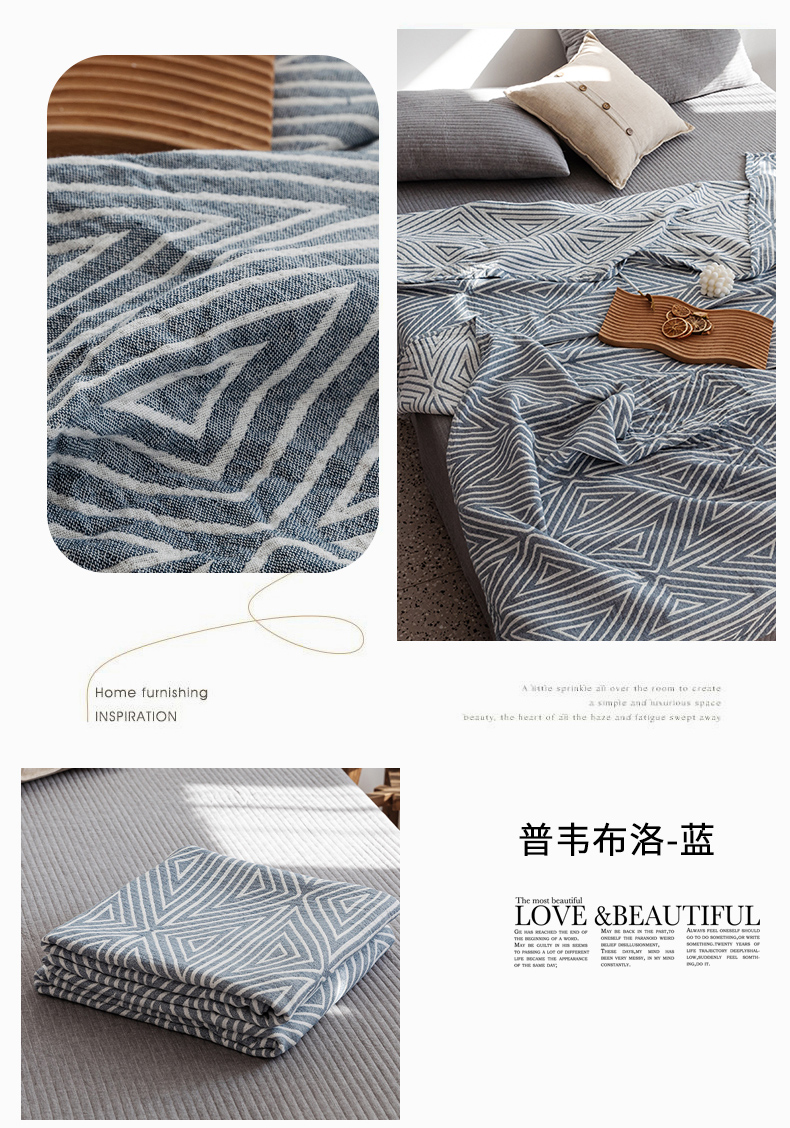 商品名称:朴尔家纺-毛巾被 2026新款格调简约风全棉纯棉三层纱布毛巾被-朴尔经典款常年备货 西西里-蓝