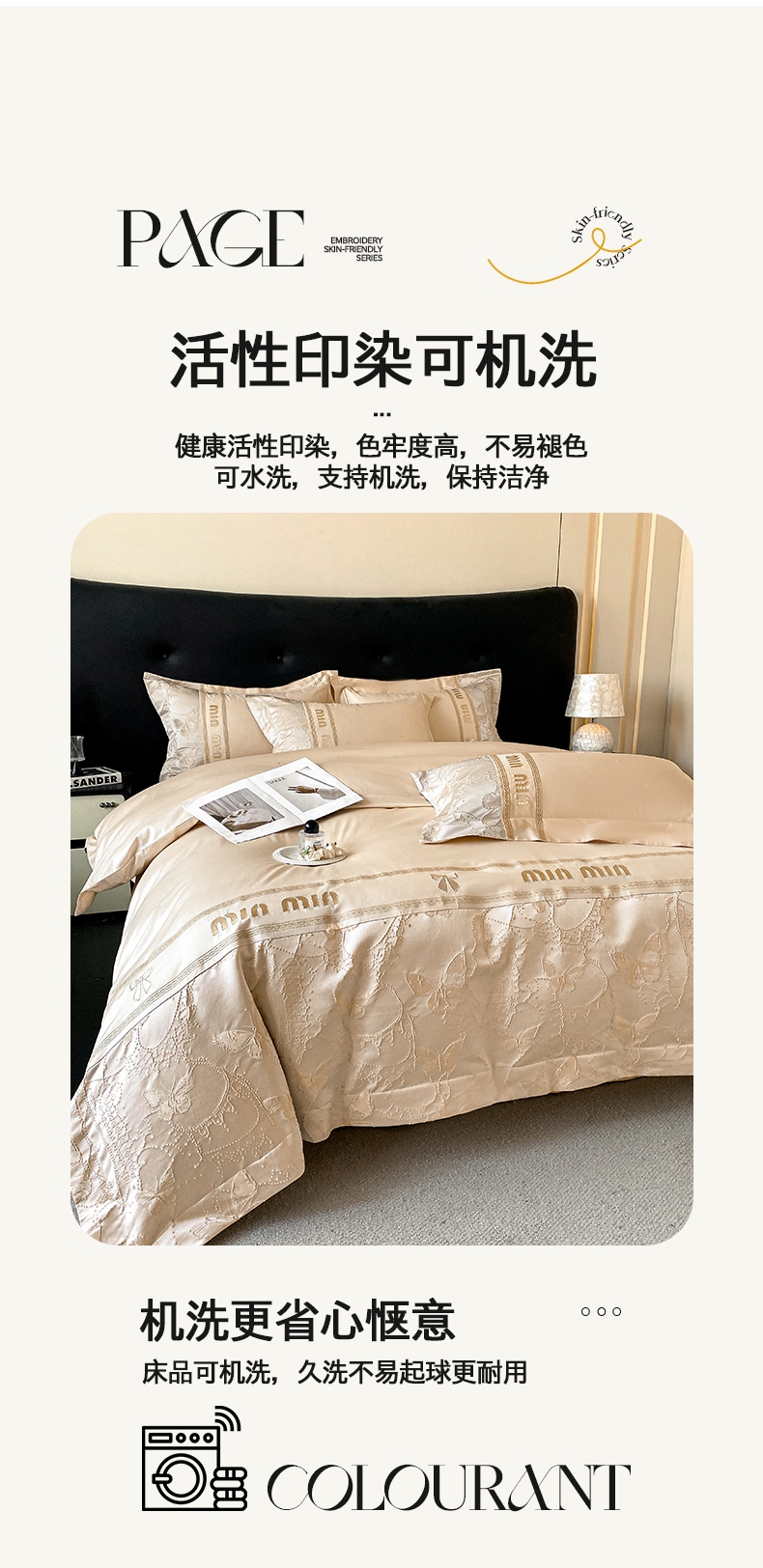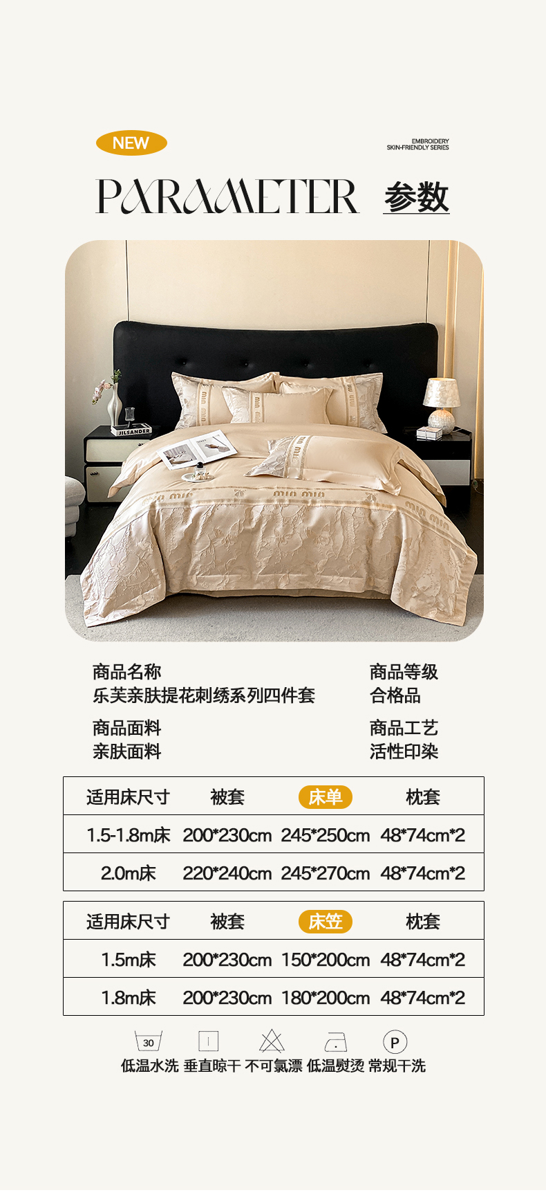 当前位置: 91家纺网 > 商品网购 > 床品套件 > 四件套 > 全棉普通四件套 > 置顶家纺 2026新款春夏乐芙亲肤提花刺绣系列四件套 乐芙-香槟