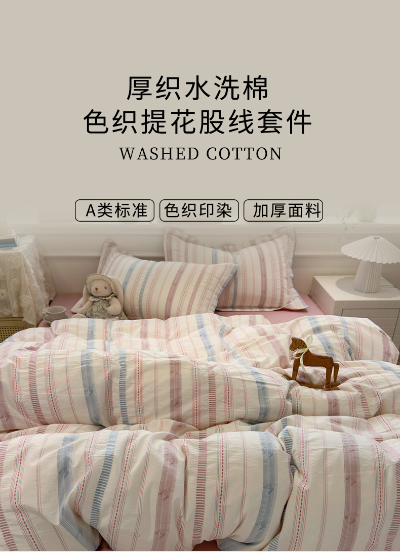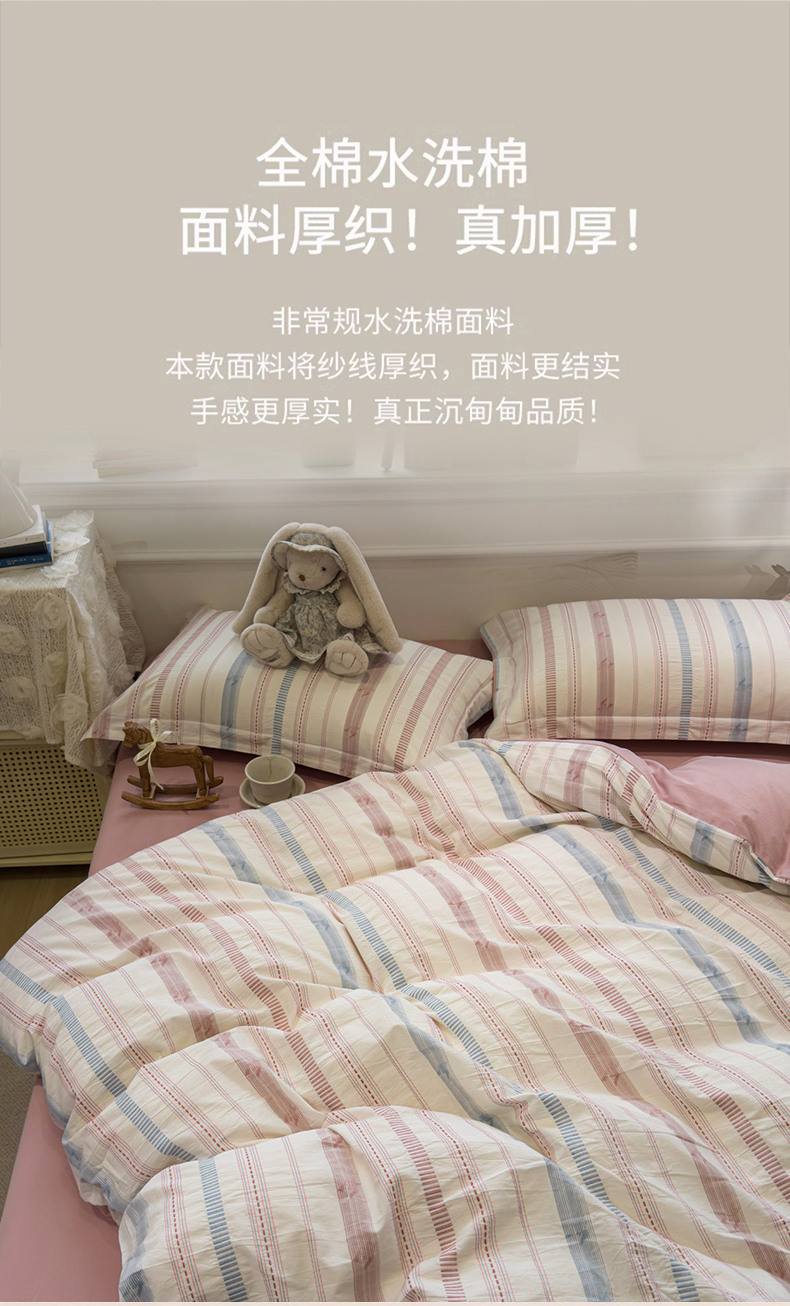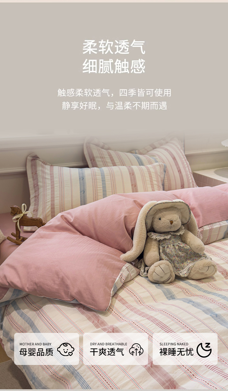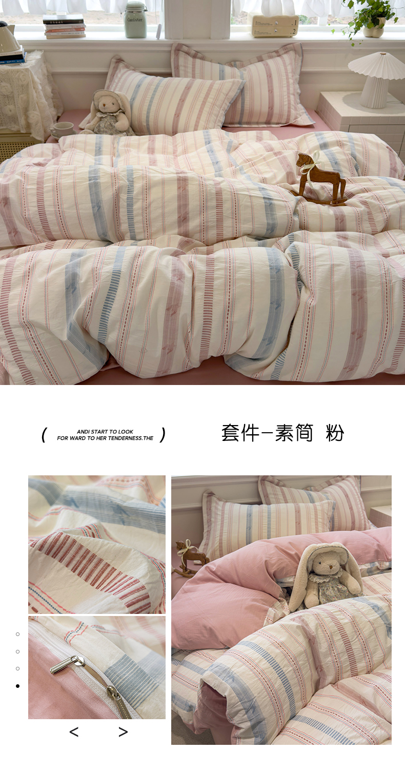 当前位置: 91家纺网 > 商品网购 > 床品套件 > 四件套 > 全棉普通四件套 > 眠博士 2026新款全棉纯棉水洗色织提花股线四件套 套件-素简 粉