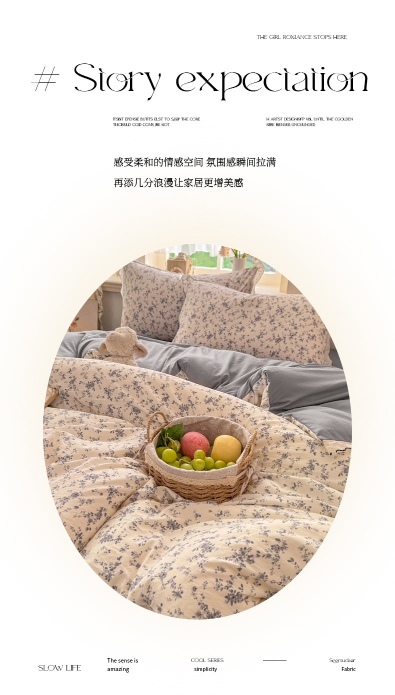 (总)富米莱(原臻工厂) 2026春夏新款仿棉A类韩系大花边床盖床裙四件套,小杏芙,波点汽球,悠悠花香,烟火气星辰,小花蓝,小花粉,晚樱落海,山樱漫岛,玫瑰庄园,花影,耳机猫猫,动物世界,七彩点点,艾利花园