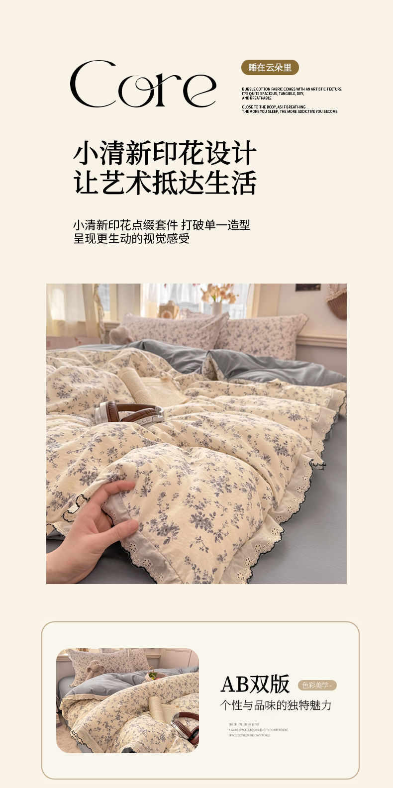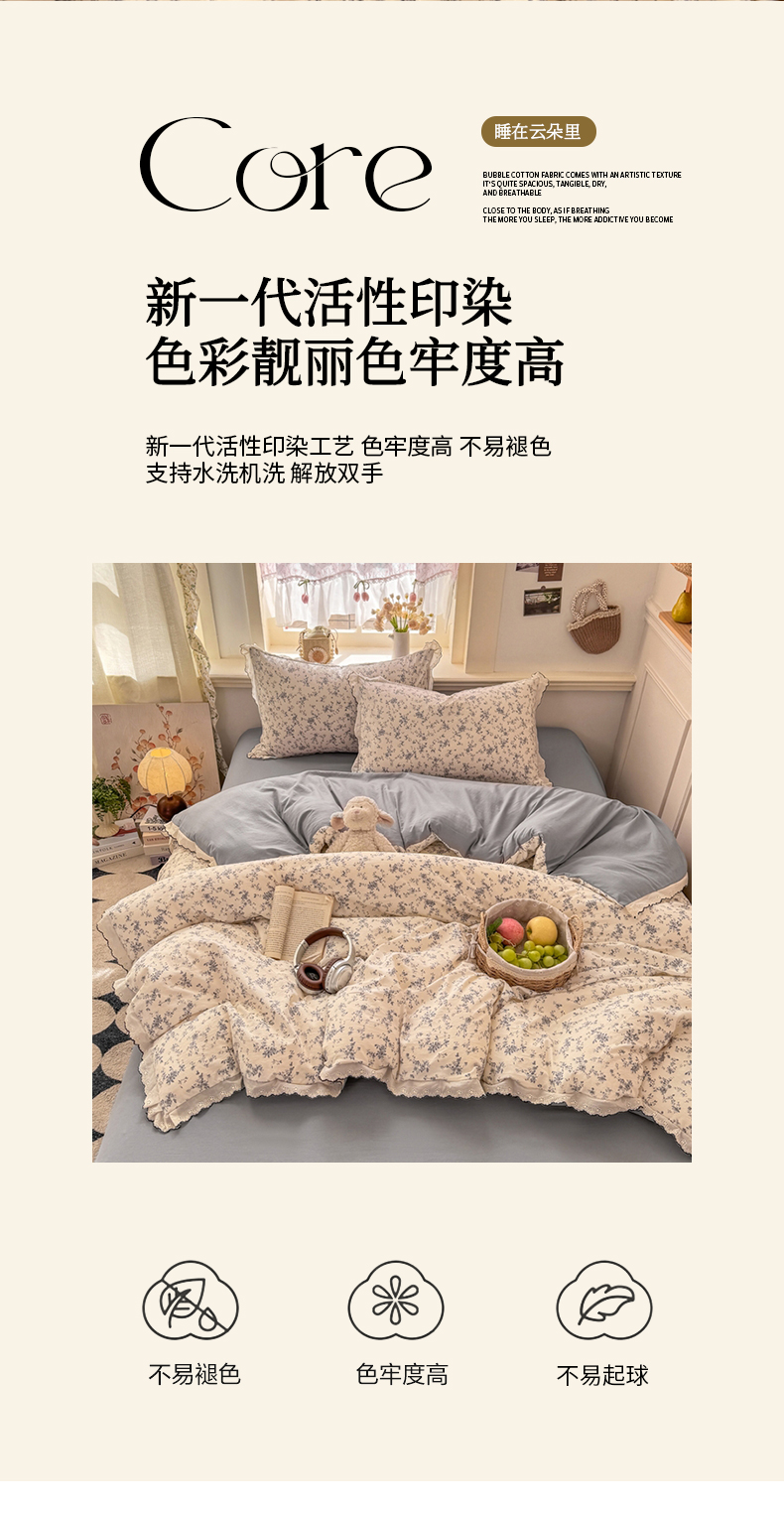 (总)富米莱(原臻工厂) 2026新款韩系古法韩国水洗棉云棉大布袋法式浪漫大花边床盖夏凉被床盖四件套,爆了樱桃,点点黑,点点红,浮世绘,花满满,浪漫玫瑰,马上有钱,玛奇朵,猫猫粉,猫猫蓝,莫松染,暮山紫,奶油兔,砚余墨,知春绿,紫兔兔