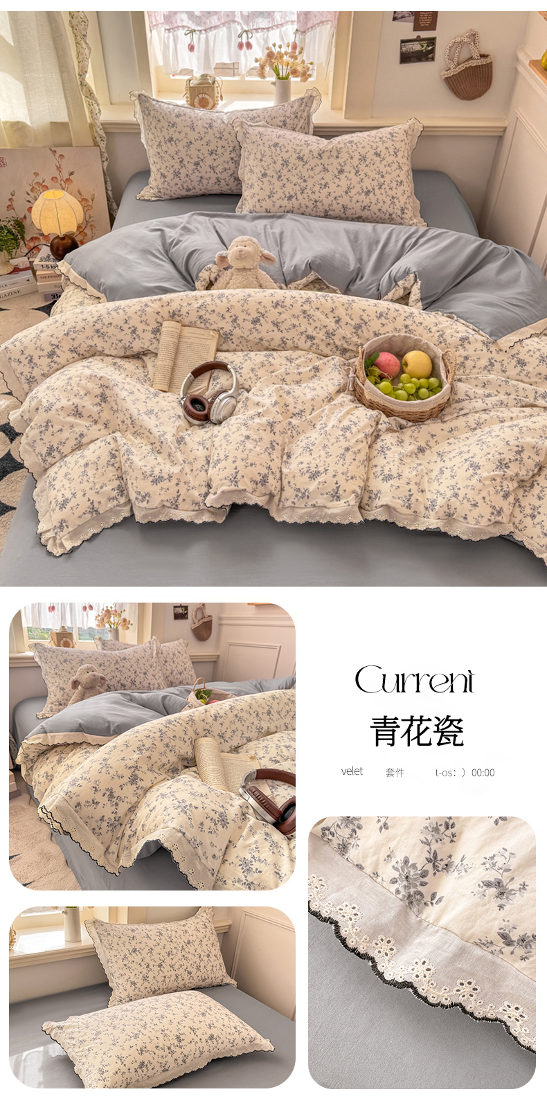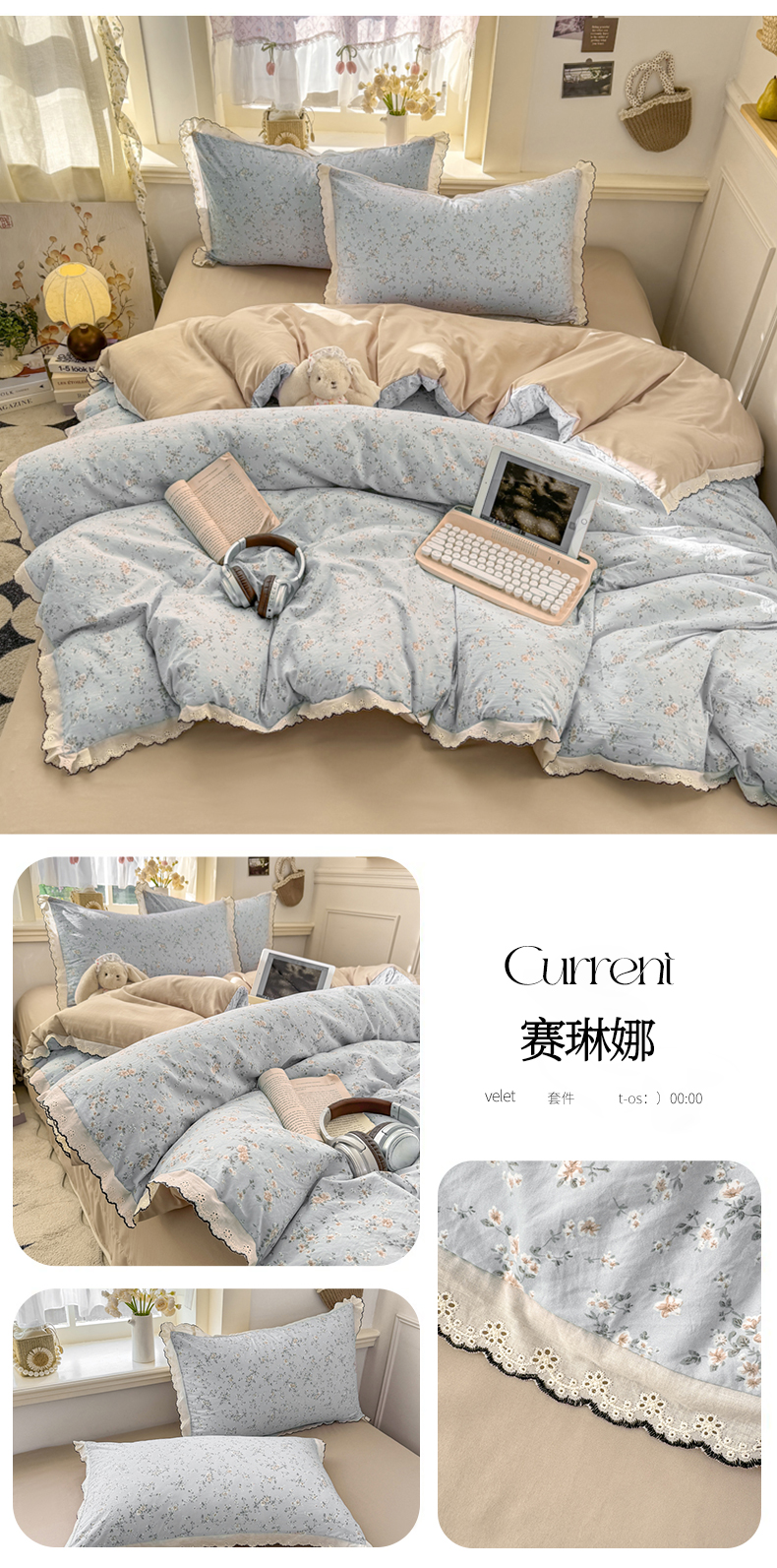 (总)富米莱(原臻工厂) 2026新款法式赫本风大花边A类古法仿棉云感纱床盖床裙四件套-场景二,豹纹猫咪,狗狗家族,花间谣,花影浅吟,花语玫瑰,槿上花开,卡布奇诺,兰絮语,漫野,恰恰狗,午后时光,雾蓝小熊,小玫瑰,星河入梦,知否