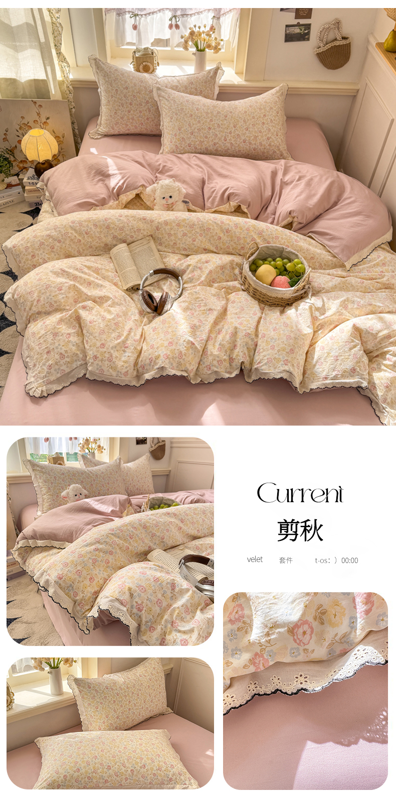 (总)富米莱(原臻工厂) 2026新款敲可爱奶呼呼云感双层纱韩国大布袋韩版大花边床盖床裙四件套-超级治愈,竹韵花语,暗夜玫瑰,大脸二胡猫-粉,大脸二胡猫-咖,见花则喜,焦糖樱桃,木马,苹果小怪,七宝,切块草莓猫,裙子小兔,时光一红,像素小猫,星眠云野,一口青苹果,摘星,组合图
