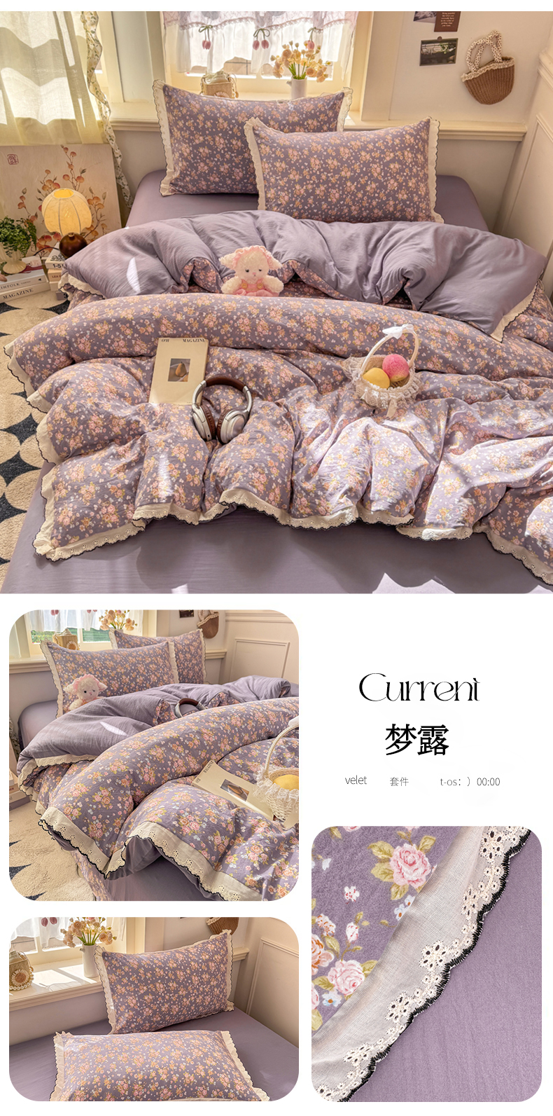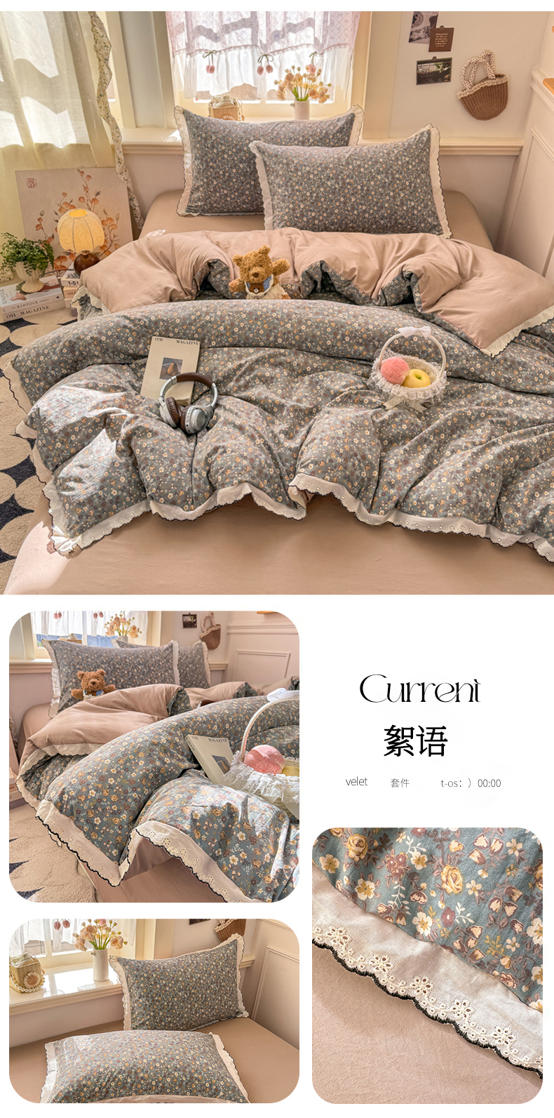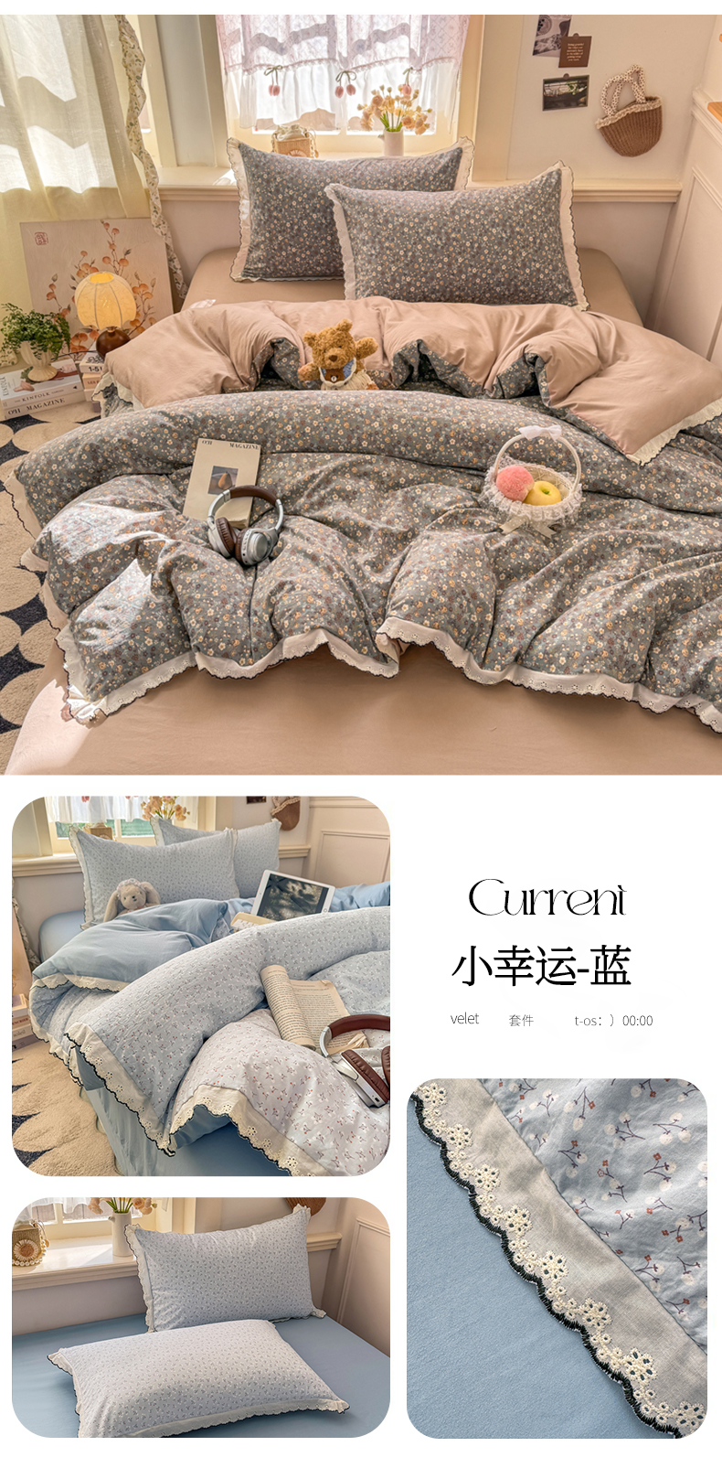 (总)富米莱(原臻工厂) 2026新款法式赫本风大花边A类古法仿棉云感纱床盖床裙四件套,豹纹猫咪,狗狗家族,花间谣,花影浅吟,花语玫瑰,槿上花开,卡布奇诺,兰絮语,漫野,恰恰狗,午后时光,雾蓝小熊,小玫瑰,星河入梦,知否