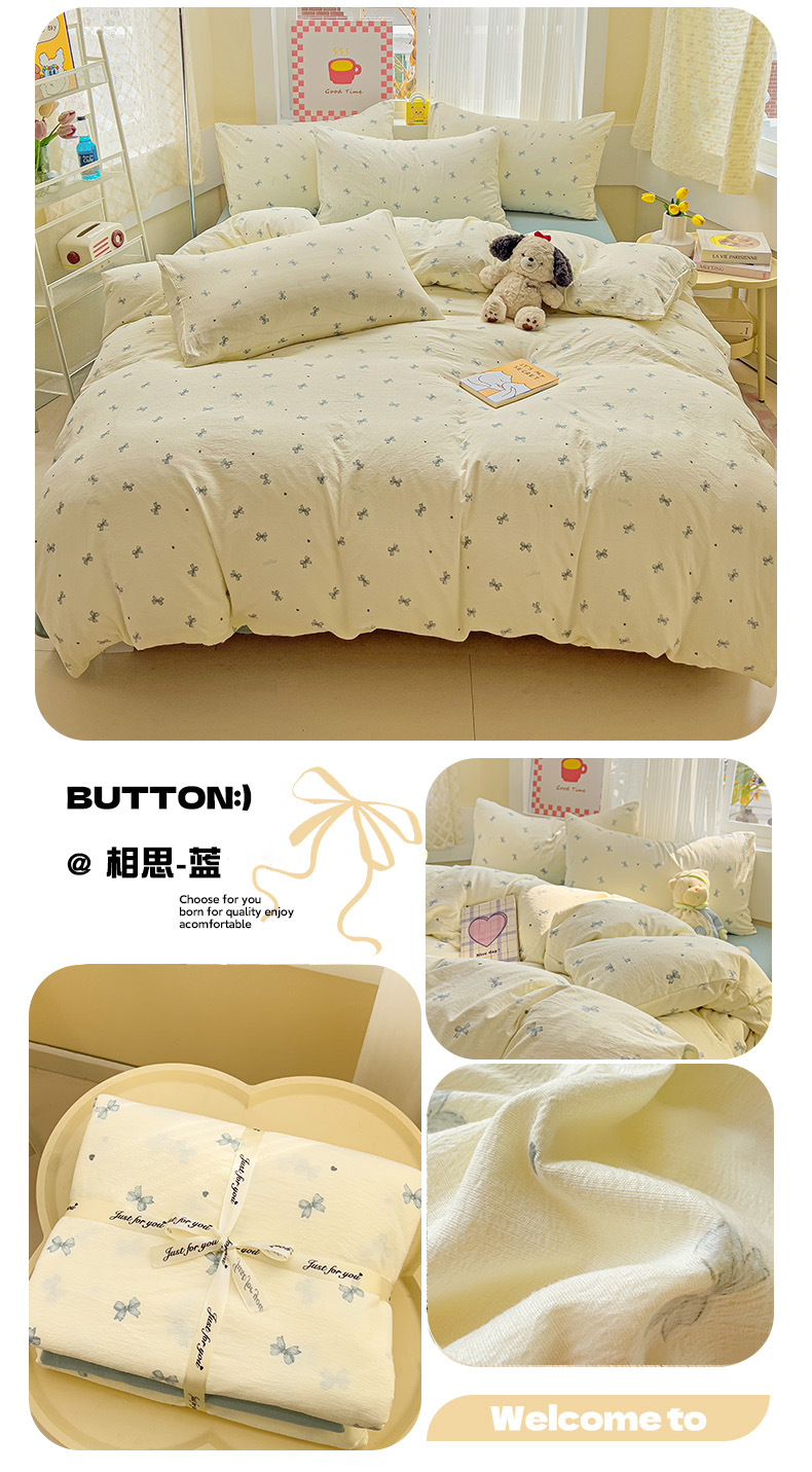 当前位置: 91家纺网 > 商品网购 > 床品套件 > 四件套 > 双层纱四件套 > 优选良品 2026新款加厚云感棉双层纱四件套小碎花被套床单床笠款学生三件套新款直播爆款 恋如青柠香