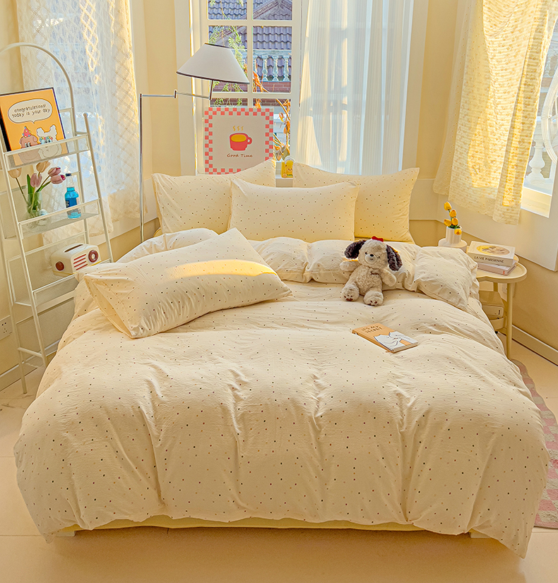 当前位置: 91家纺网 > 商品网购 > 床品套件 > 四件套 > 双层纱四件套 > 优选良品 2026新款加厚云感棉双层纱四件套小碎花被套床单床笠款学生三件套新款直播爆款 小波点