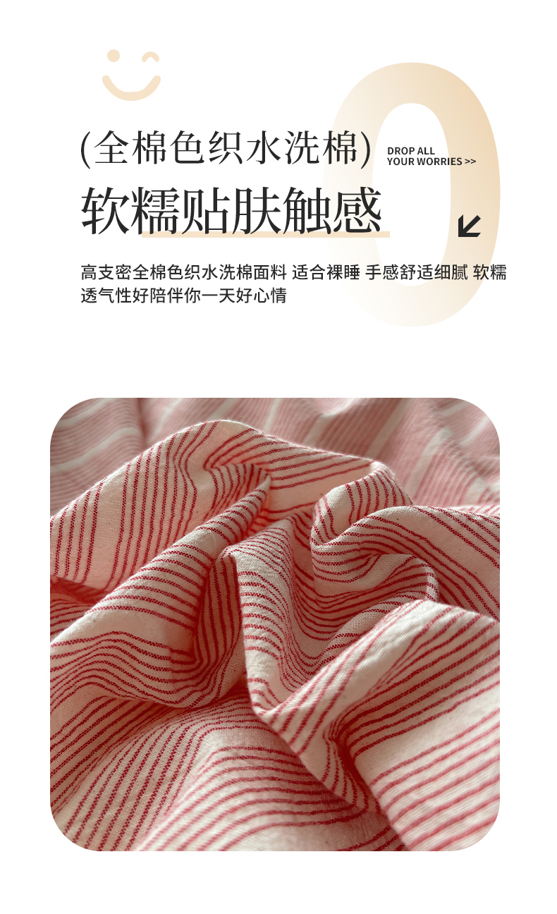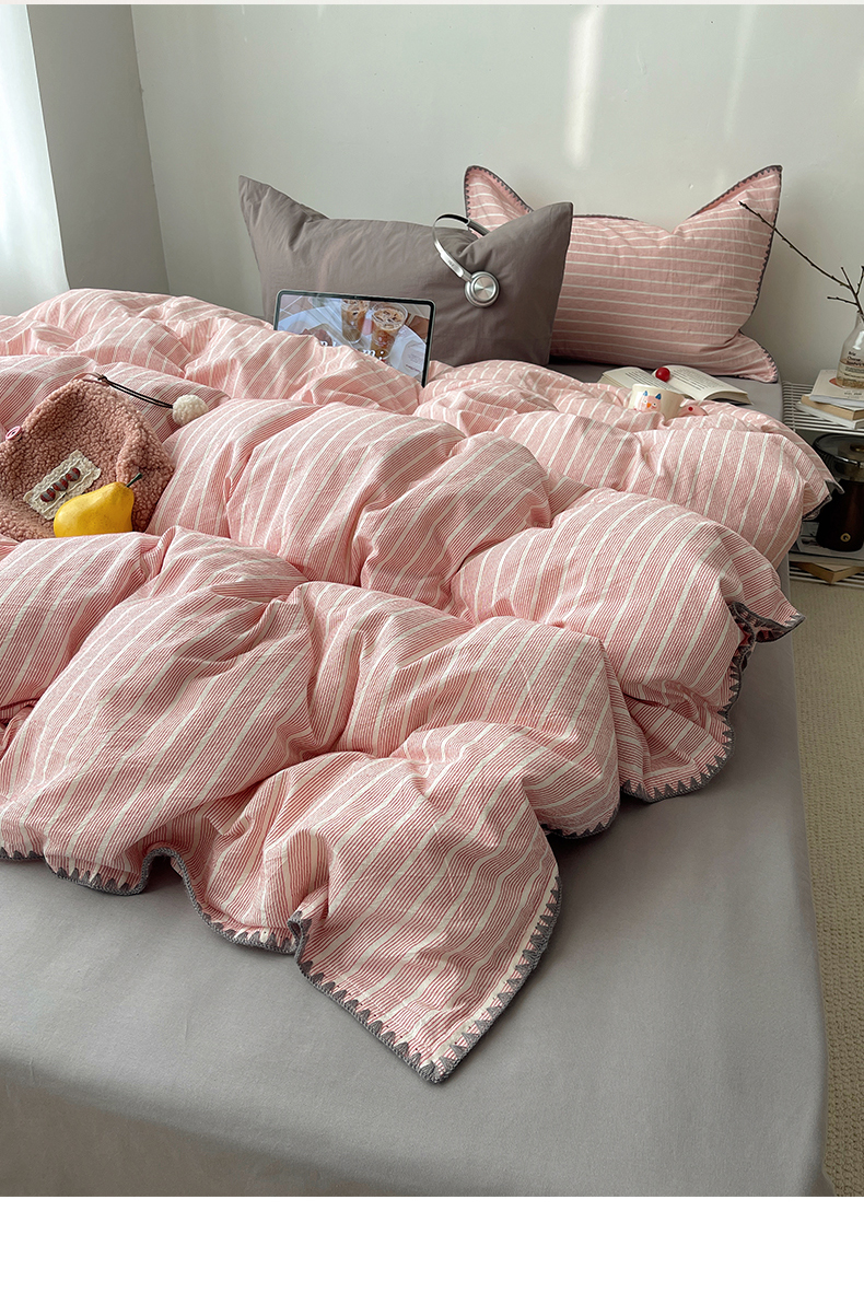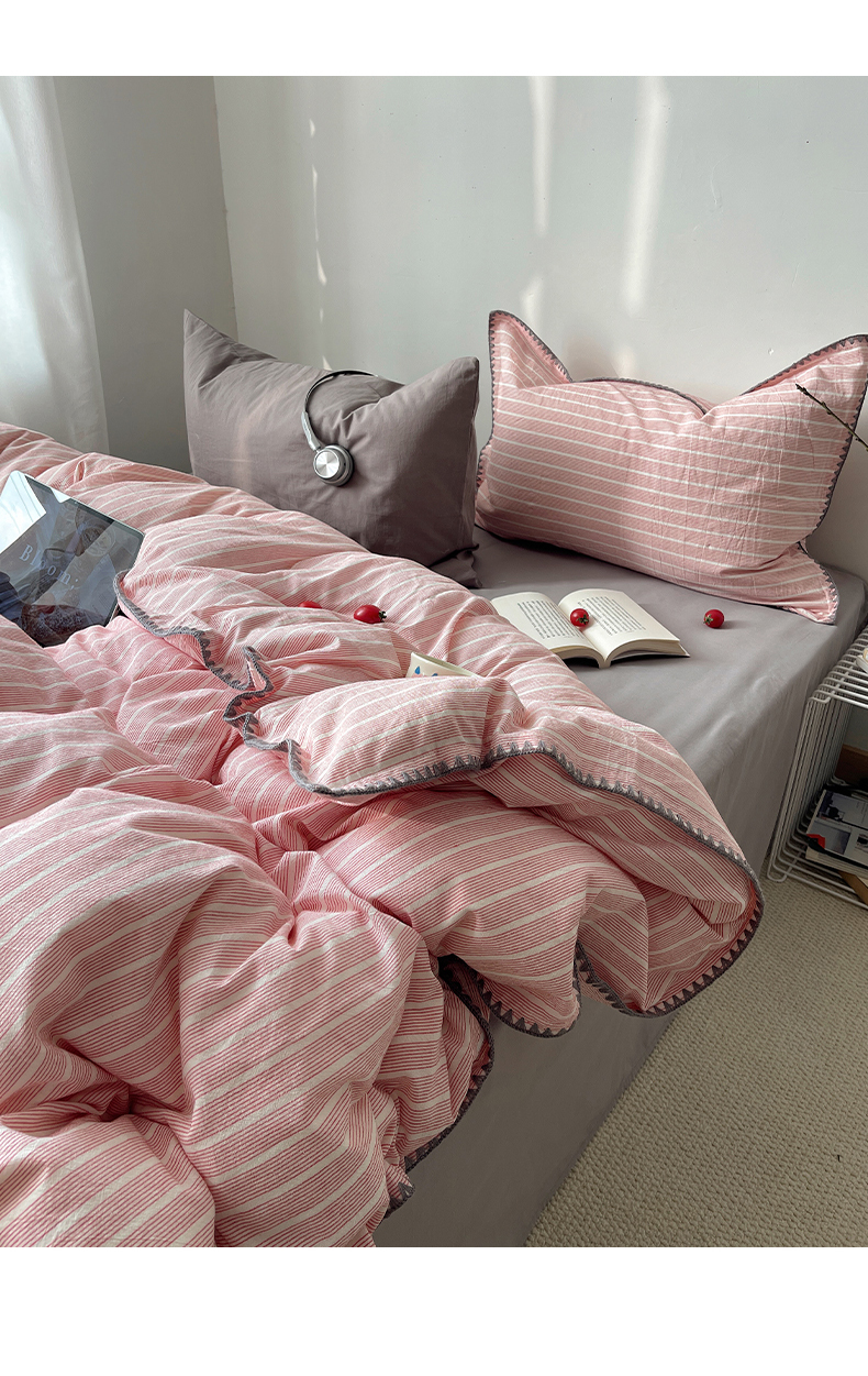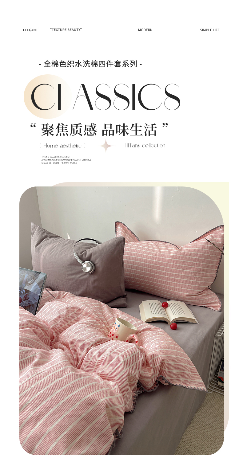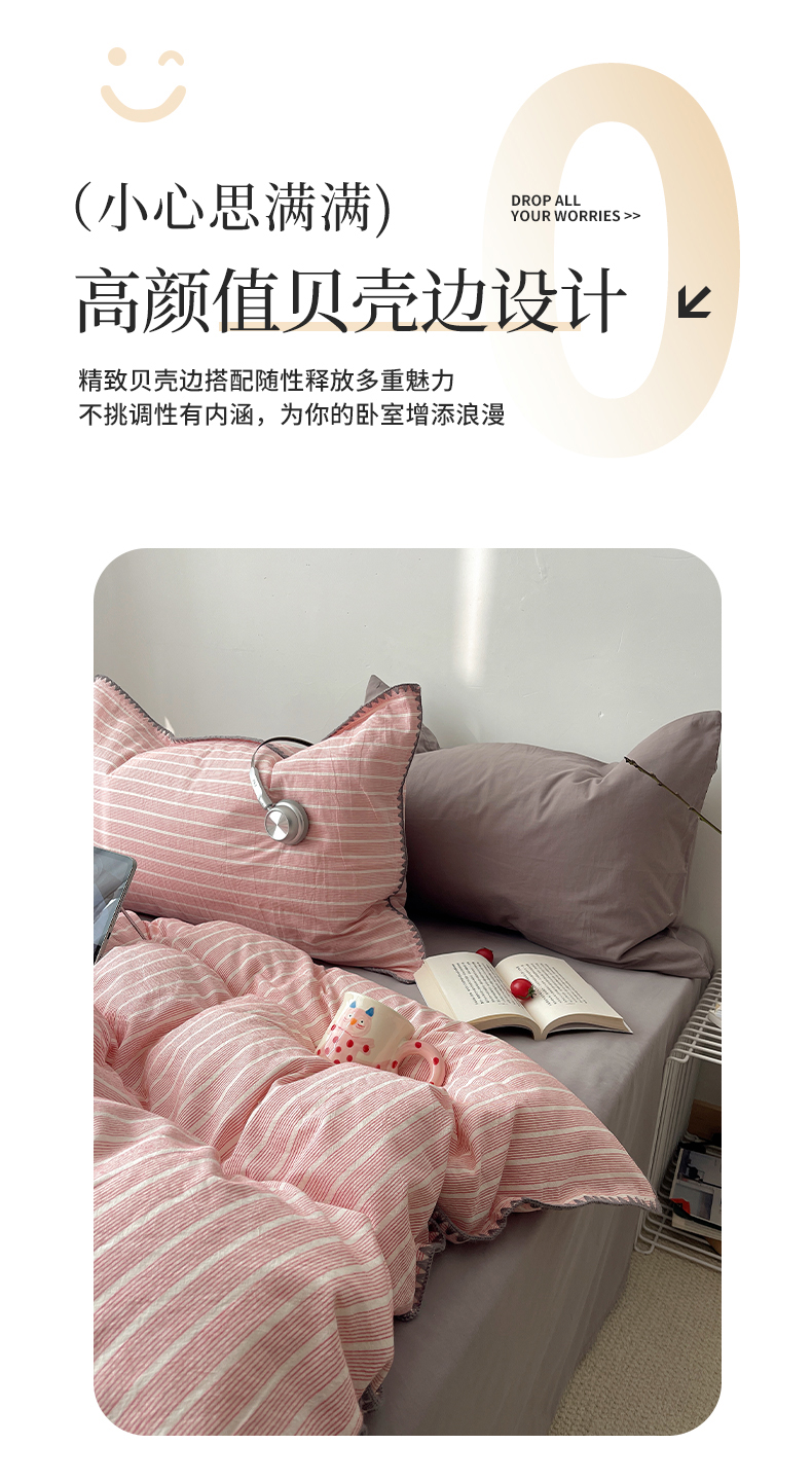 当前位置: 91家纺网 > 商品网购 > 床品套件 > 四件套 > 全棉普通四件套 > 瑞莱 2026年新款全棉纯棉水洗棉贝壳边四件套 粉序白织