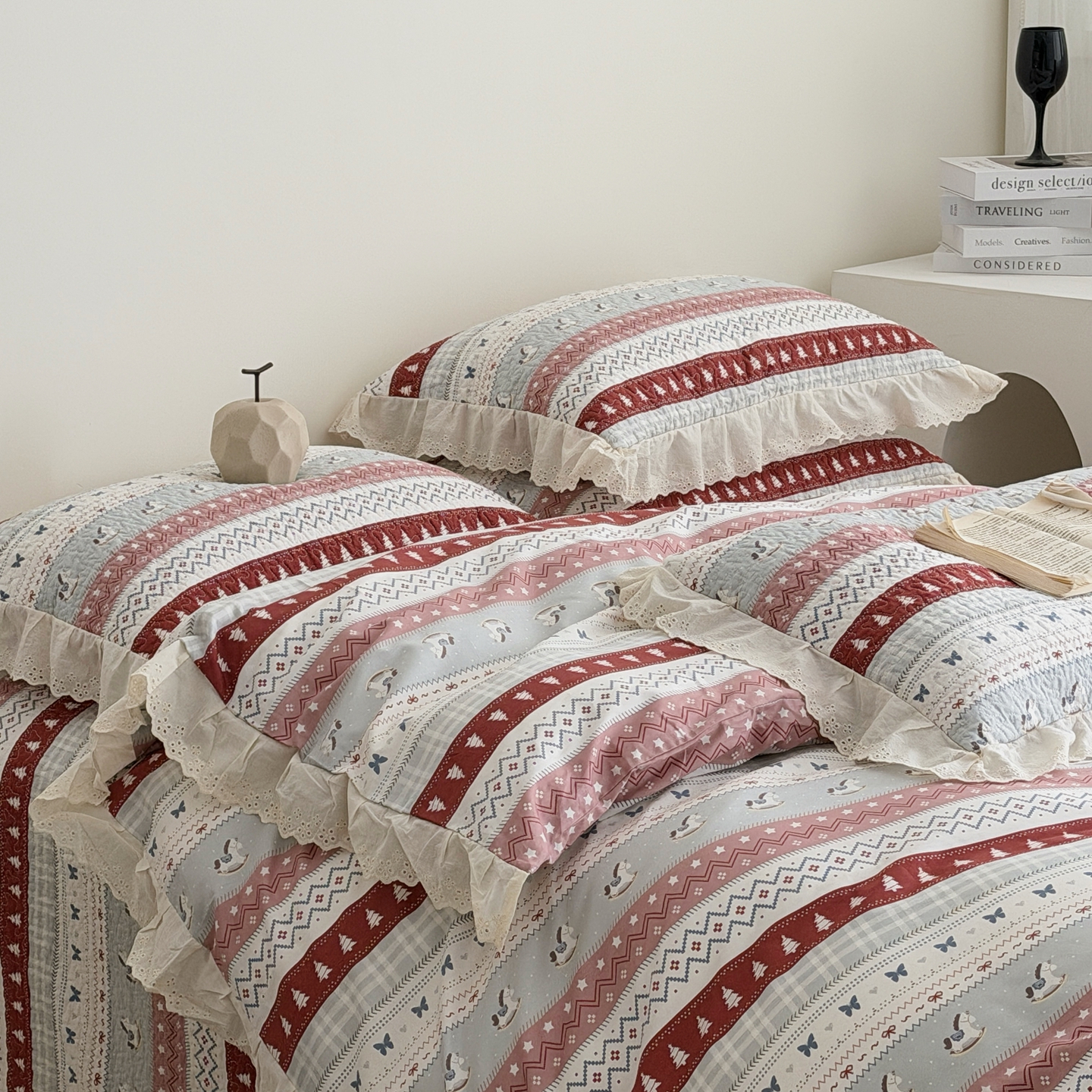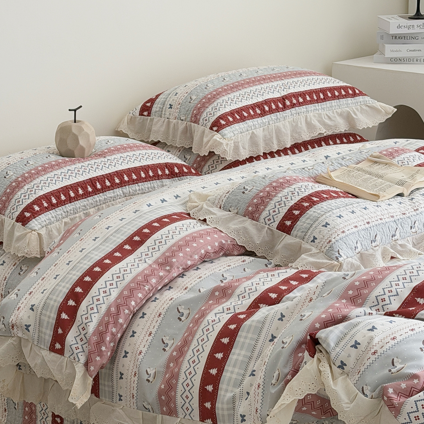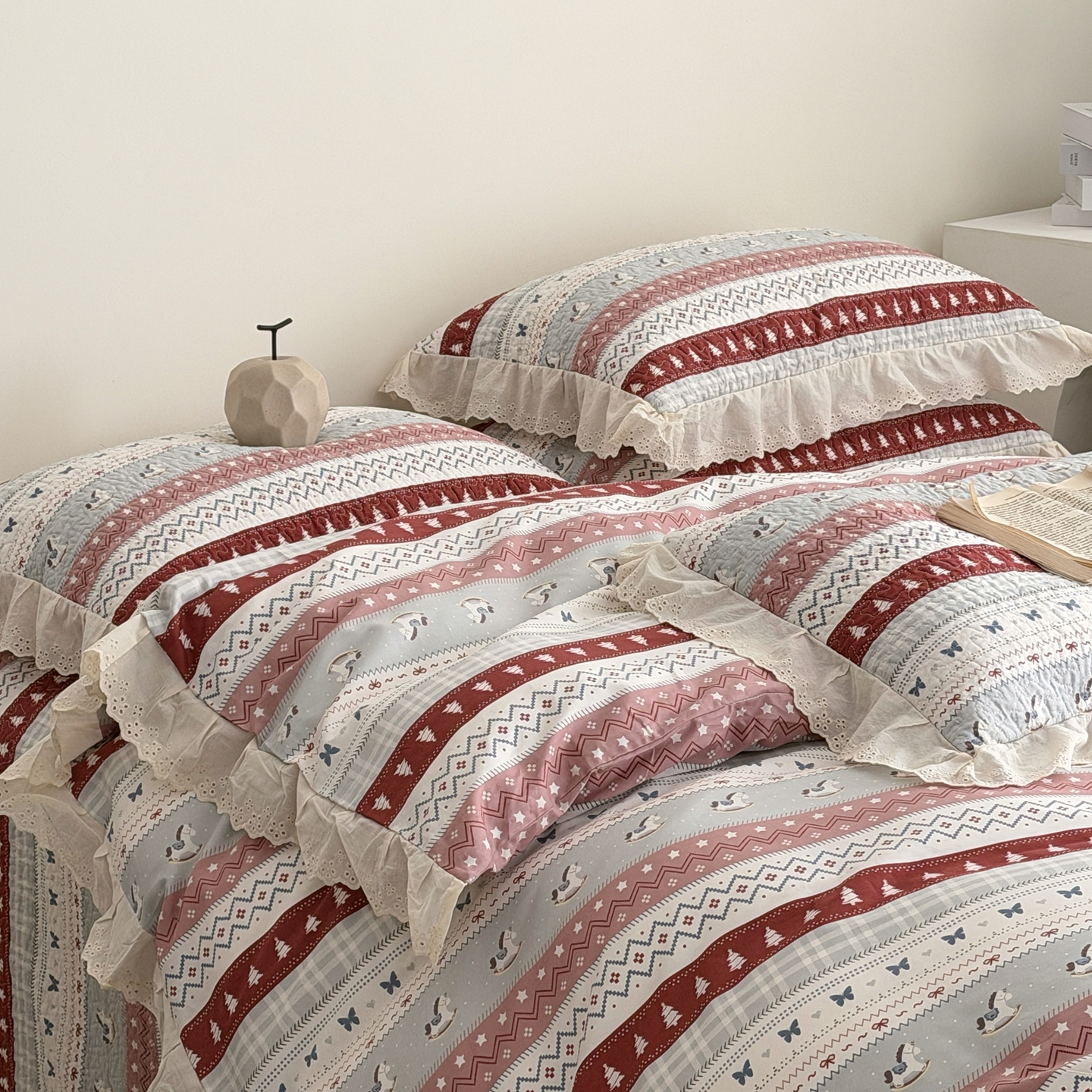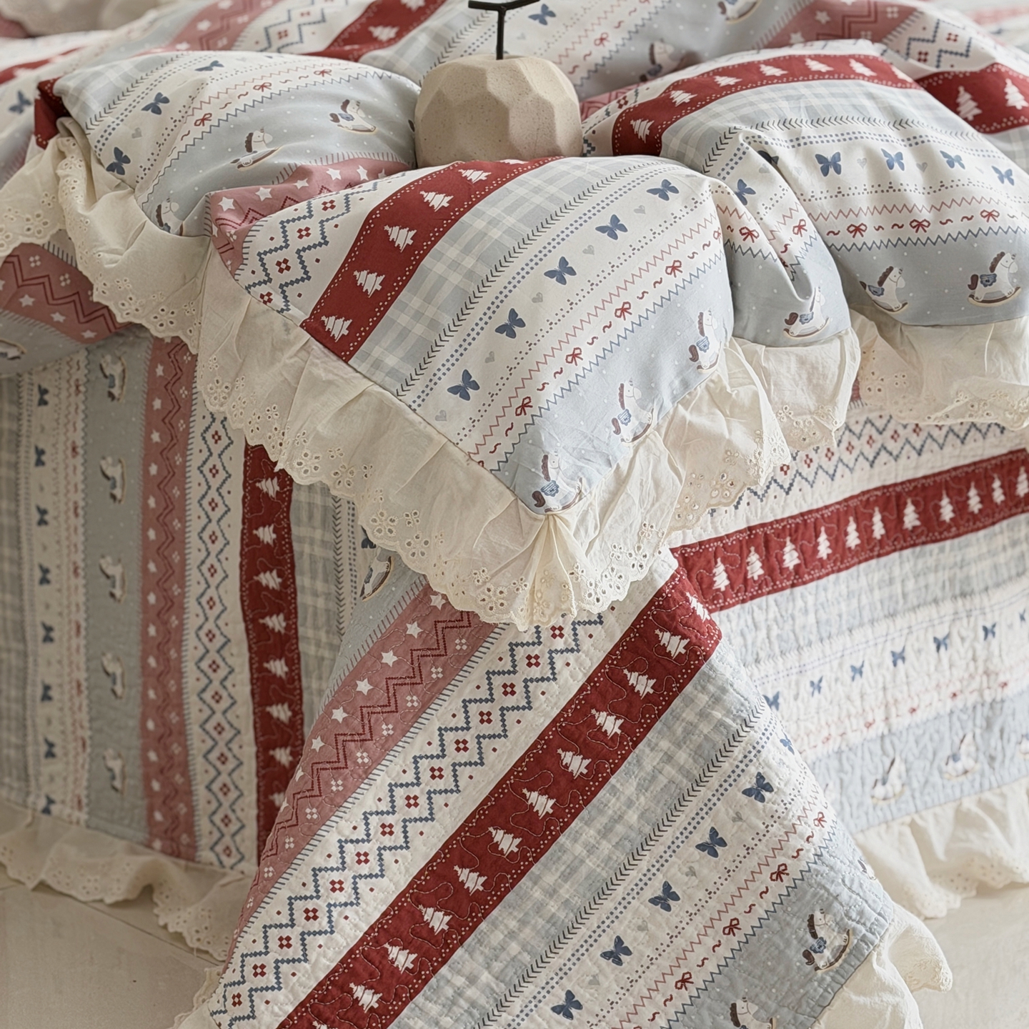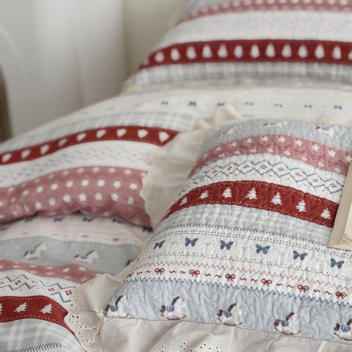商品名称:佰织鑫家居 2025新款全棉法式砂洗棉花床盖款被套四件套 森林木马