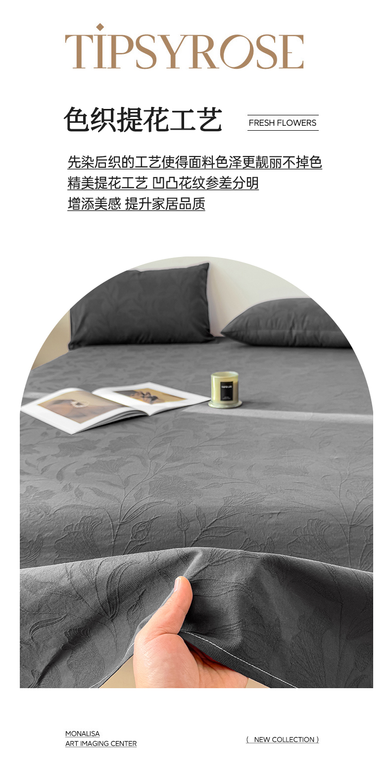 • 91家纺网 家纺一手货源 找家纺 灰鲸 2026新款全棉纯棉厚织三层水洗色织提花床单单床单床单单件 芳菲-素墨