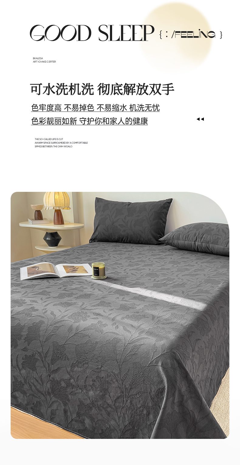 灰鲸 2026新款全棉纯棉厚织三层水洗色织提花床单单床单床单单件 芳菲-素墨