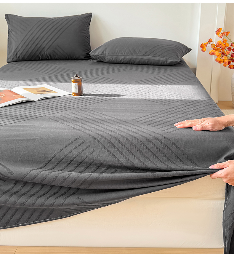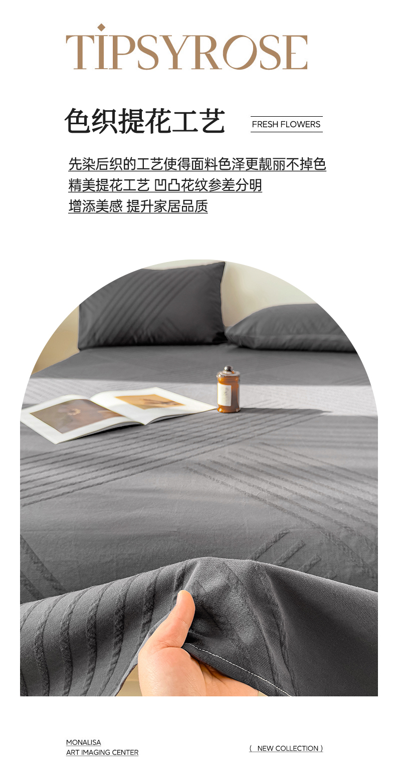 灰鲸 2026新款全棉纯棉厚织三层水洗色织提花床单单床单床单单件 云汐-素墨