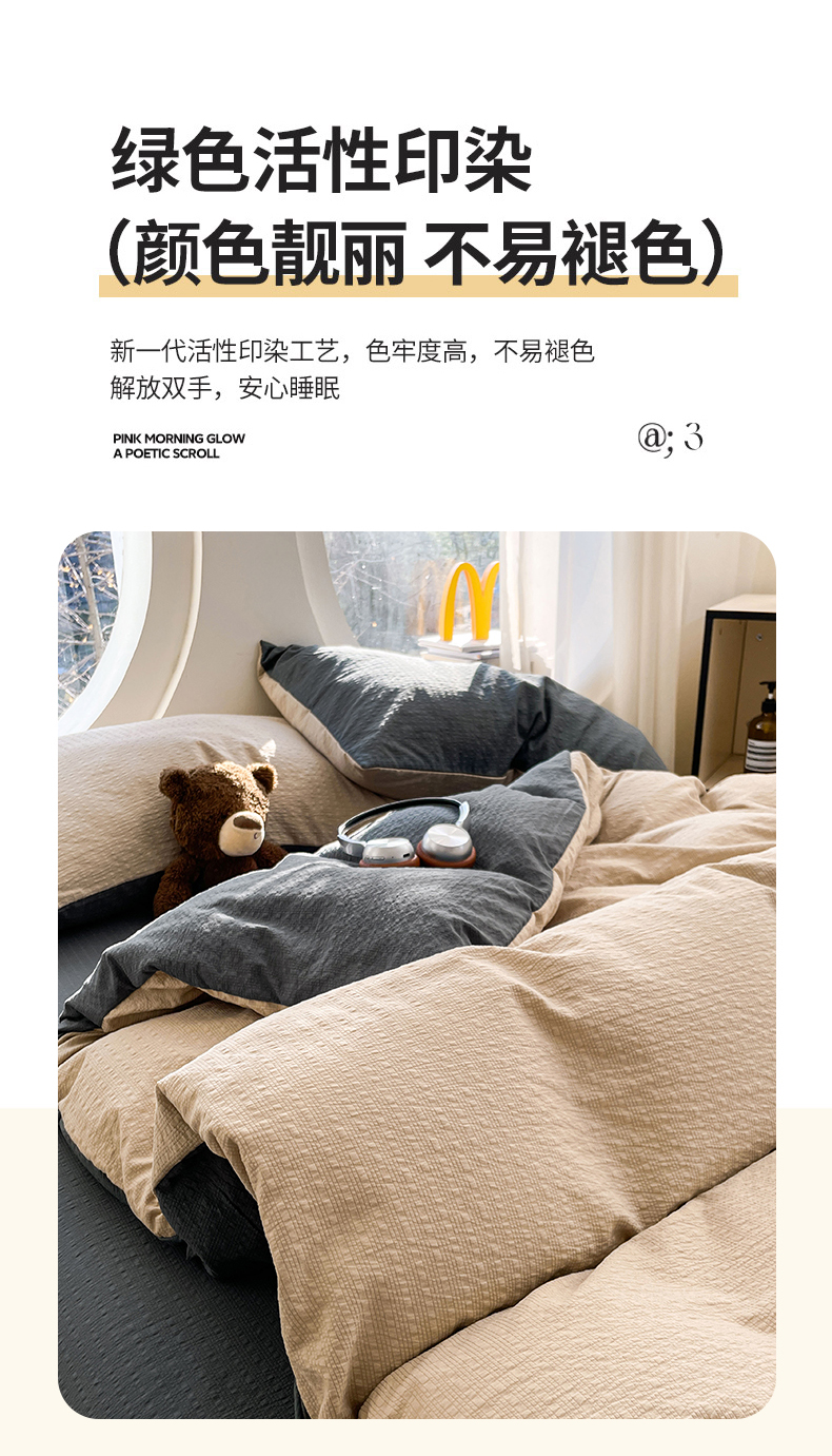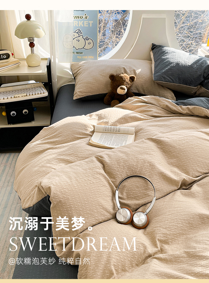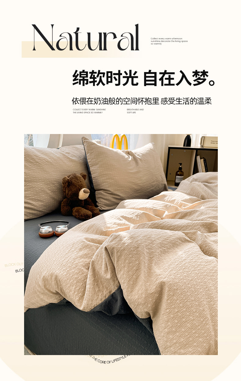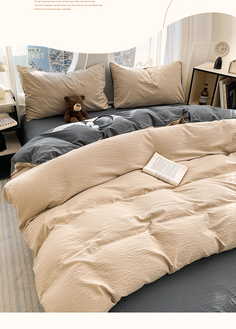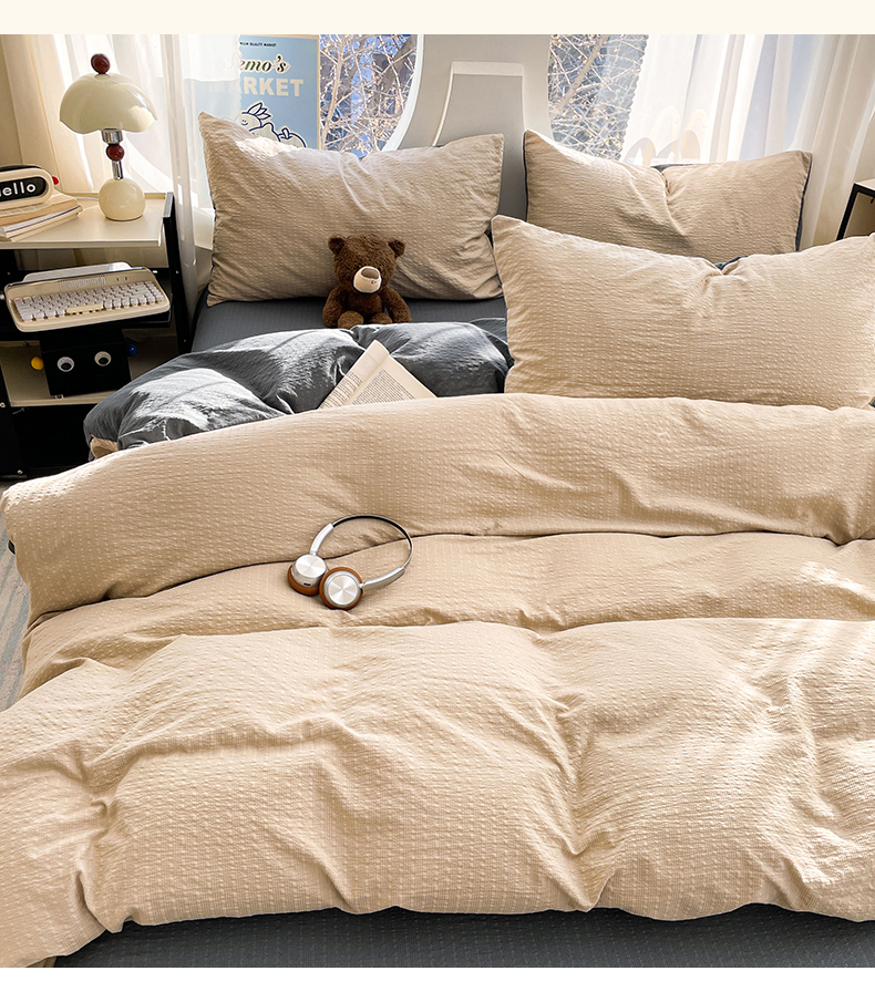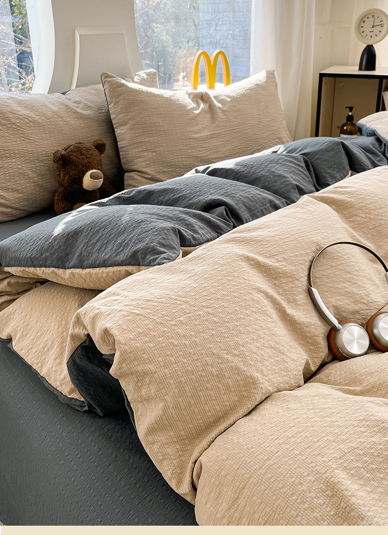 当前位置: 91家纺网 > 商品网购 > 床品套件 > 四件套 > 双层纱四件套 > 优承佳生活馆 2026新款软糯双拼泡芙纱四件套 浅卡其+暗夜灰