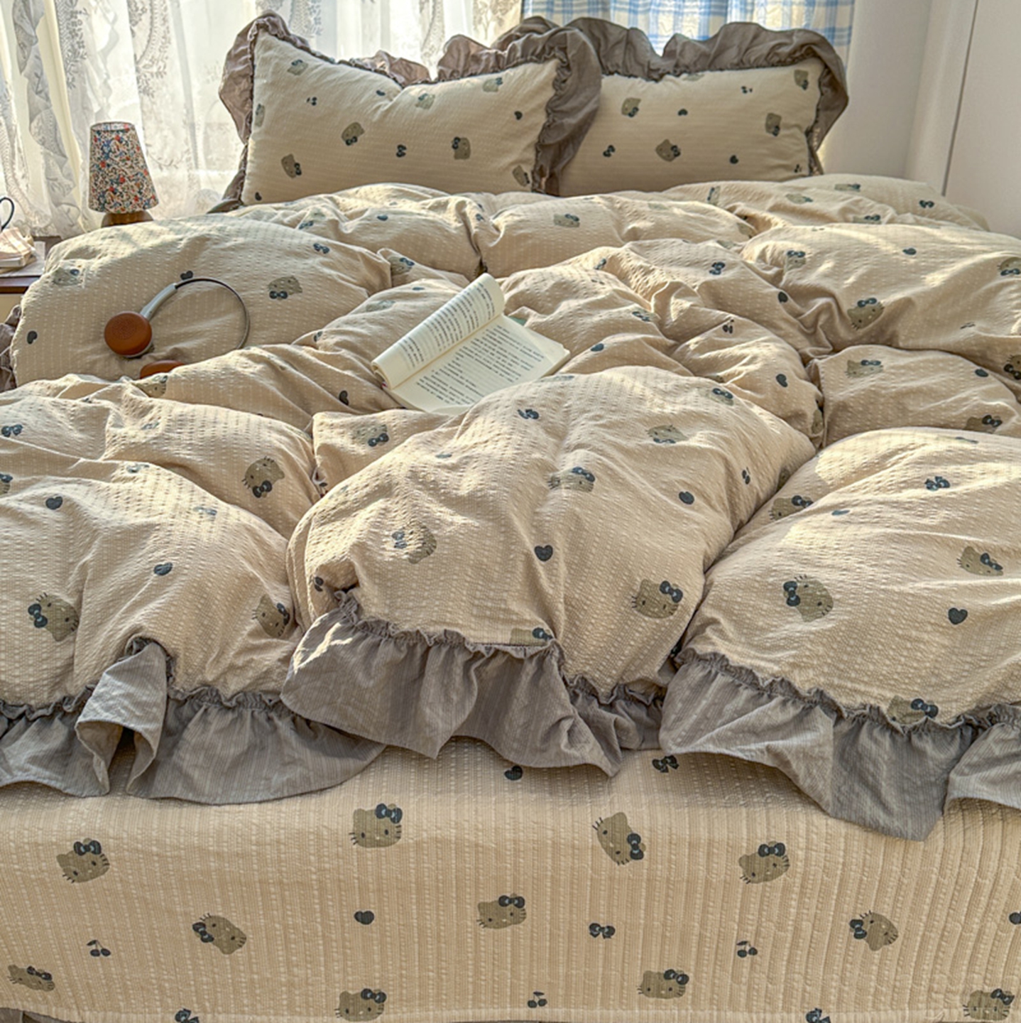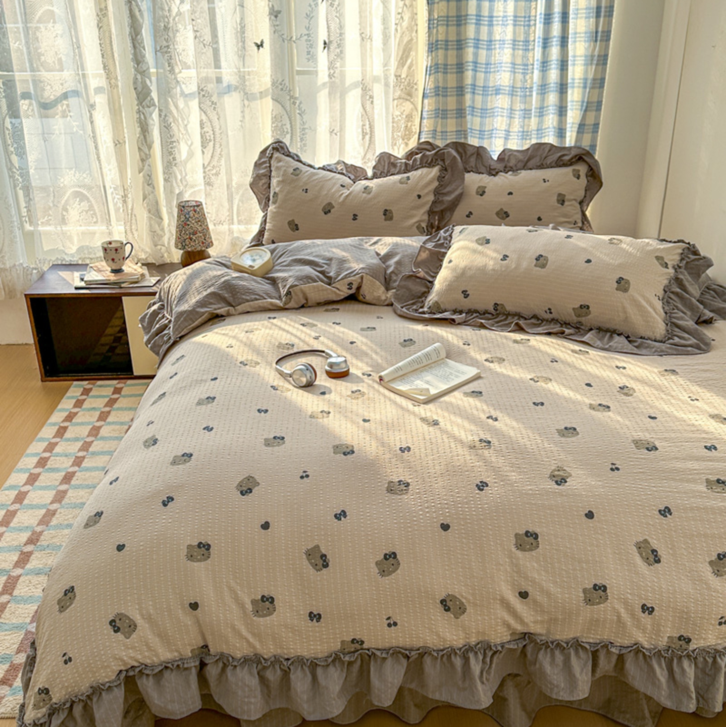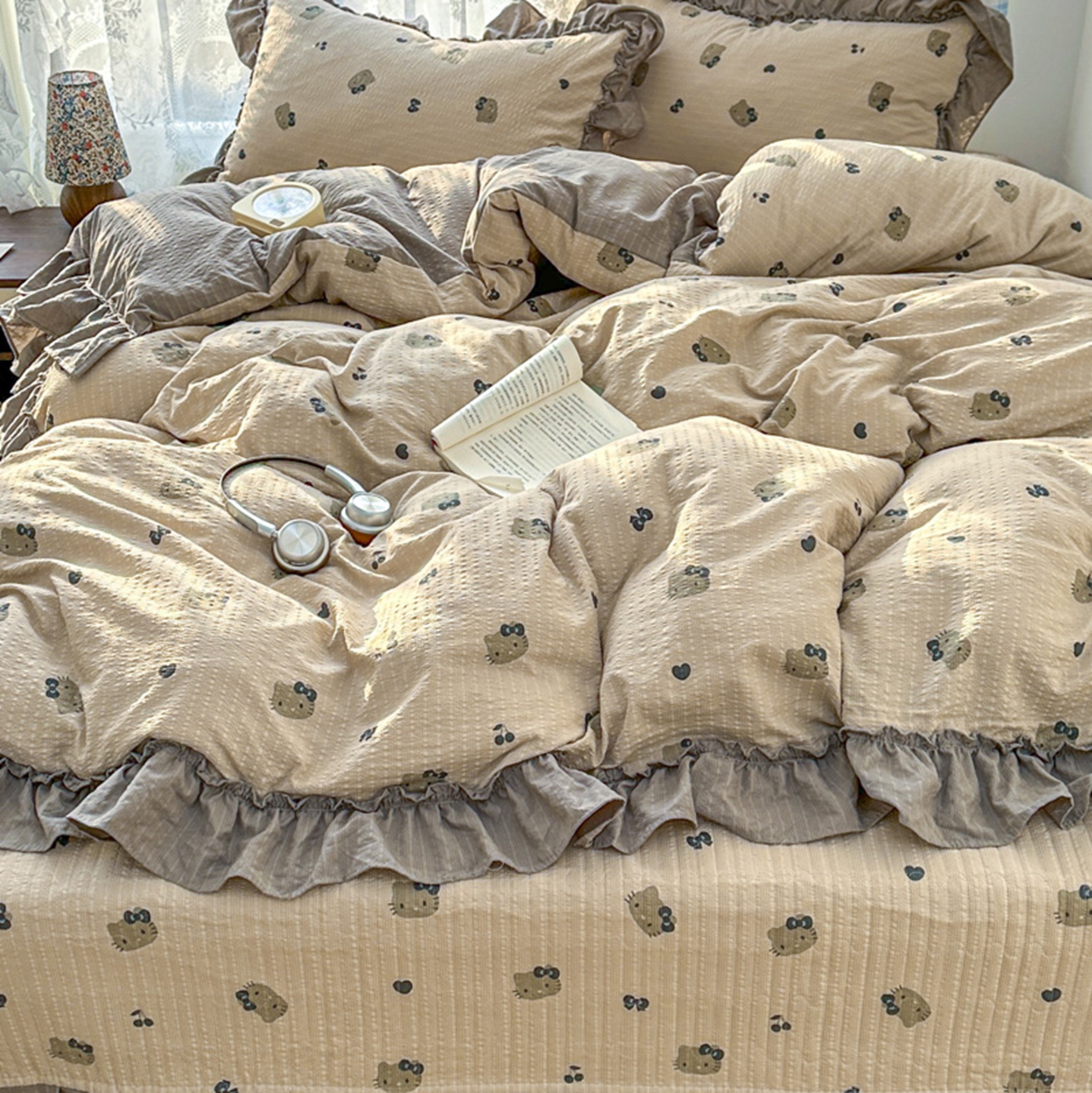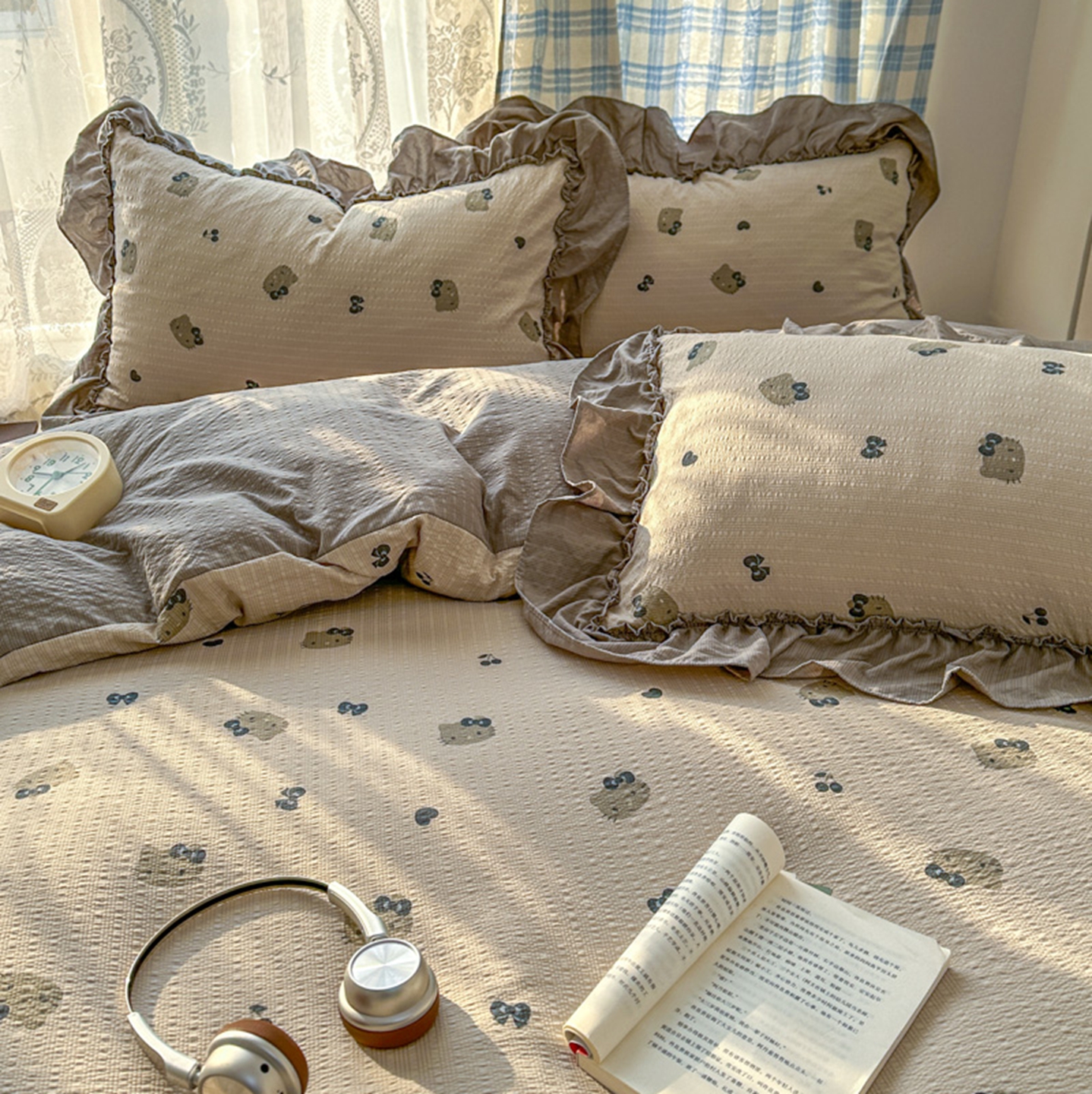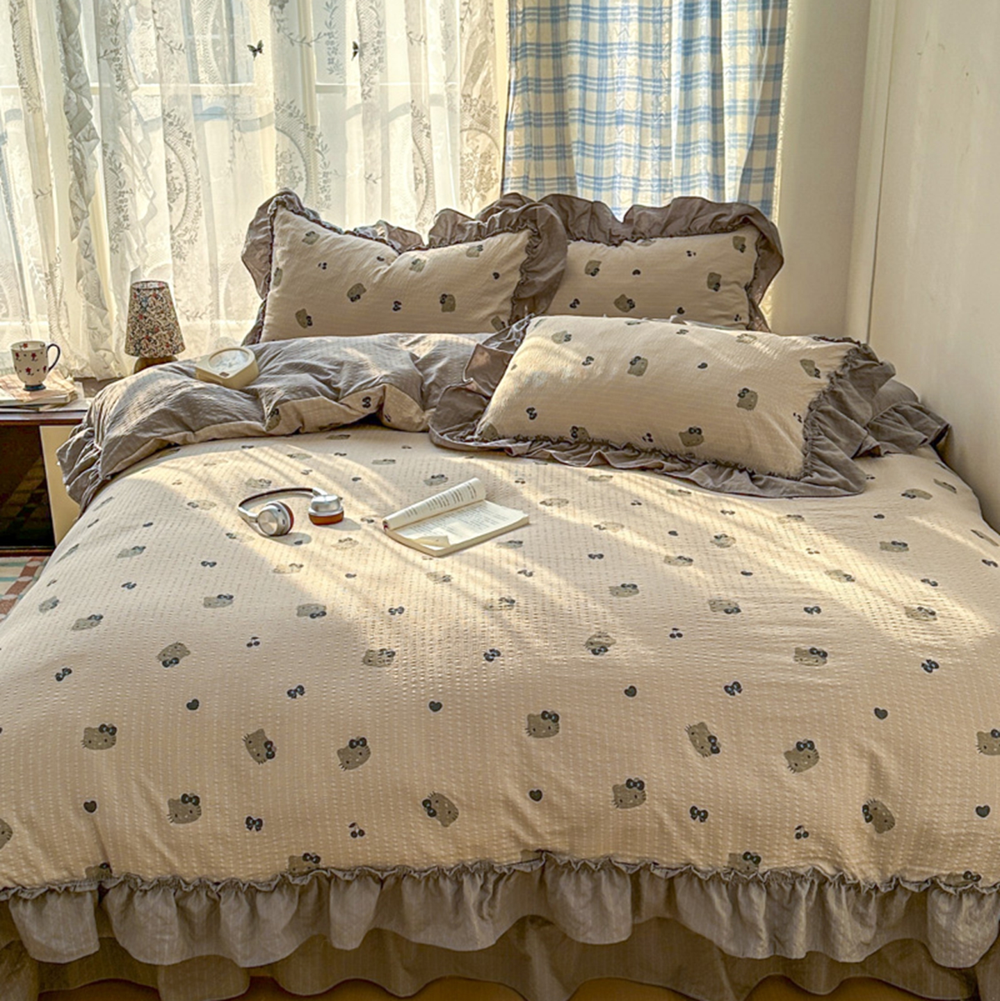欧尚 2026新款花边床盖四件套 咖啡小猫