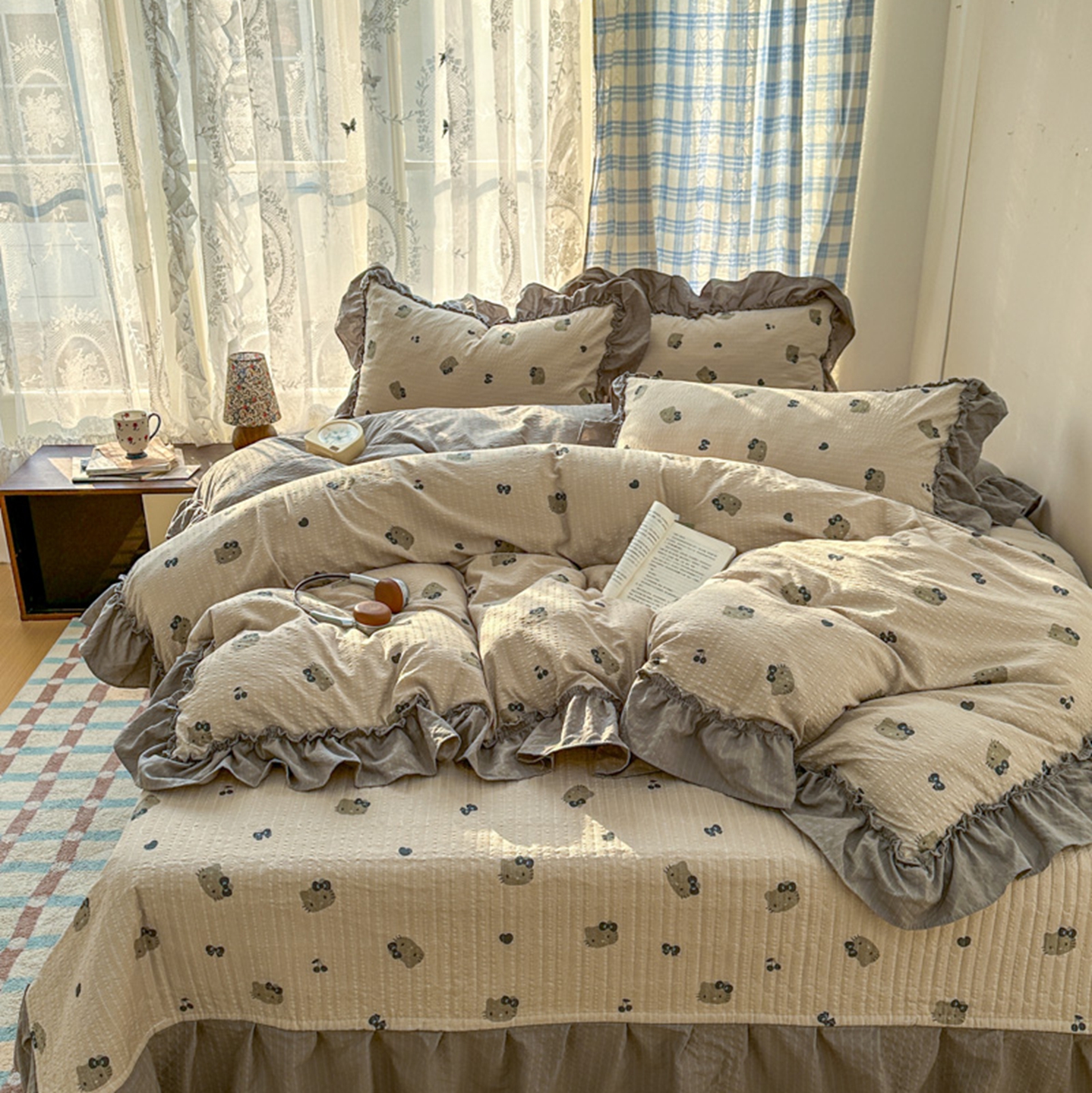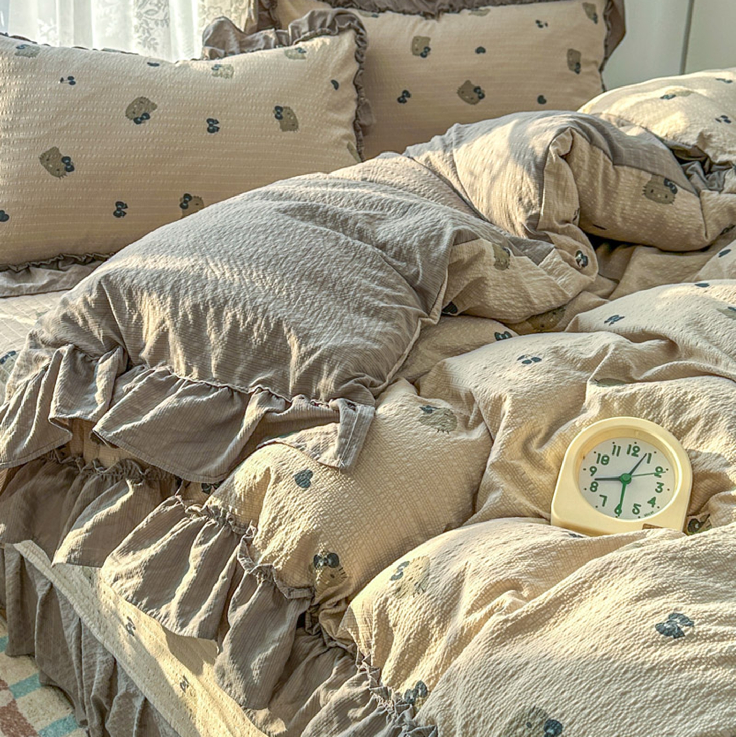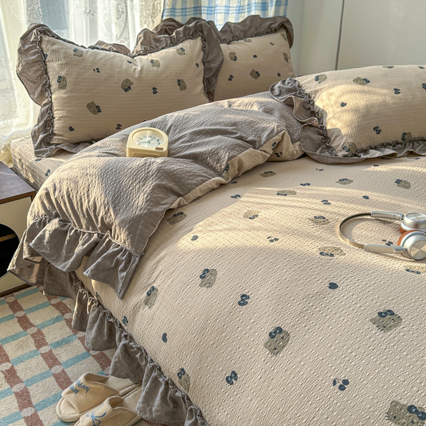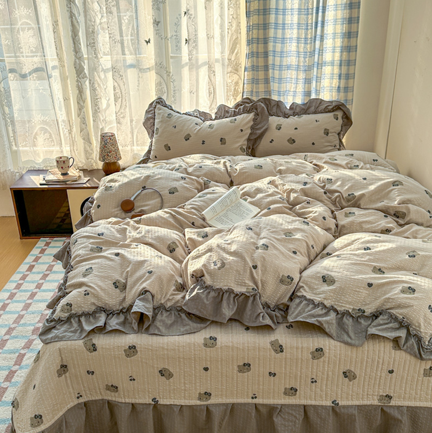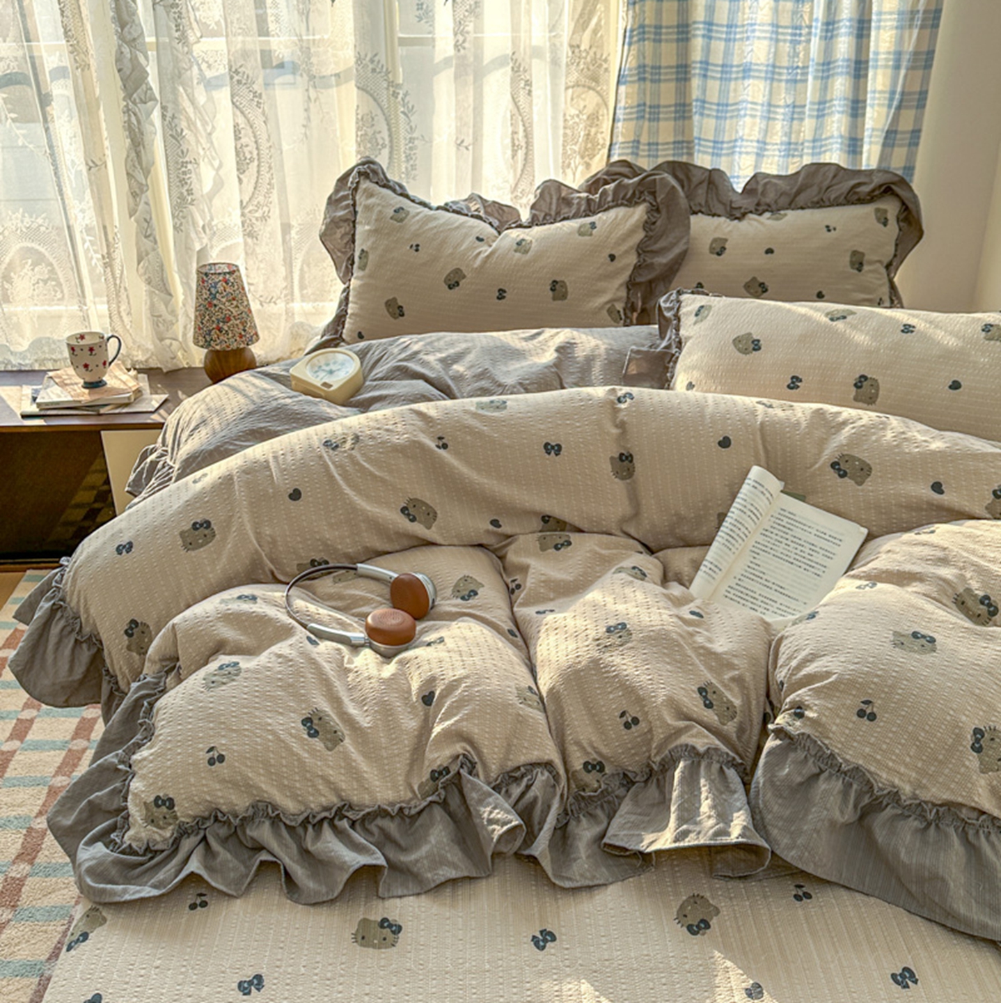 欧尚 2026新款花边床盖四件套 咖啡小猫