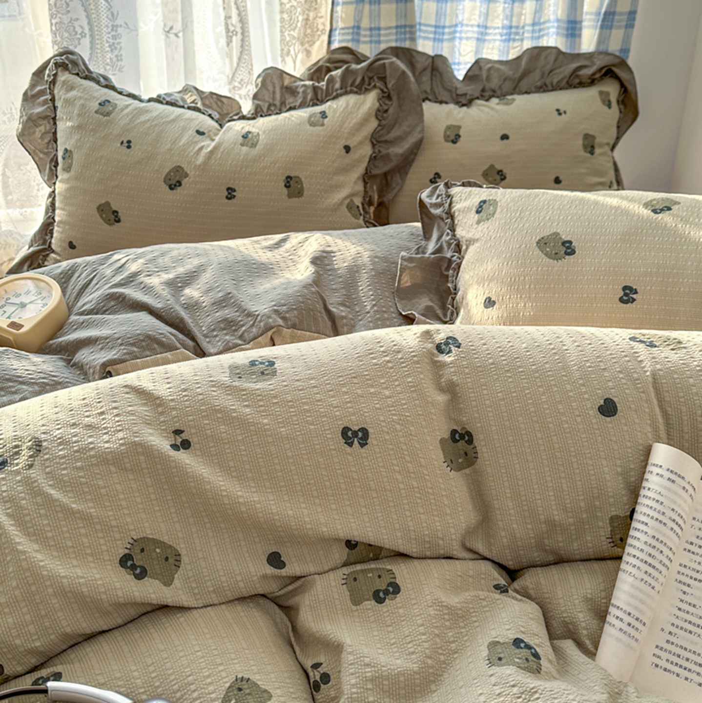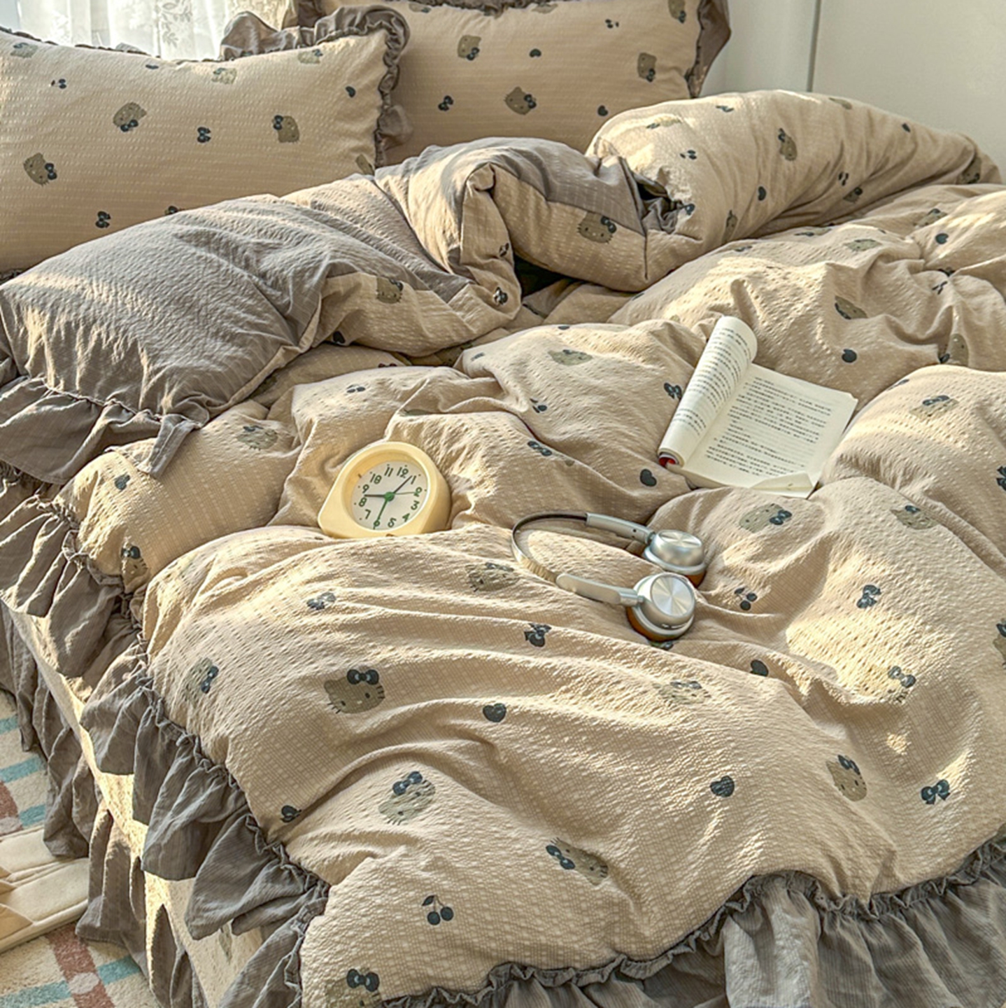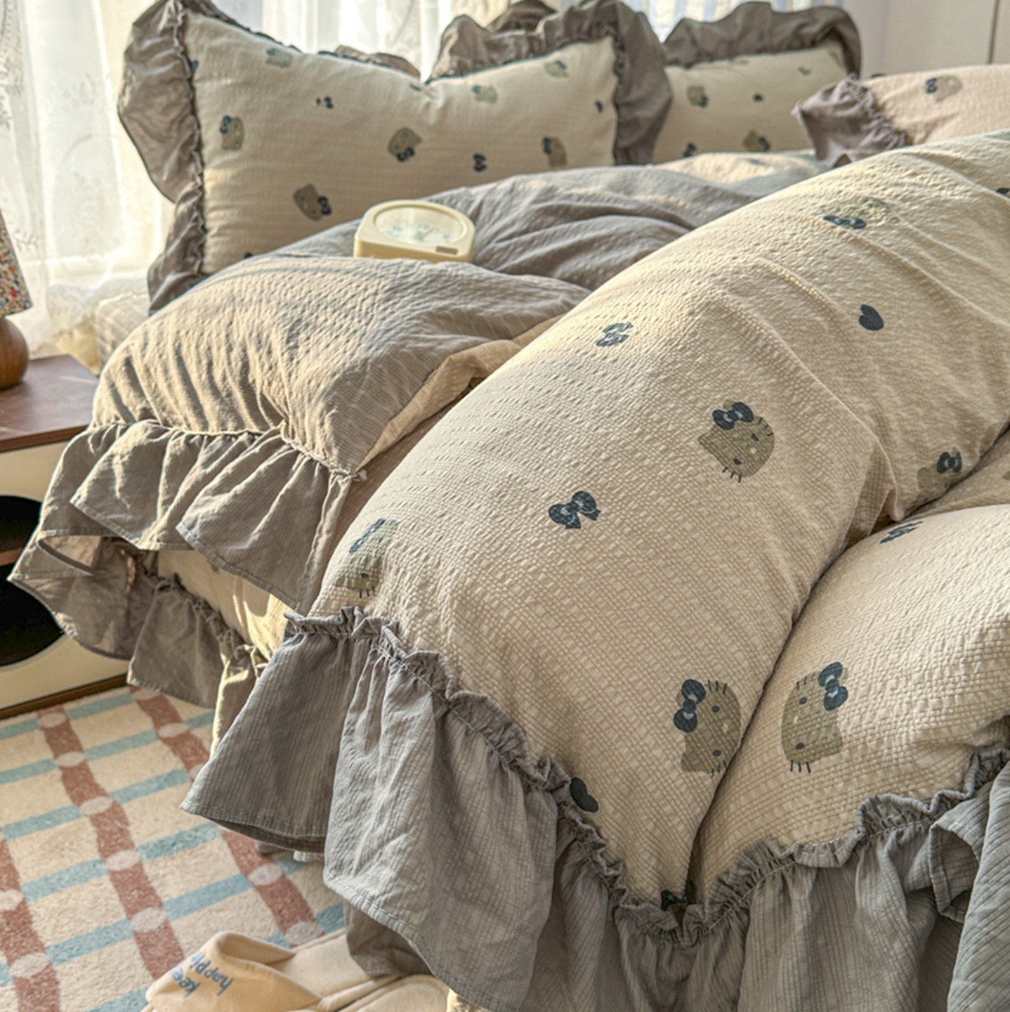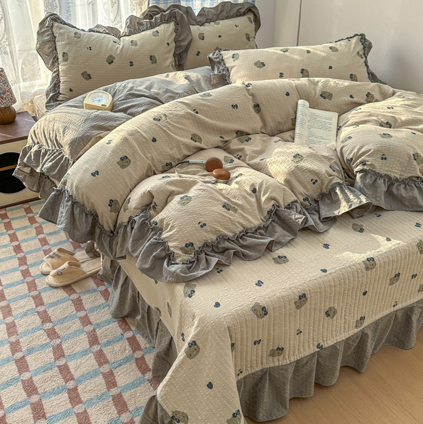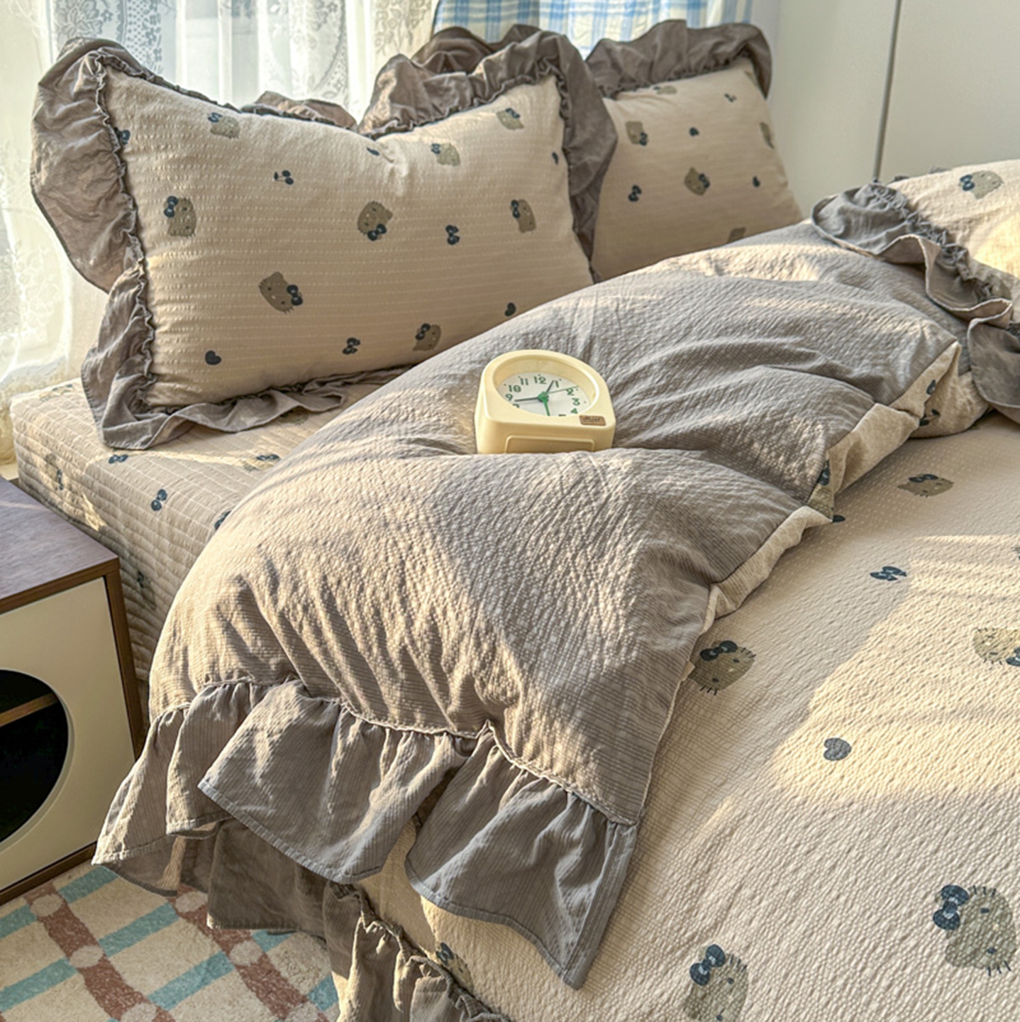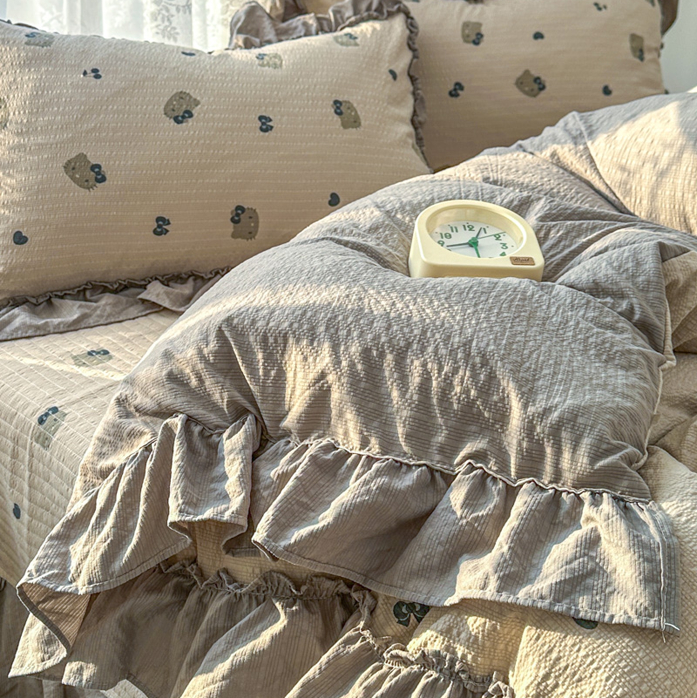 欧尚 2026新款花边床盖四件套 咖啡小猫