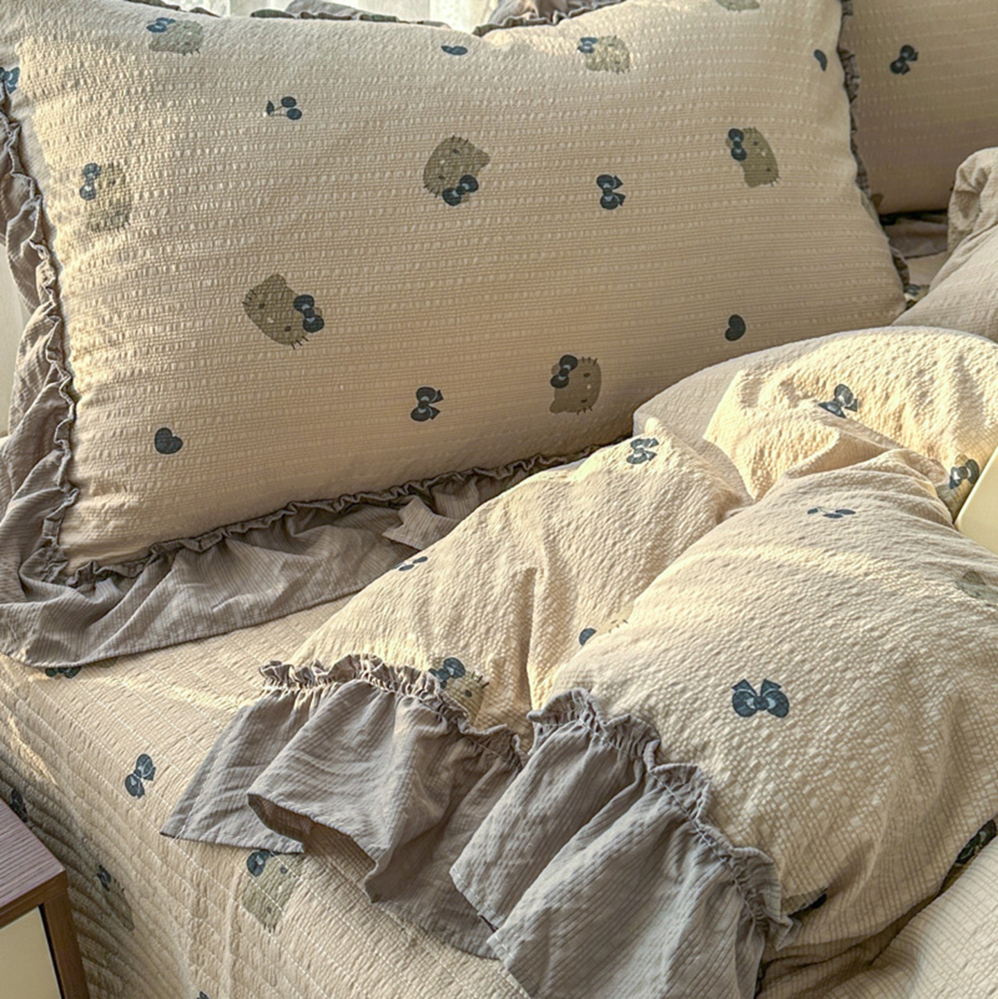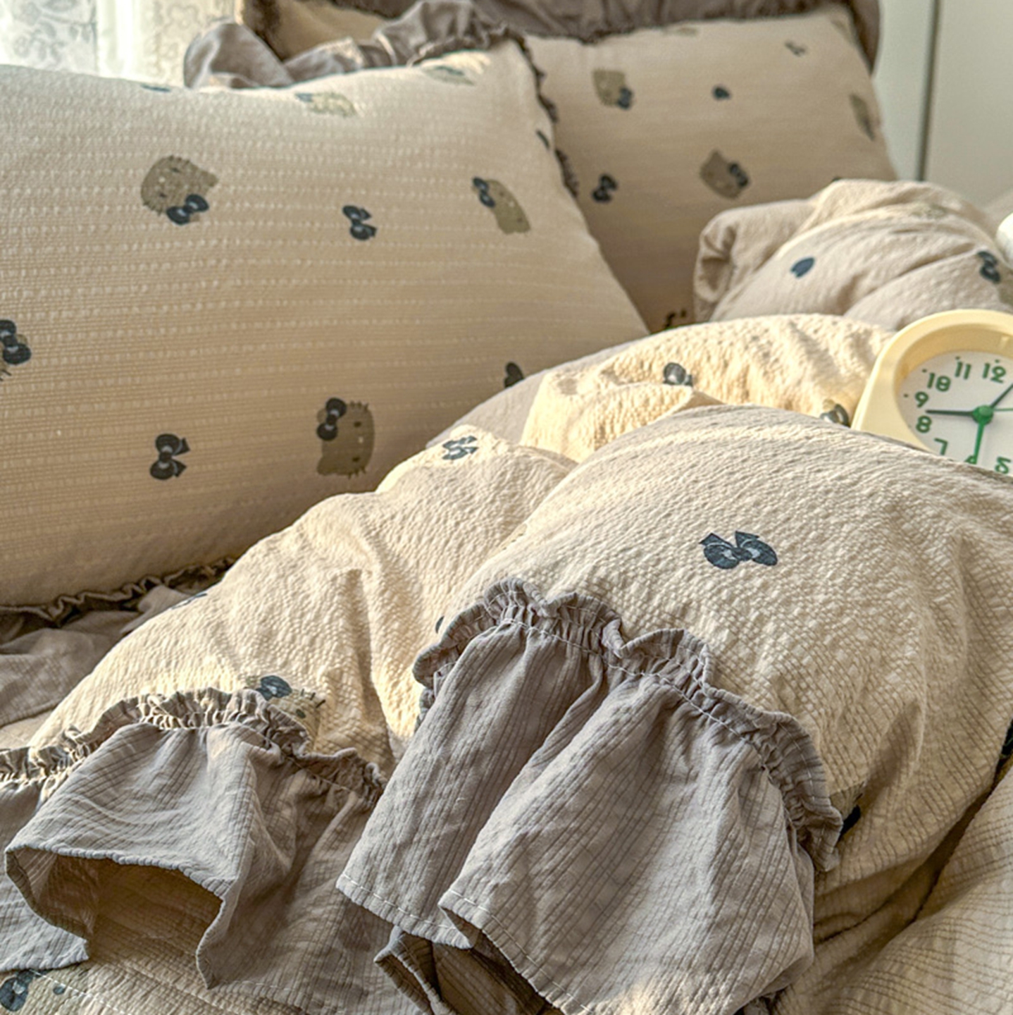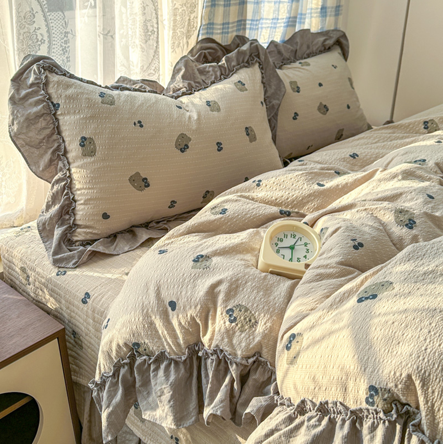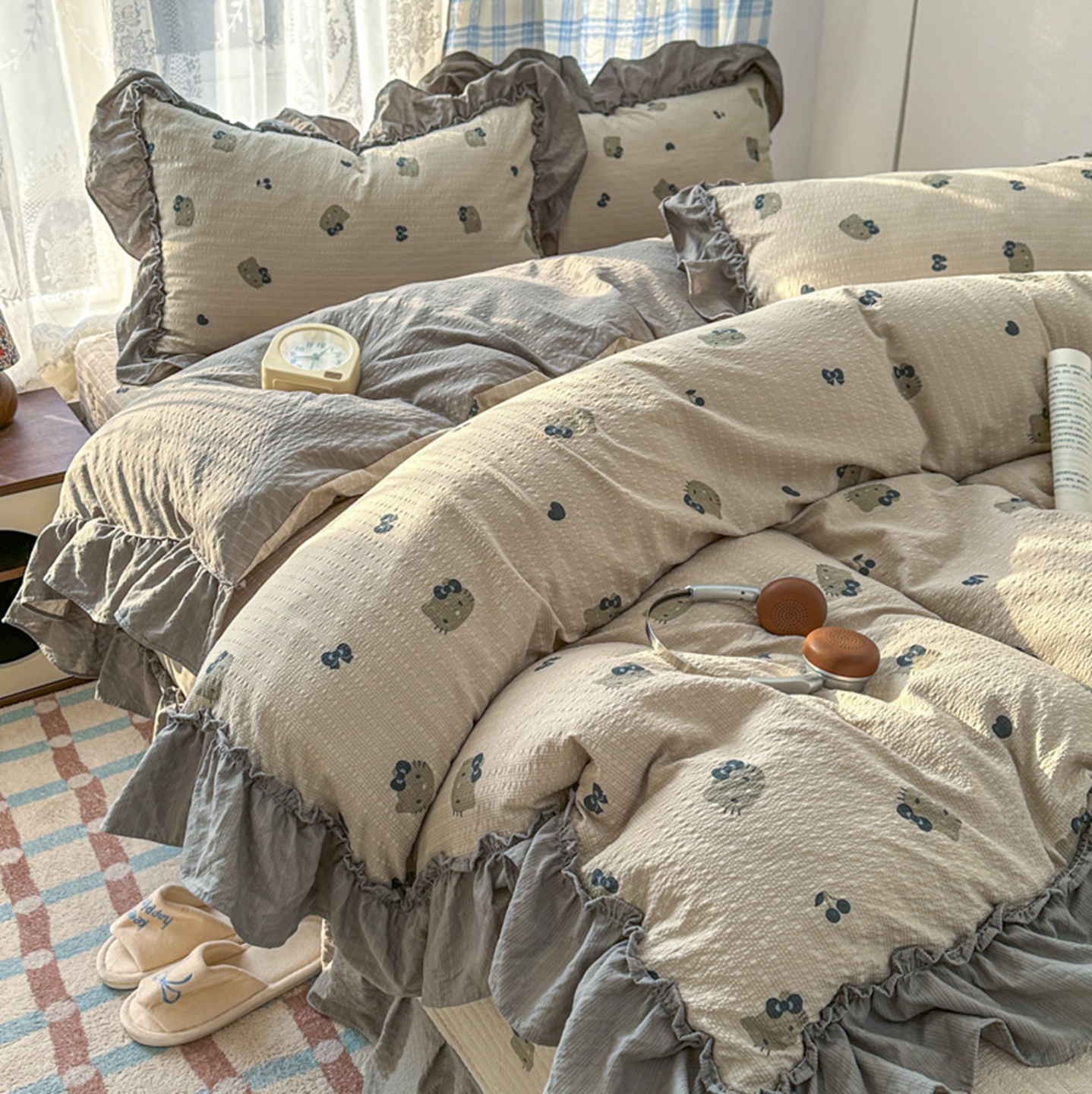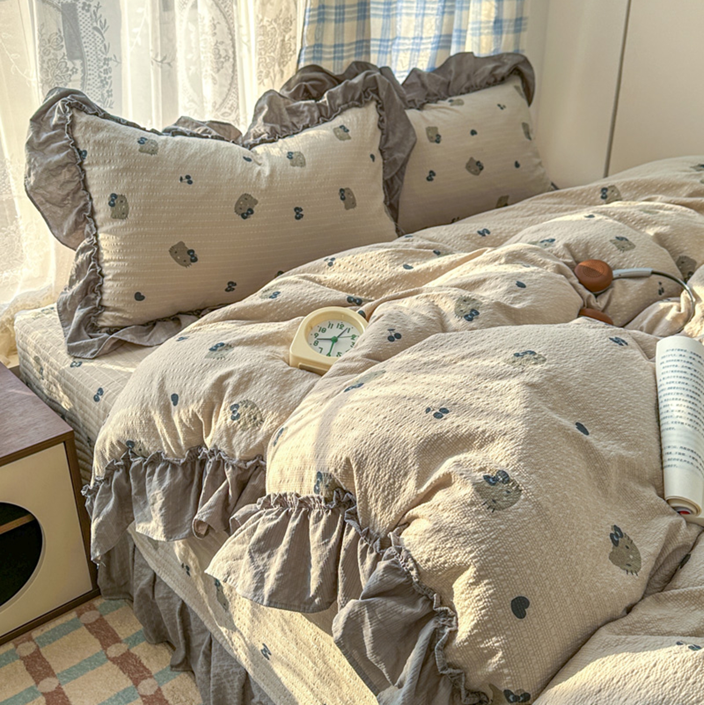 欧尚 2026新款花边床盖四件套 咖啡小猫