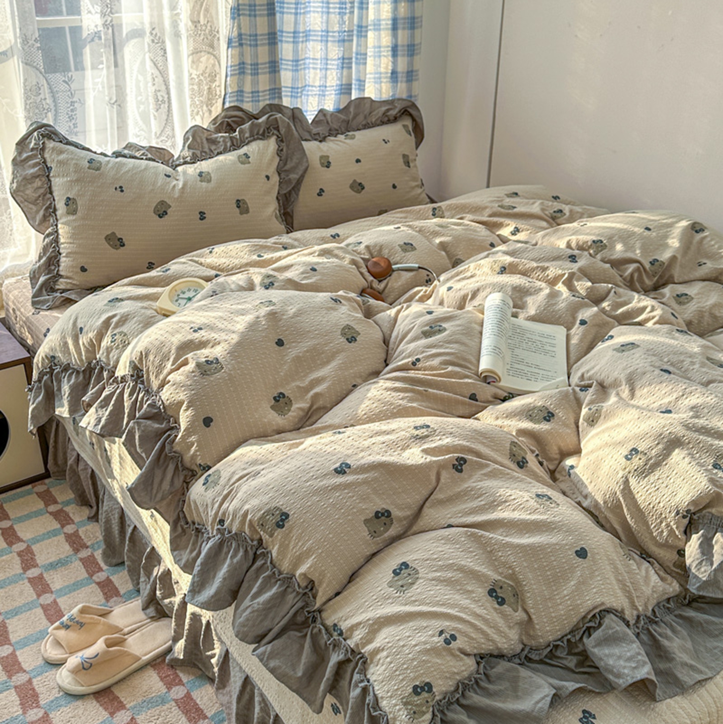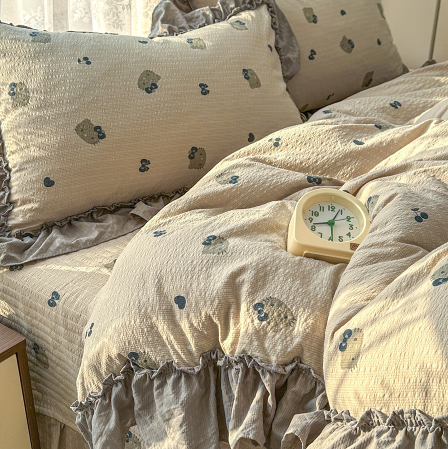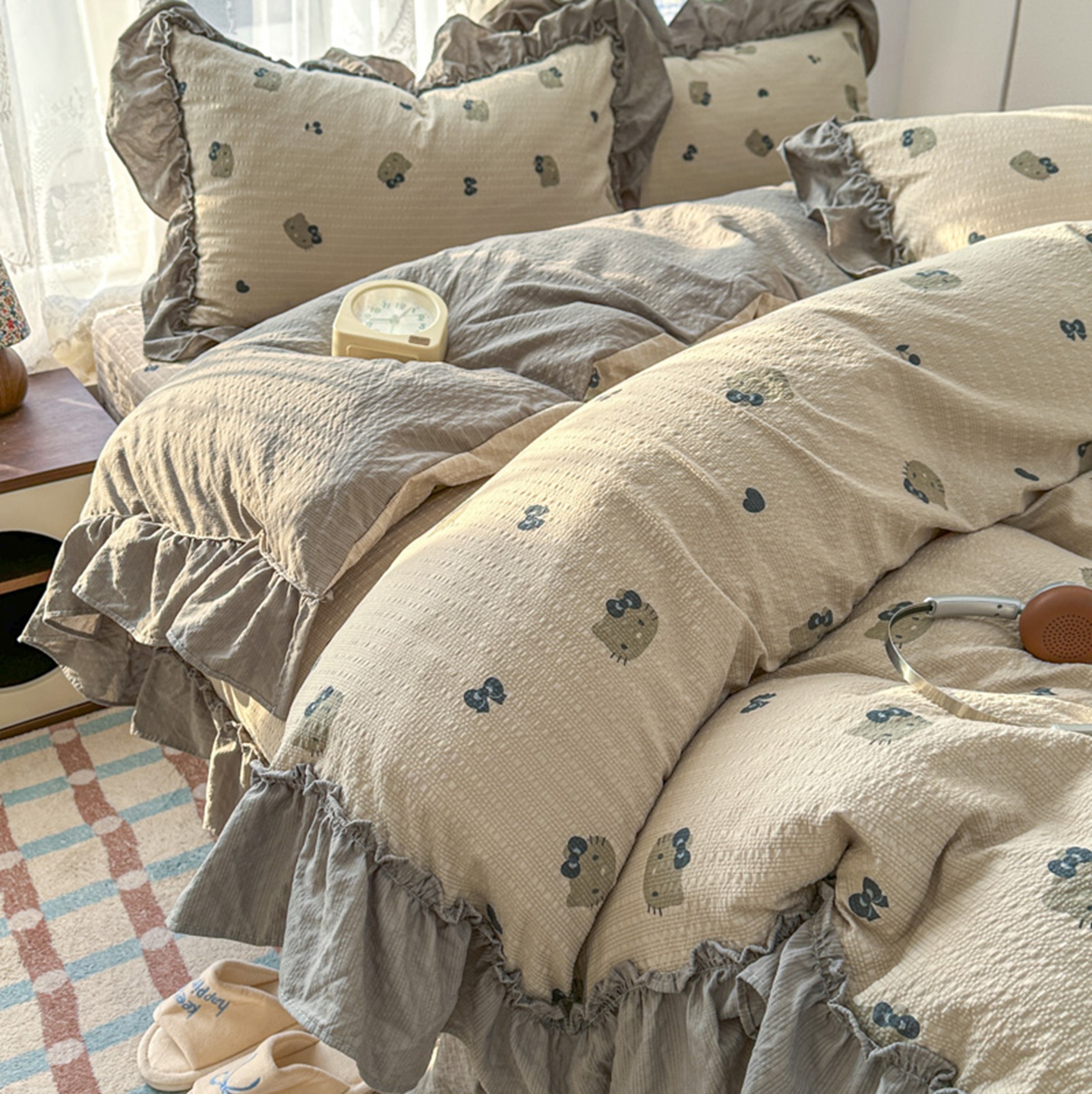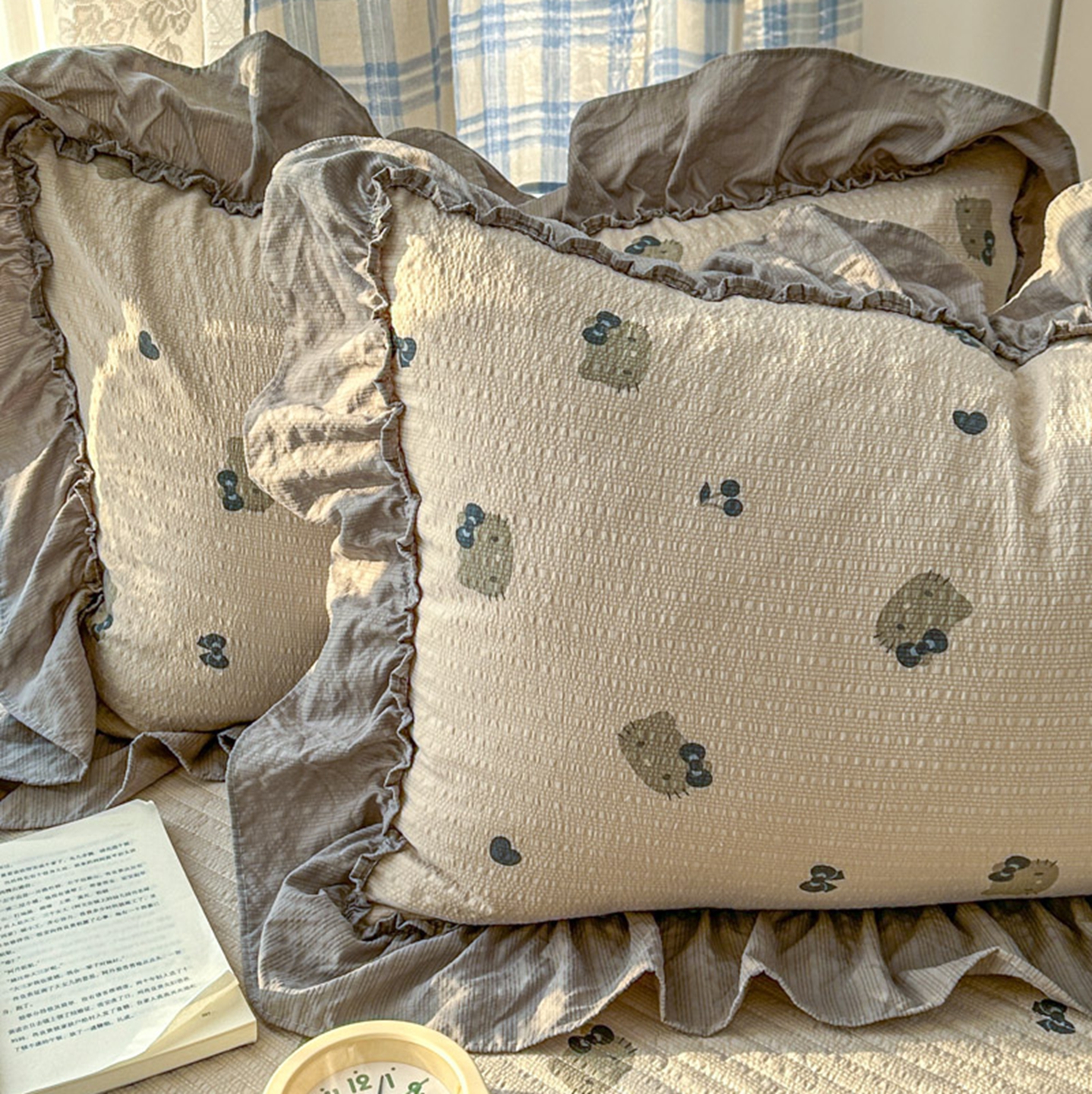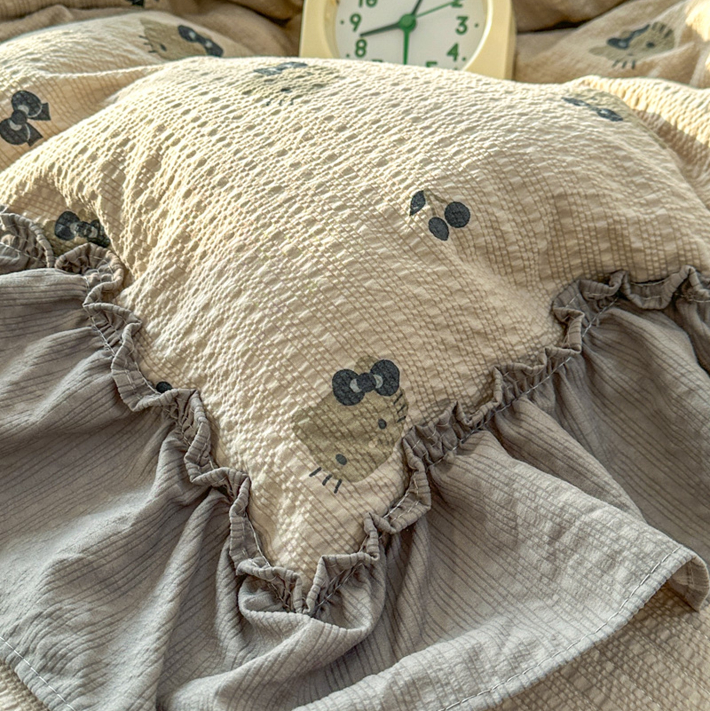 欧尚 2026新款花边床盖四件套 咖啡小猫