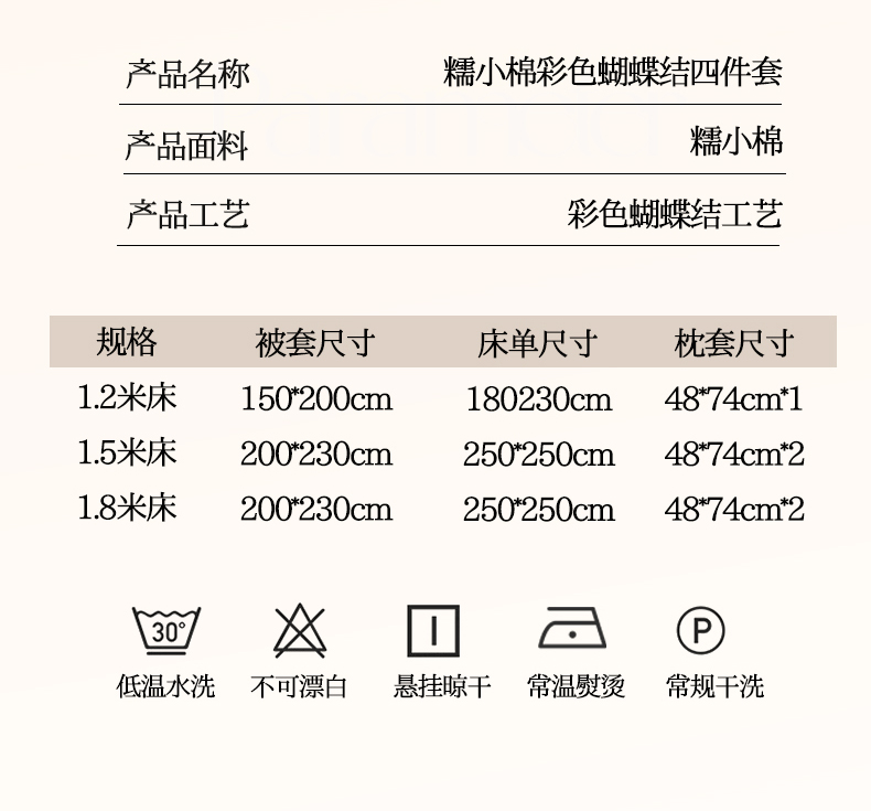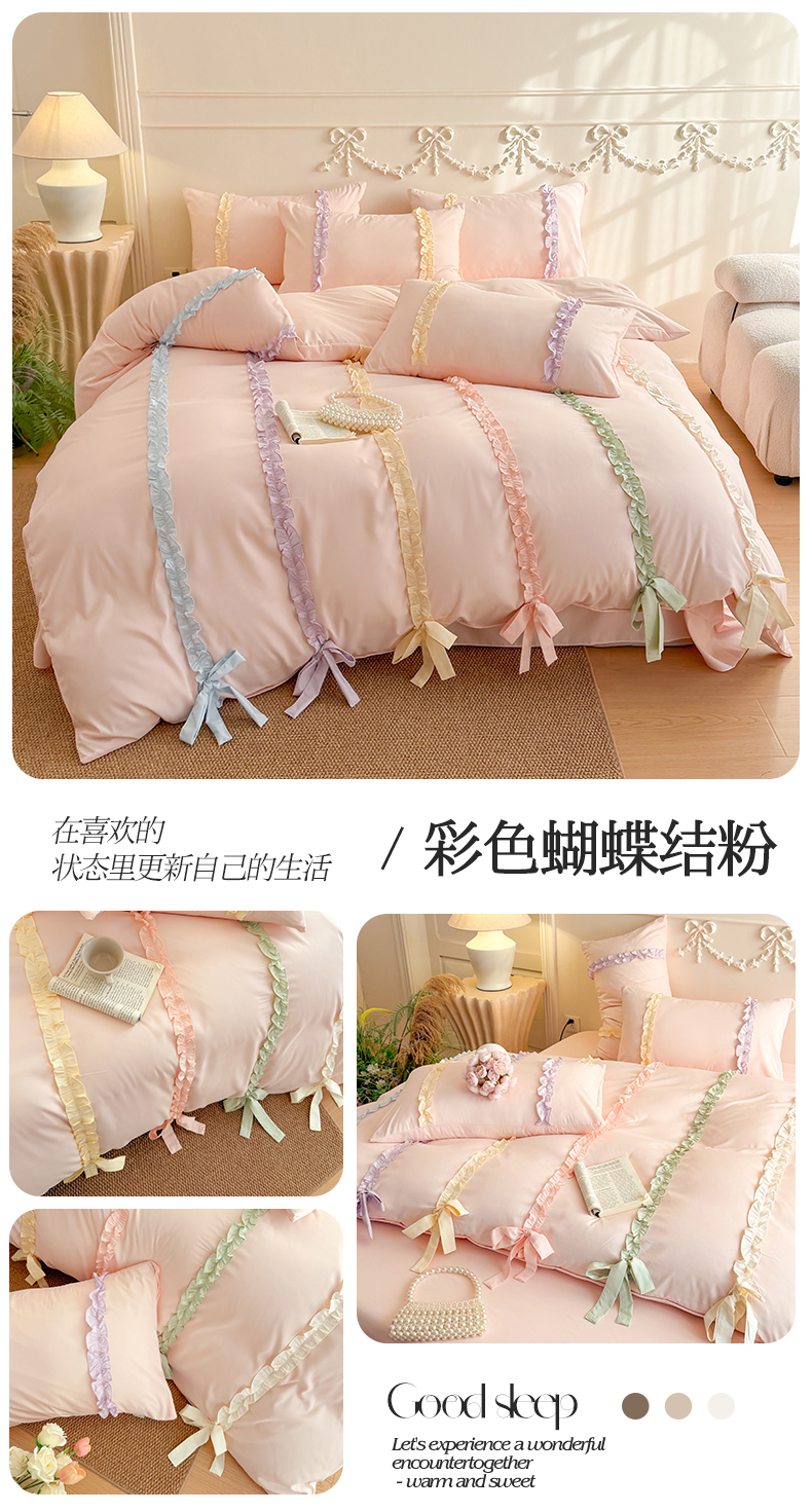 商品名称:吾欢心 2026春夏新款公主风彩色蝴蝶结四件套 彩色蝴蝶结粉