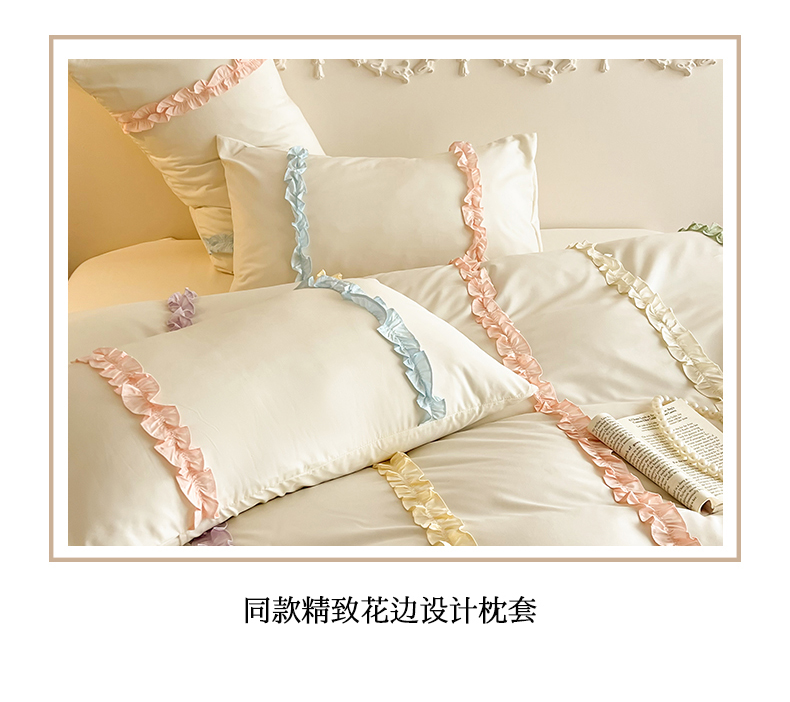 (总)吾欢心 2025新款公主风雪纺边四季通用夹棉床盖,床盖白,床盖粉,床盖黄,床盖咖,床盖绿,床盖抹茶绿,床盖紫