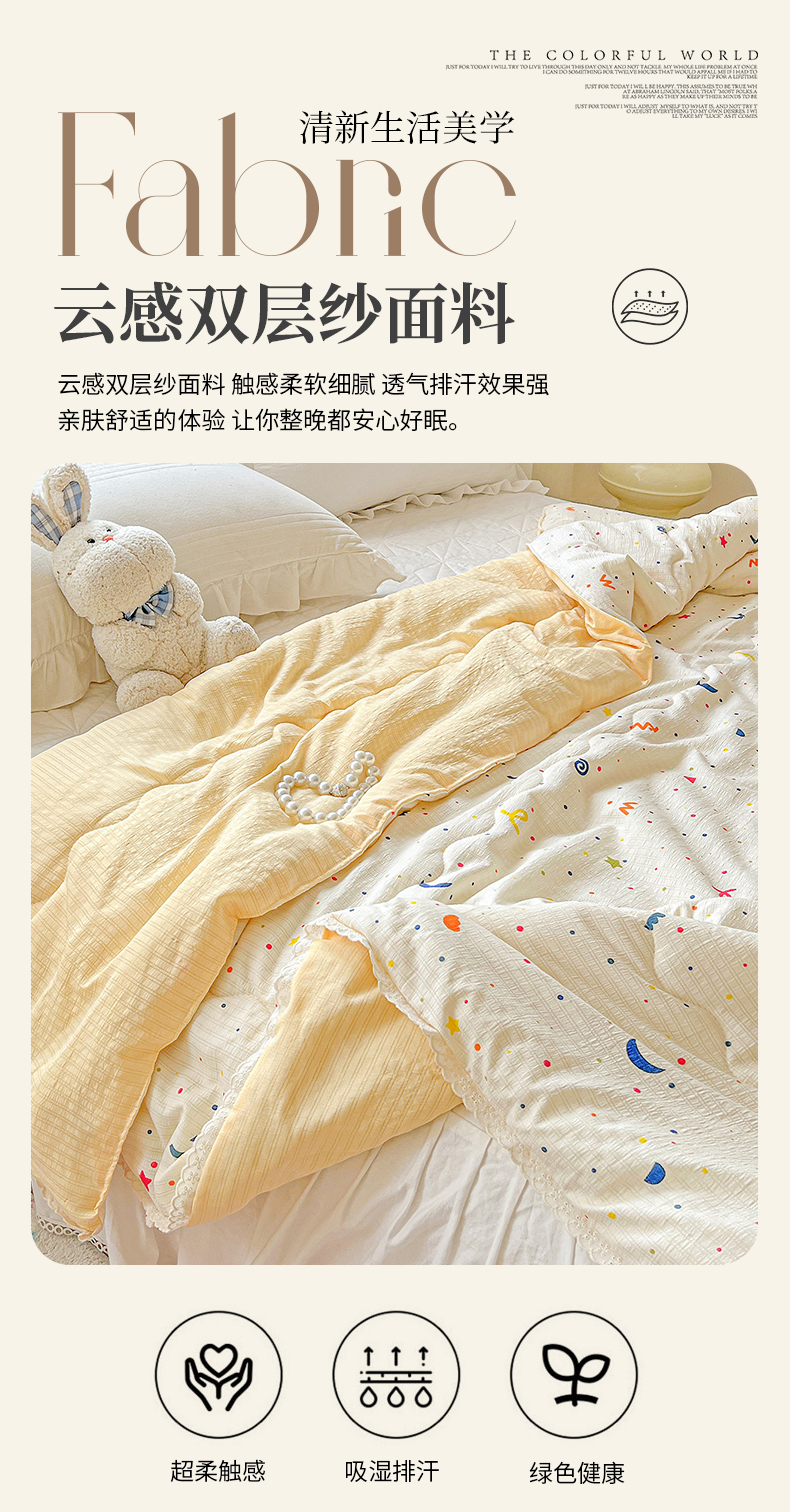 艺菲阁家纺 2026爆款升级花边工艺双层纱夏凉被 奶油派