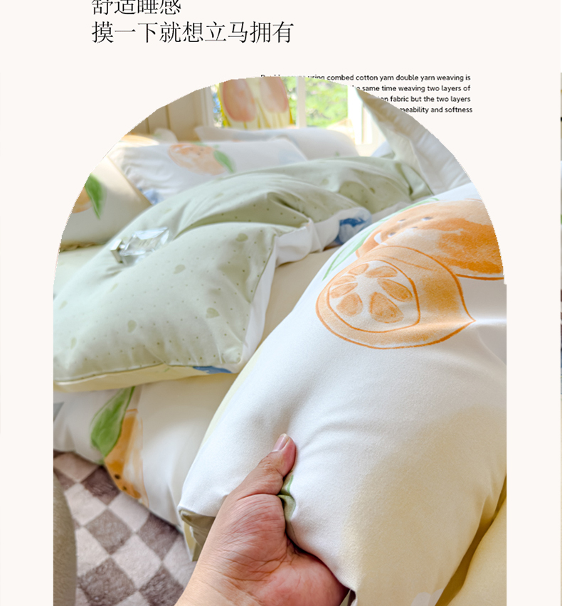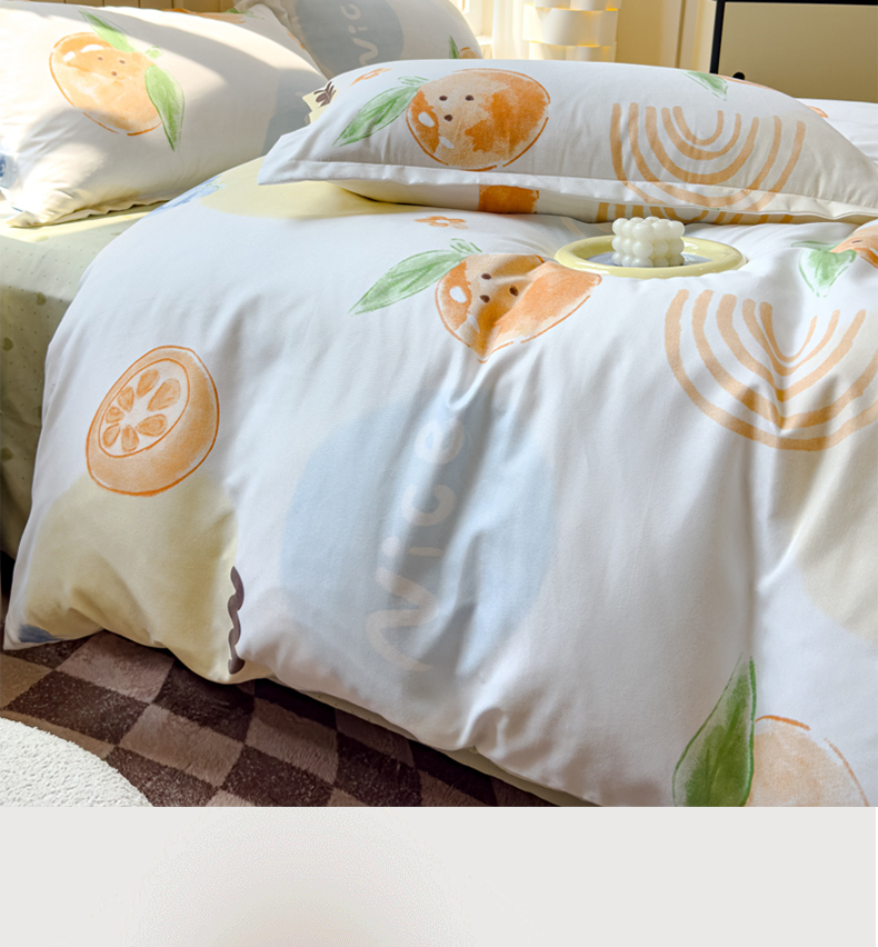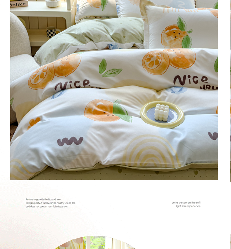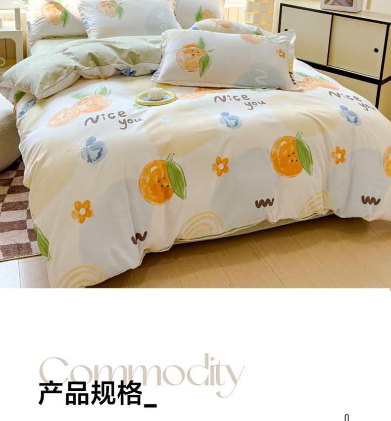 商品名称:佑佳家纺 2024新款磨毛印花植物羊绒单被套 甜橙-兰