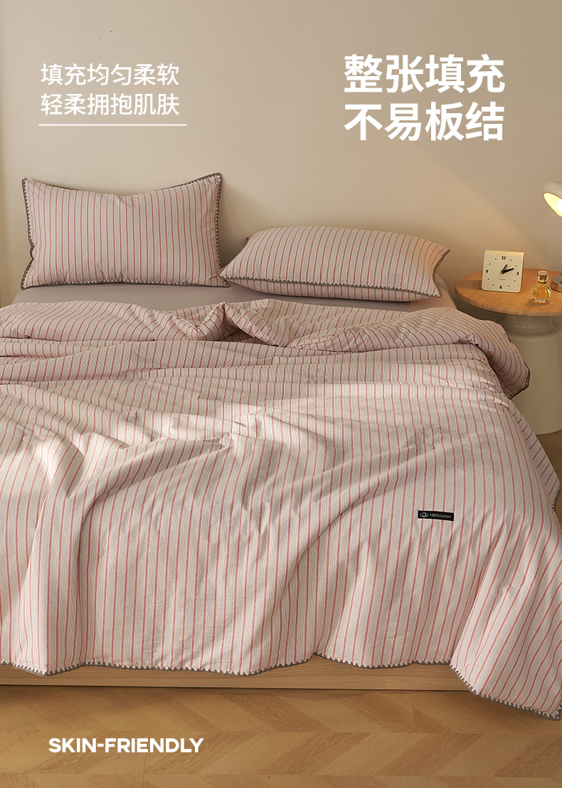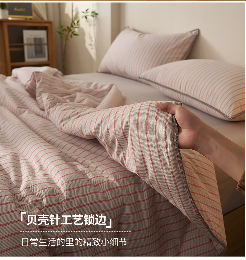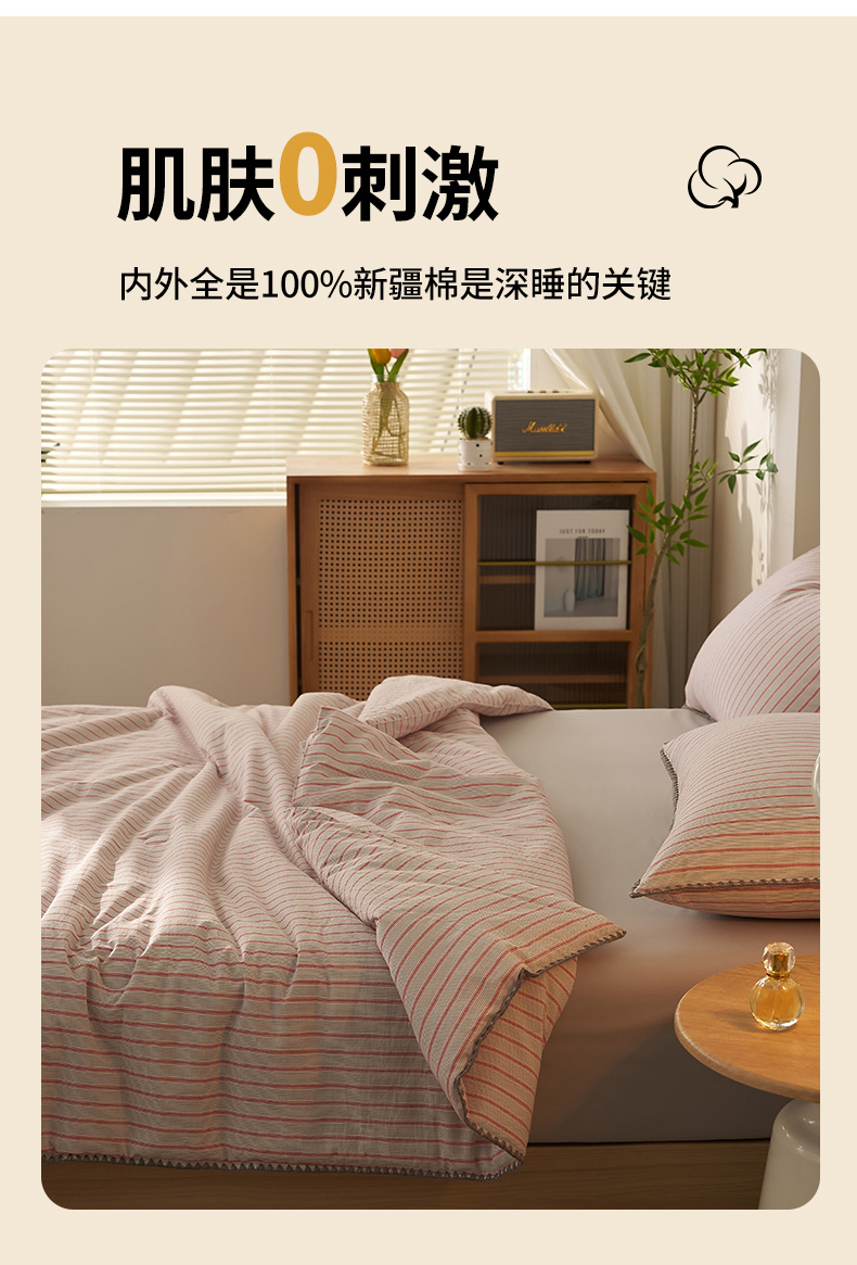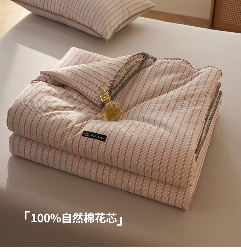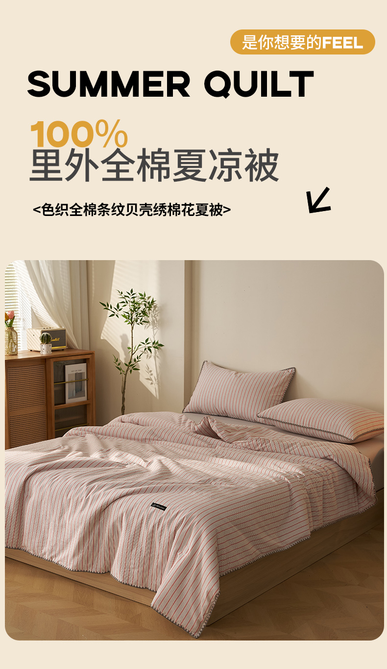 商品名称:暖阳 2026新款无印风色织全棉贝壳绣棉花夏被夏凉被空调被 贝壳初晴红