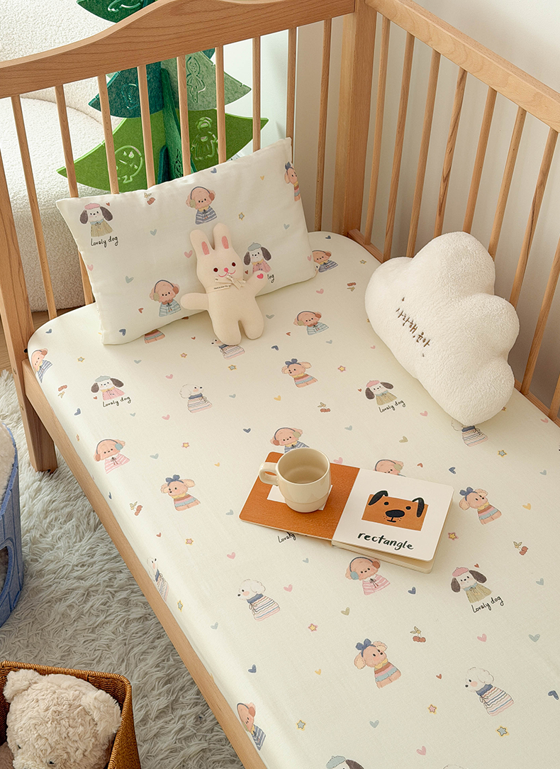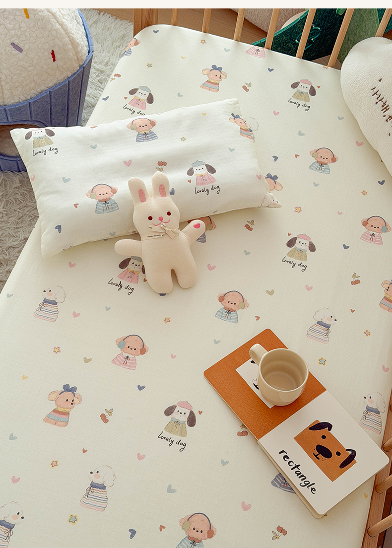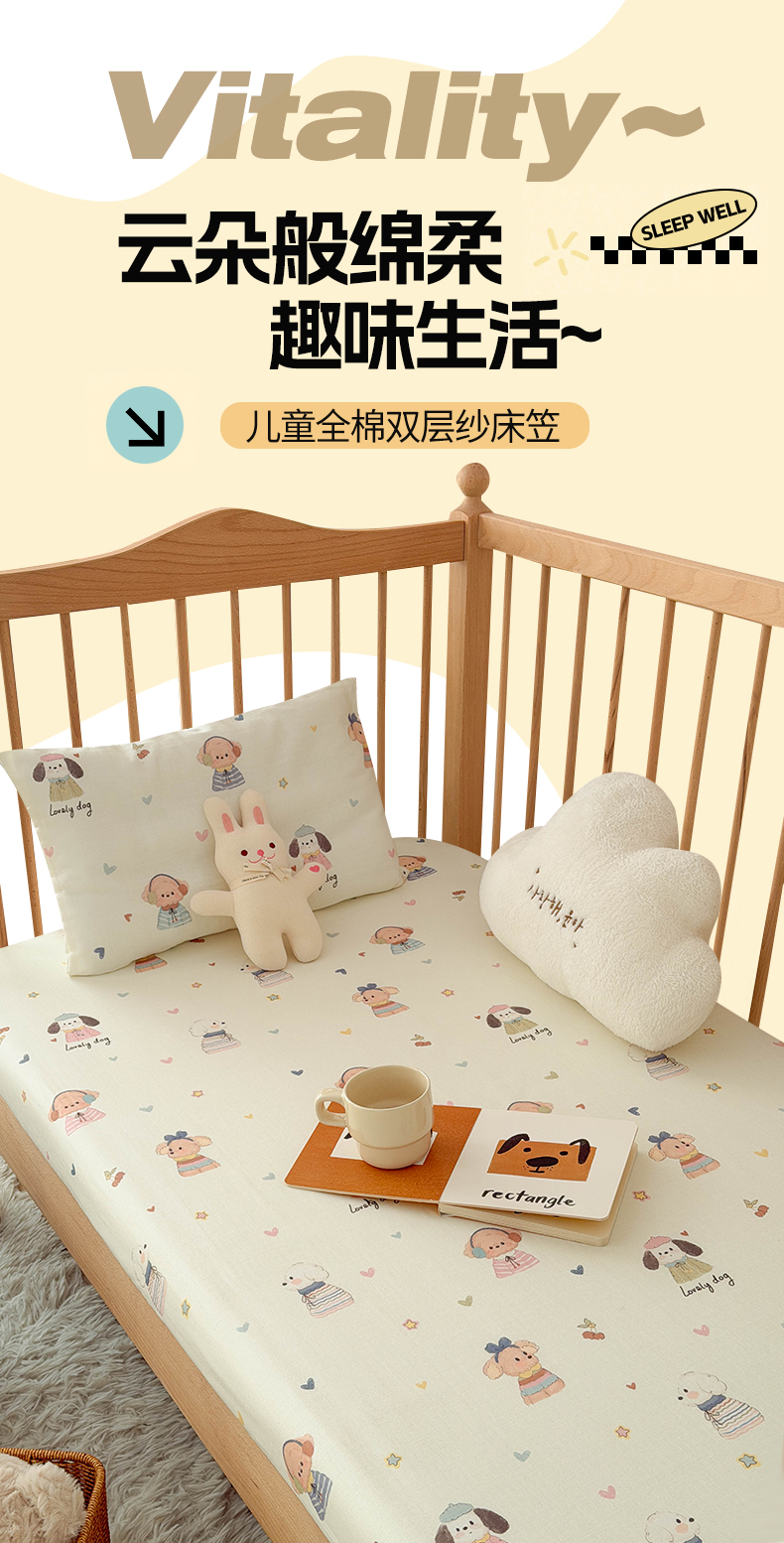 嗨生活 2026新款儿童婴儿床床笠全棉纯棉双层纱床笠席梦思套拼床床笠套 旺旺趣事