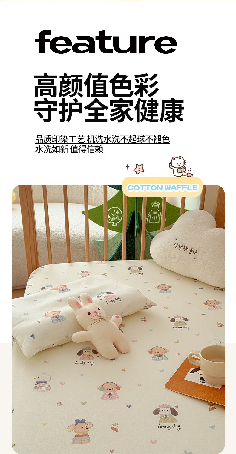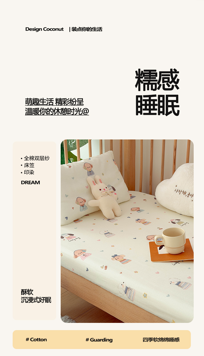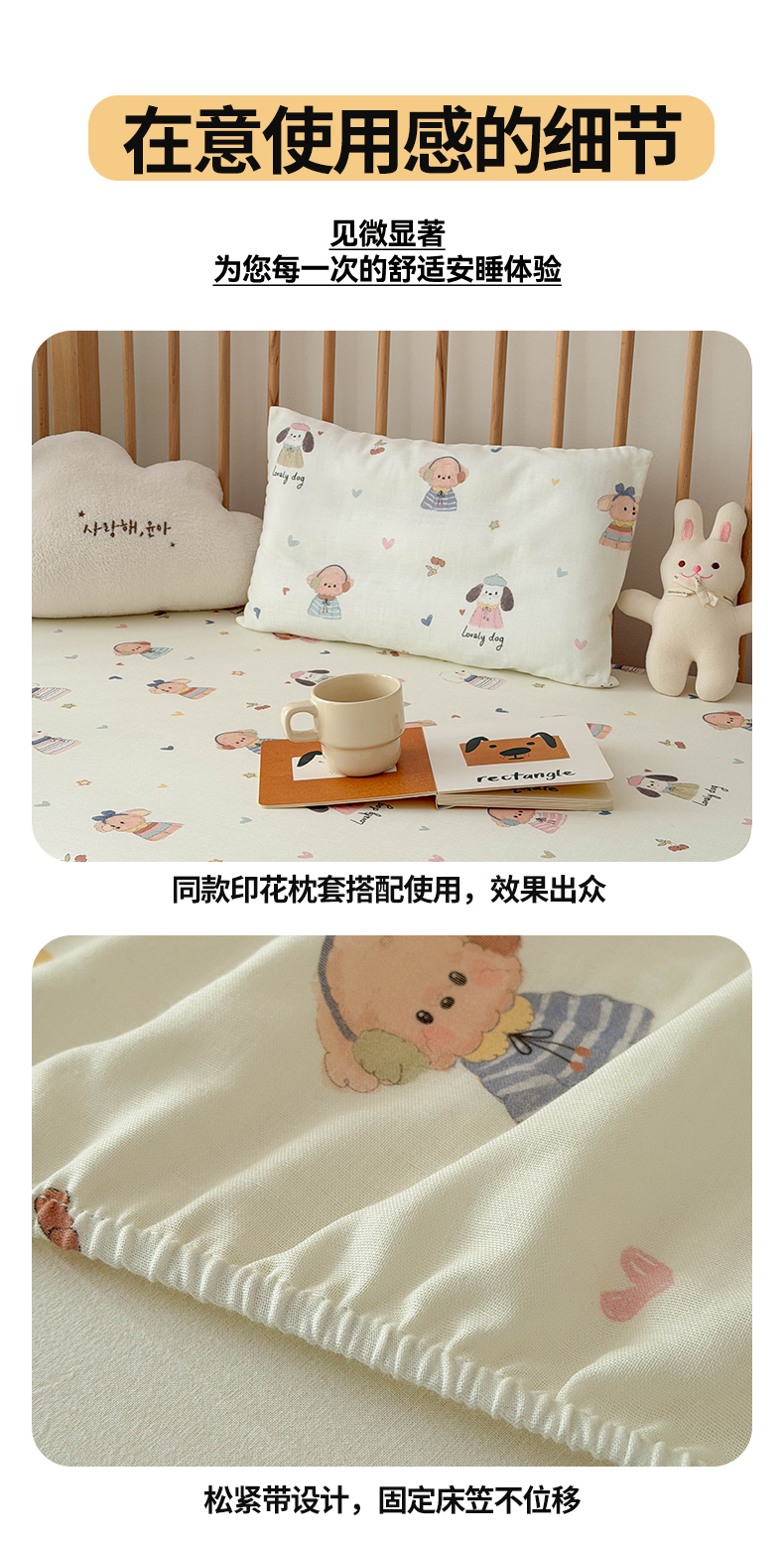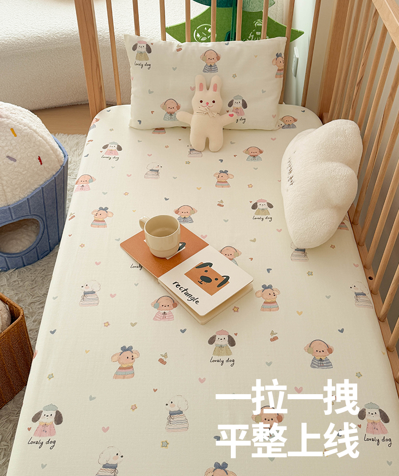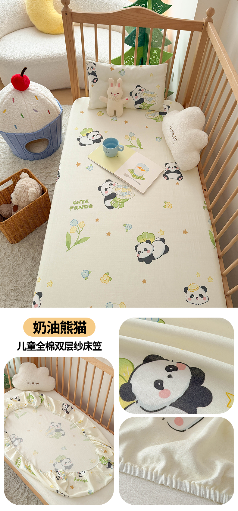 • 91家纺网 家纺一手货源 找家纺 嗨生活 2026新款儿童婴儿床床笠全棉纯棉双层纱床笠席梦思套拼床床笠套 旺旺趣事