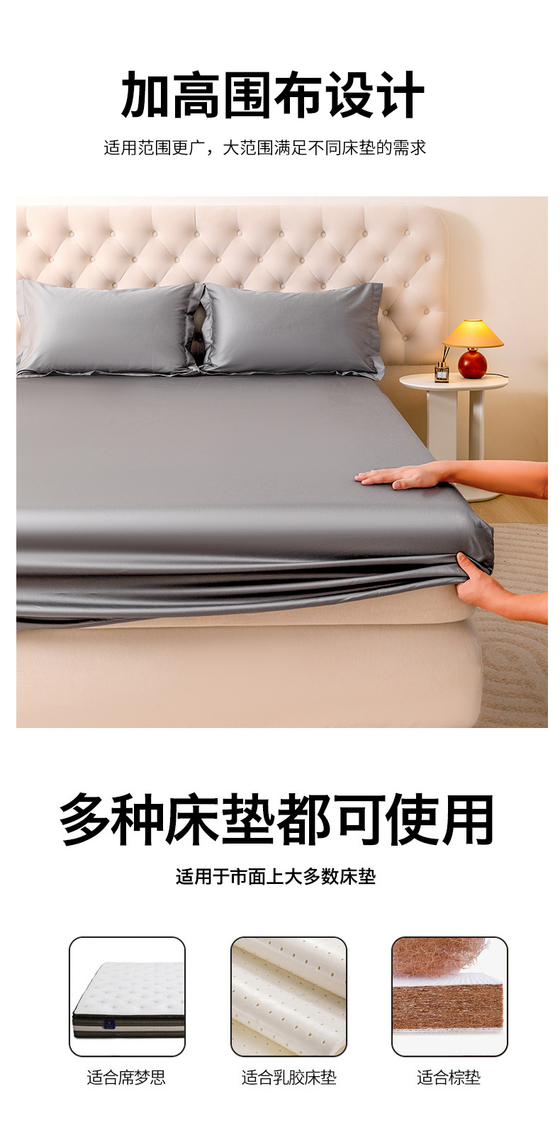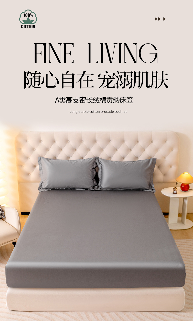 (总)宝时兰 2026新款全棉100S长绒棉床笠单件纯色纯棉贡缎,黛蓝,米白,蜜金,藕粉,浅灰,深灰,水绿,烟紫,叠拍