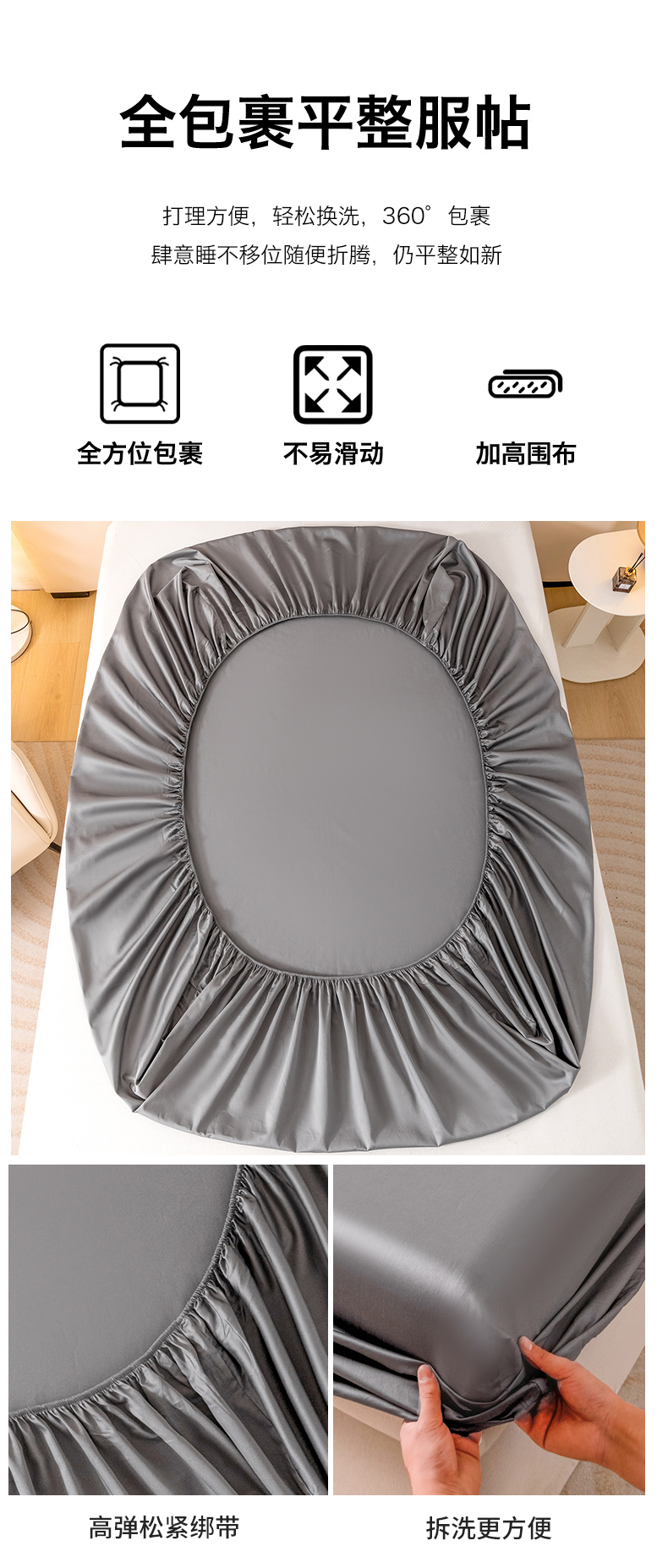 商品名称:宝时兰 2026新款全棉100S长绒棉床笠单件纯色纯棉贡缎 深灰