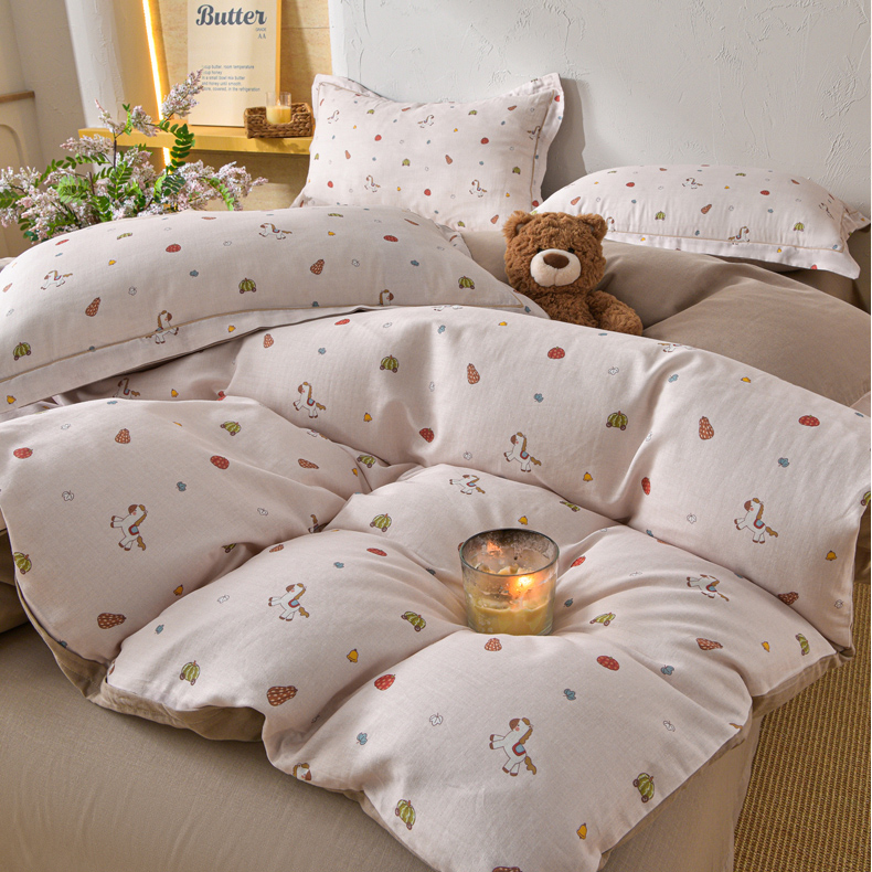 当前位置: 91家纺网 > 商品网购 > 床品套件 > 四件套 > 全棉普通四件套 > 金昱纺 2026新款全棉纯棉双层纱印花四件套 南瓜马车-咖