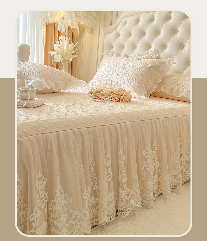 恋尚 2026新款木凉淳浪漫蕾丝床裙三件套-米朵(控价115起) 米朵-米黄