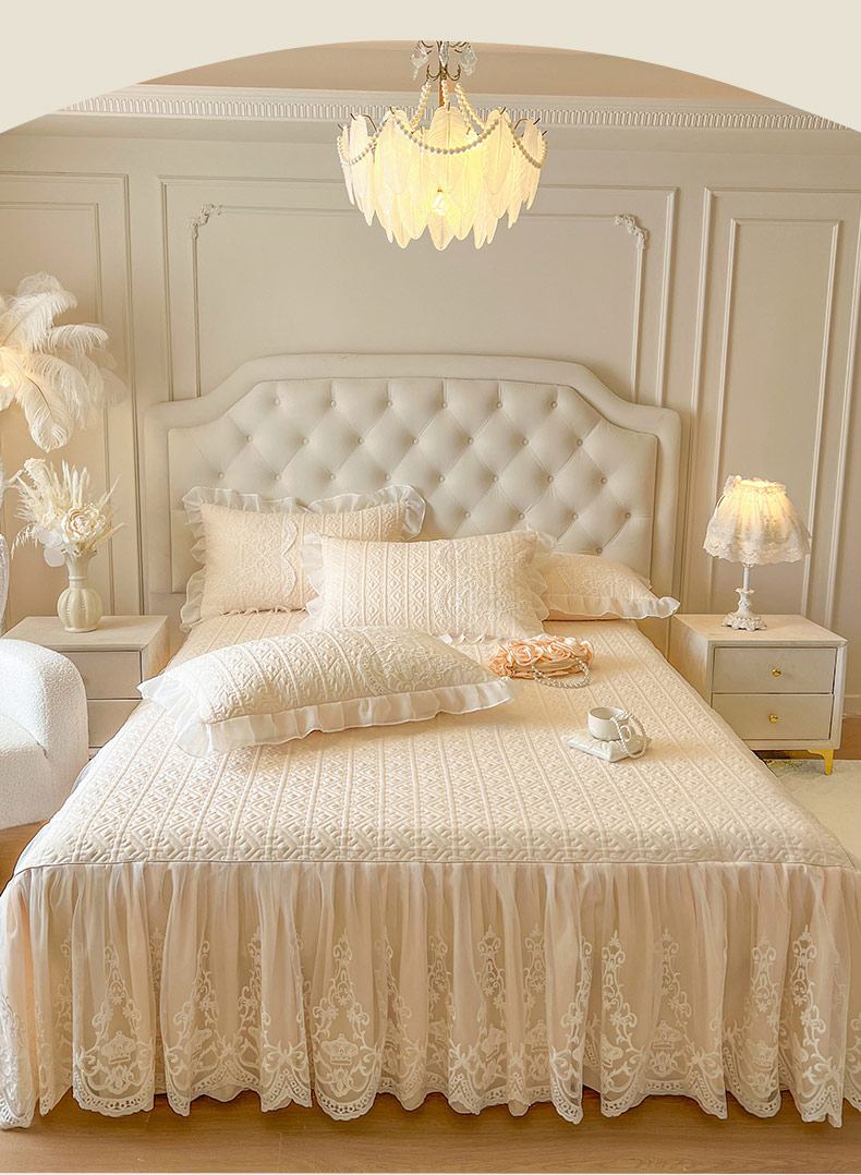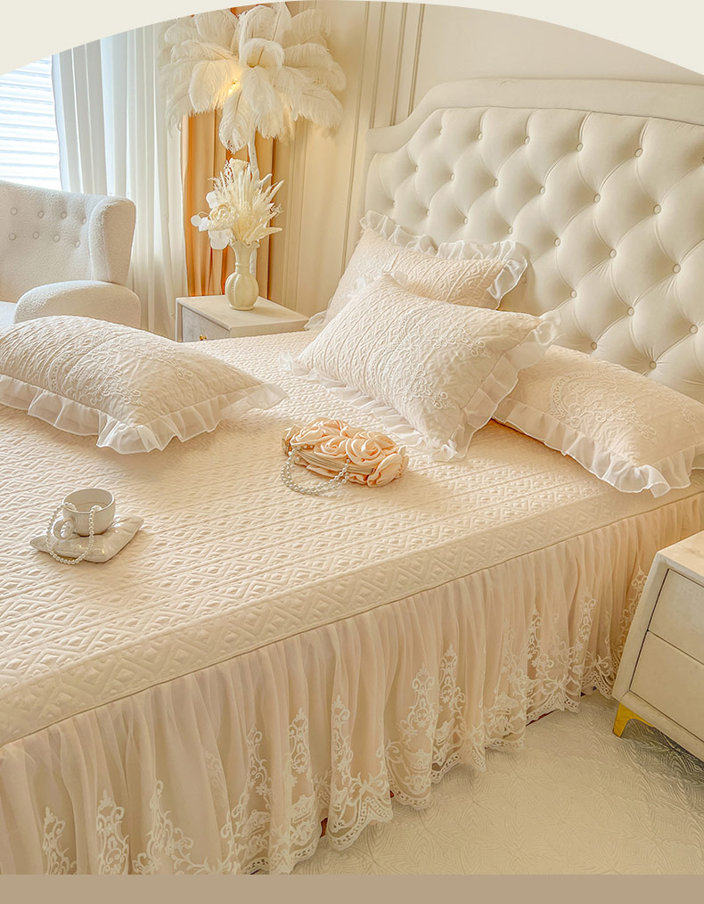 • 91家纺网 家纺一手货源 找家纺 (总)恋尚 2026新款提花蕾丝夹棉单床裙单被套-安妮梦【控价床裙135起 床裙三件170起 四件270起】,安妮梦-米黄,安妮梦-清新粉,安妮梦-水兰,安妮梦-香芋紫
