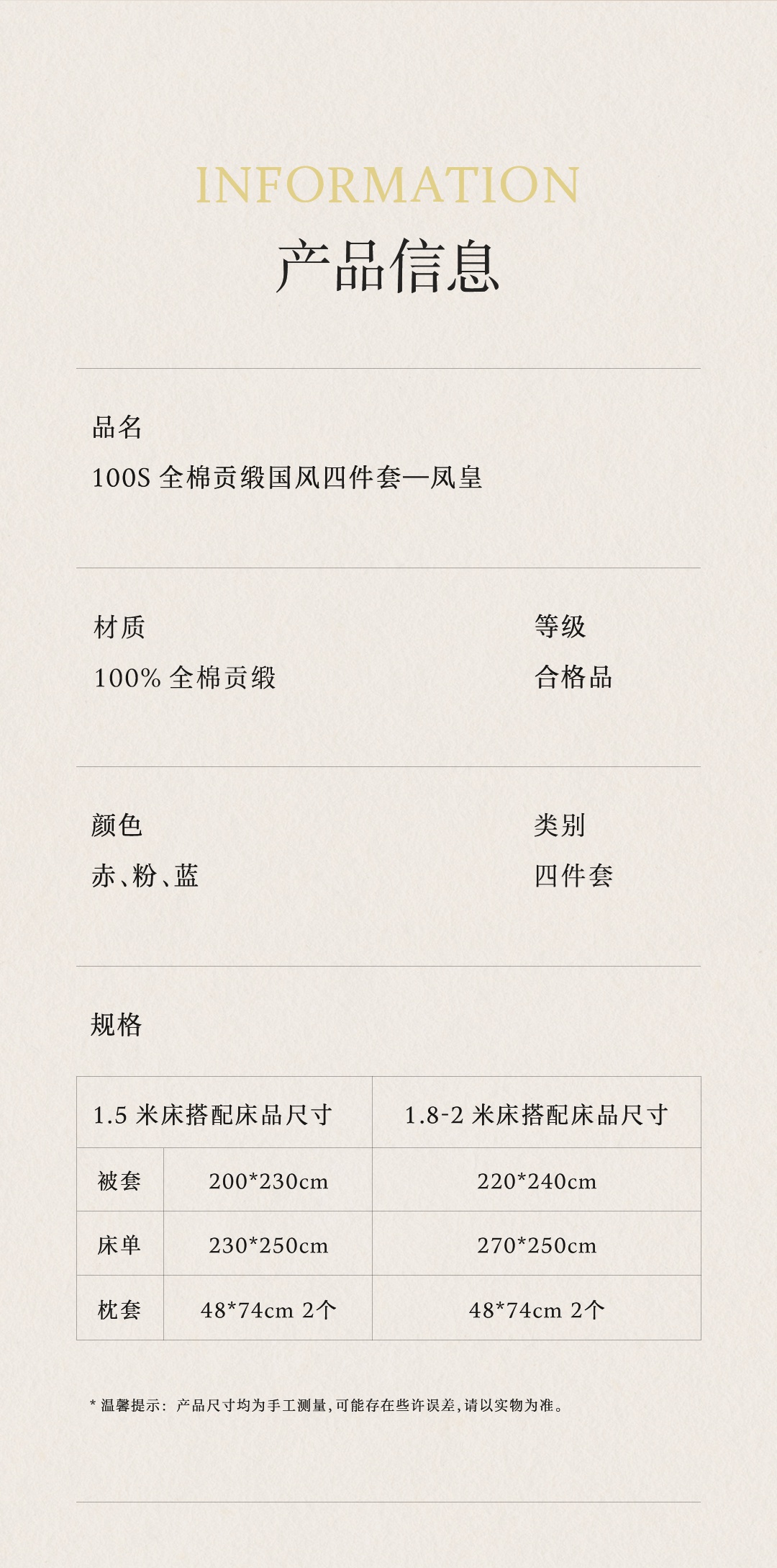(总)佑金甜 2026新款100支全棉贡缎中国风新疆长绒棉纯色双拼四件套(礼盒塑封包装),凤皇-赤,凤皇-粉,凤皇-蓝,花旦-凤仙粉,花旦-樱落,花旦-祖母绿,中华醒狮-东方蓝,中华醒狮-松灰,中华醒狮-田园绿