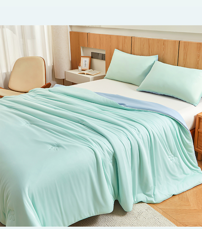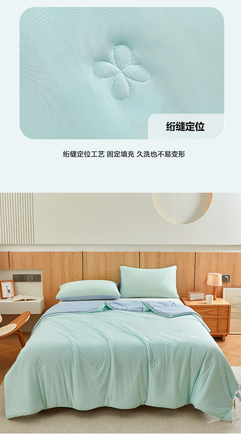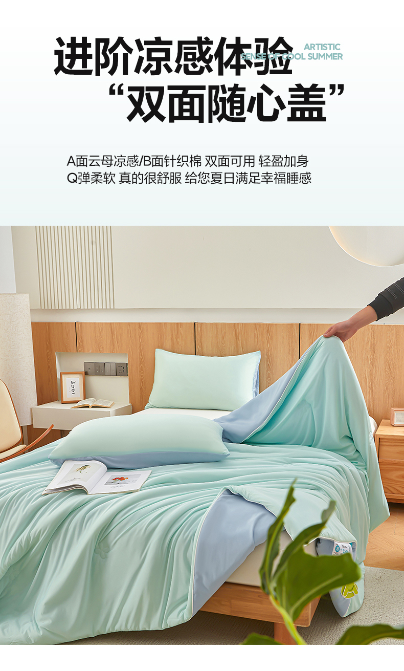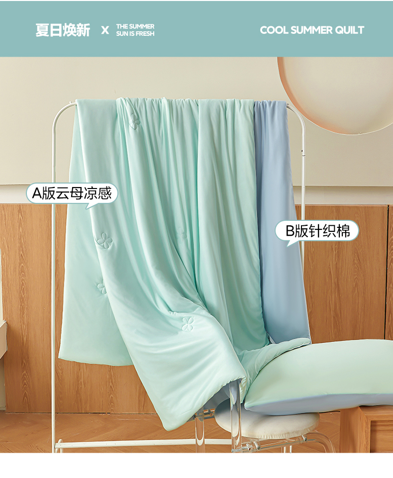 商品名称:悦织语 2026新款A类云母凉感丝(含氨纶)+针织棉双面可用夏凉被空调被被子被芯 丹青绿+天空蓝