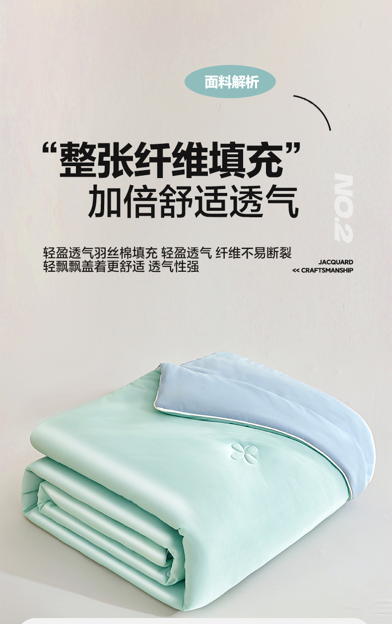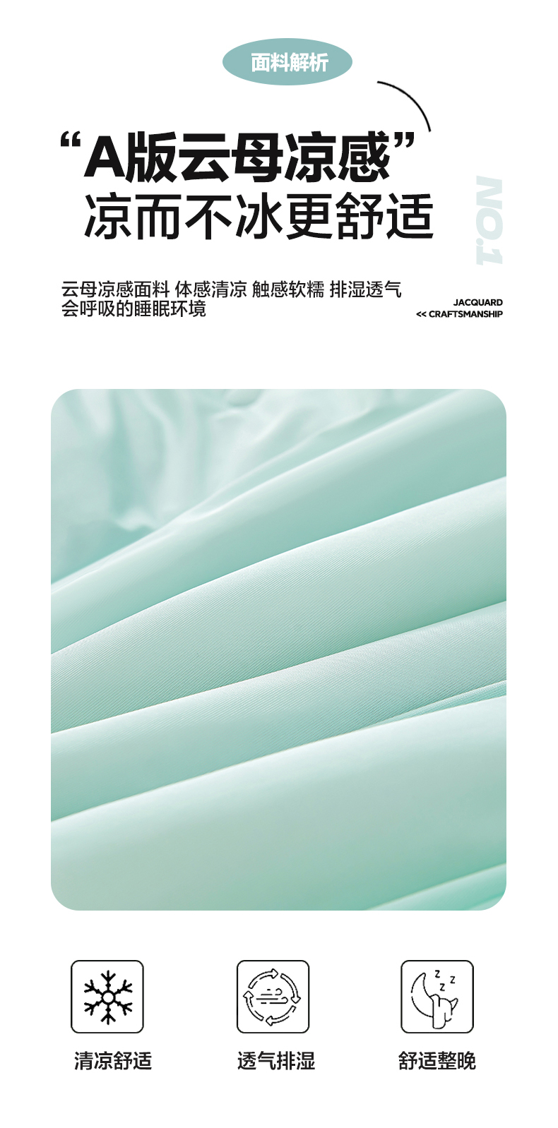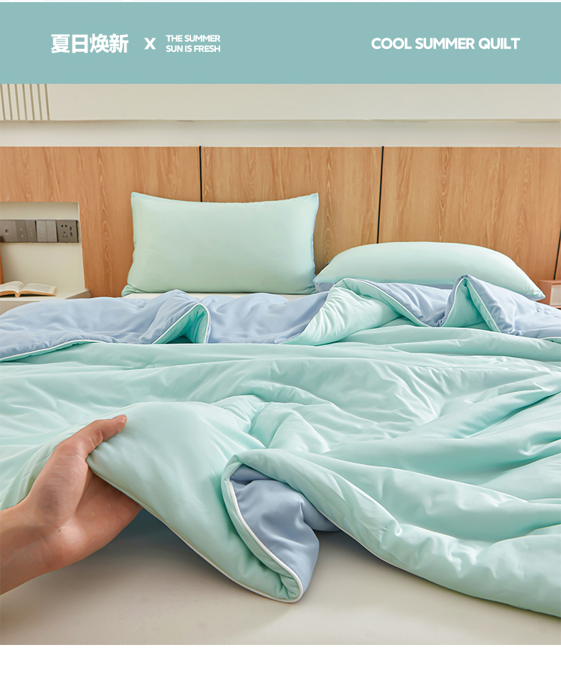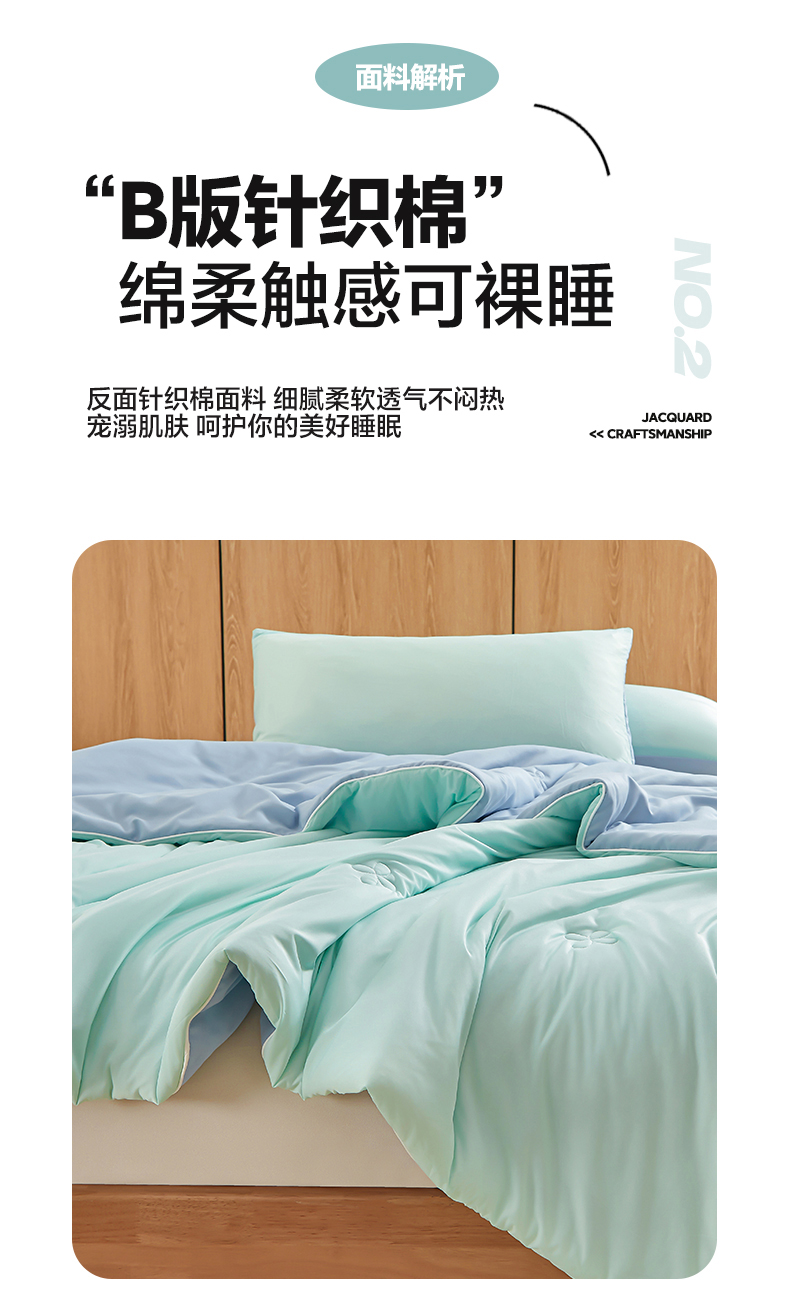 商品名称:悦织语 2026新款A类云母凉感丝(含氨纶)+针织棉双面可用夏凉被空调被被子被芯 丹青绿+天空蓝