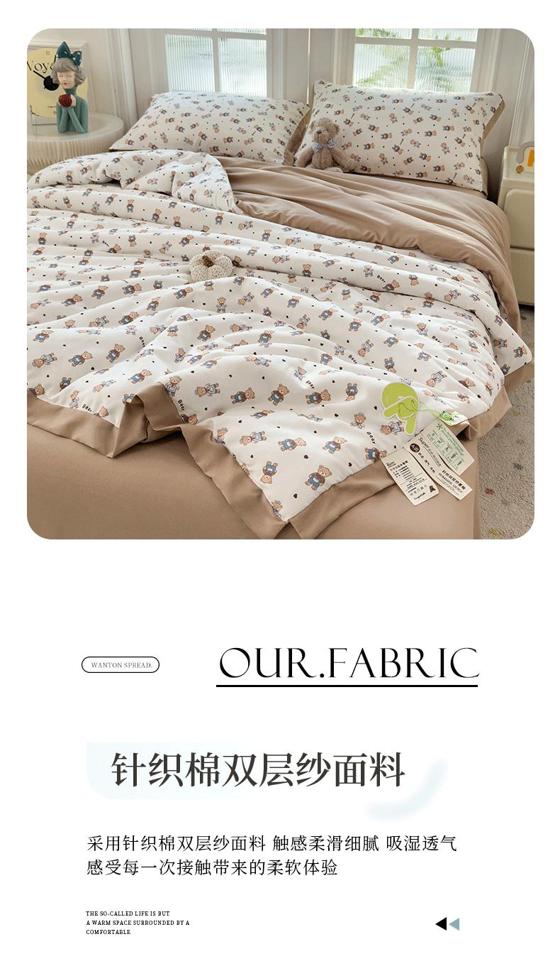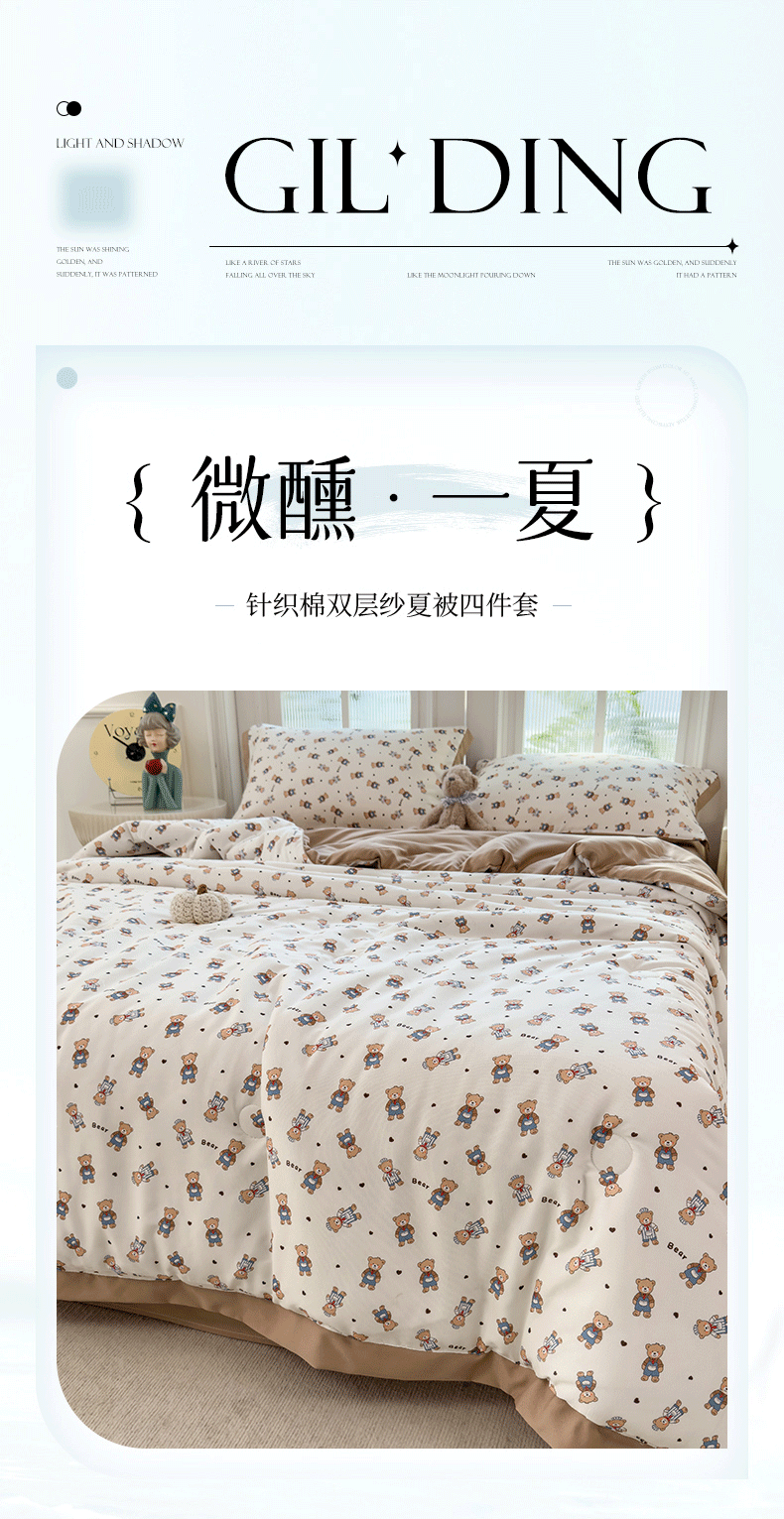 当前位置: 91家纺网 > 商品网购 > 床品套件 > 四件套 > 夏被四件套 > 悦织语 2026新款A类针织棉双层纱韩版夏被四件套空调被 希格文