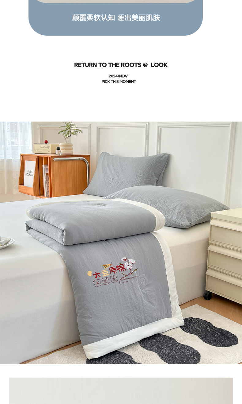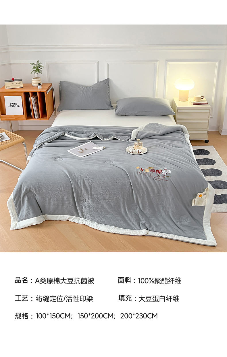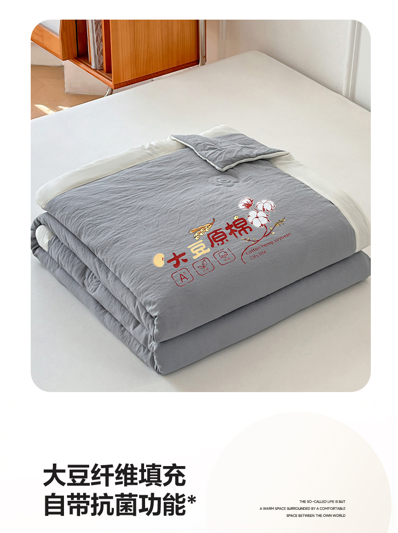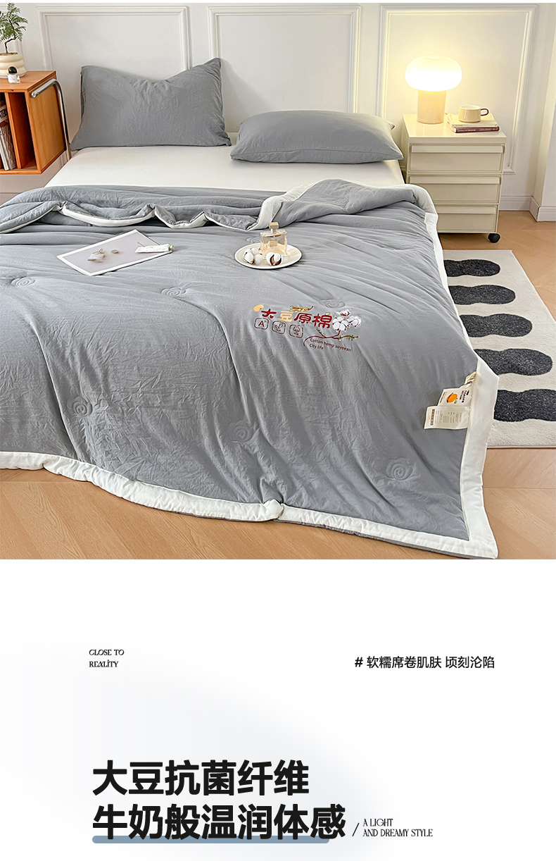 商品名称:悦织语 2026新款A类纯色原棉大豆夏被 原棉-灰