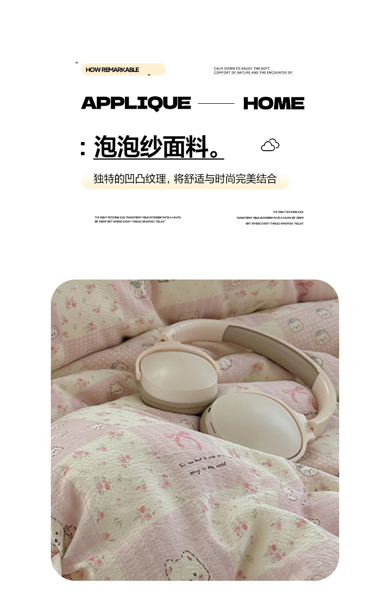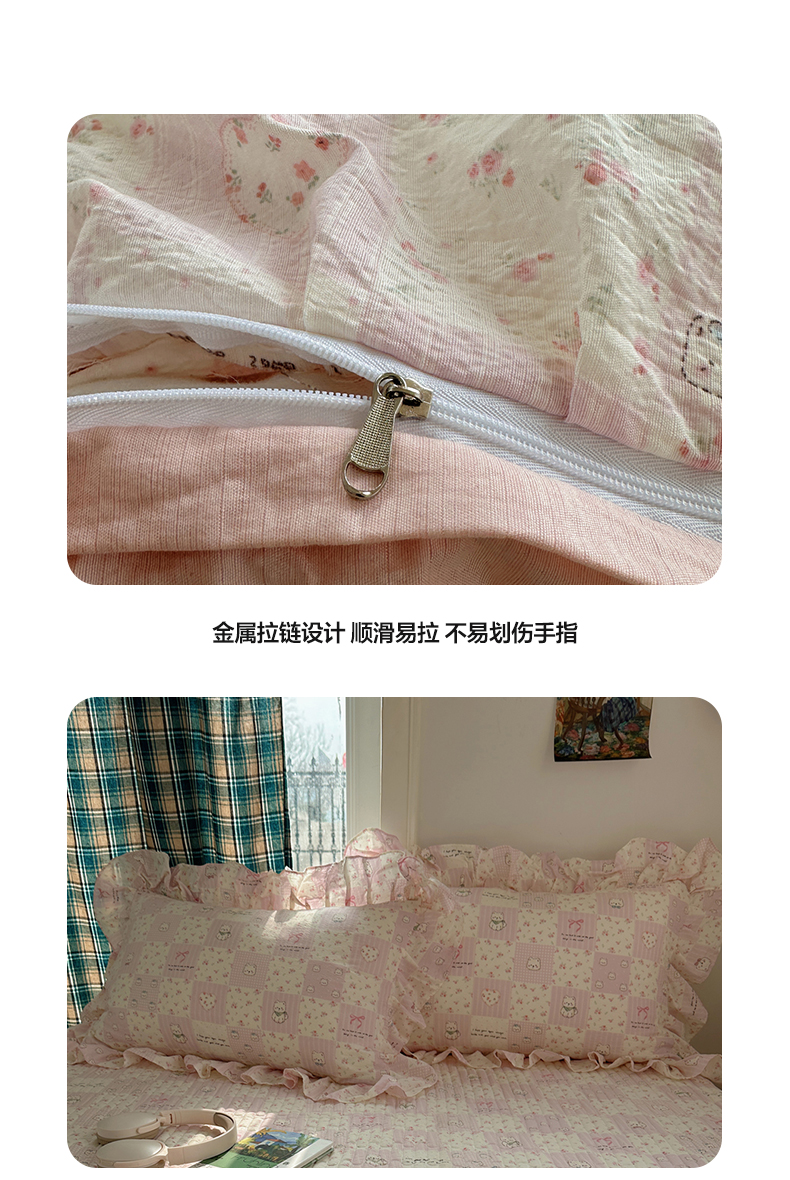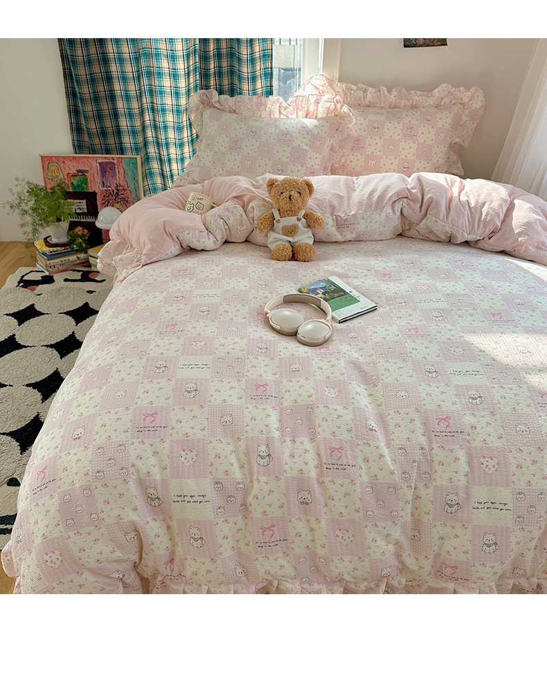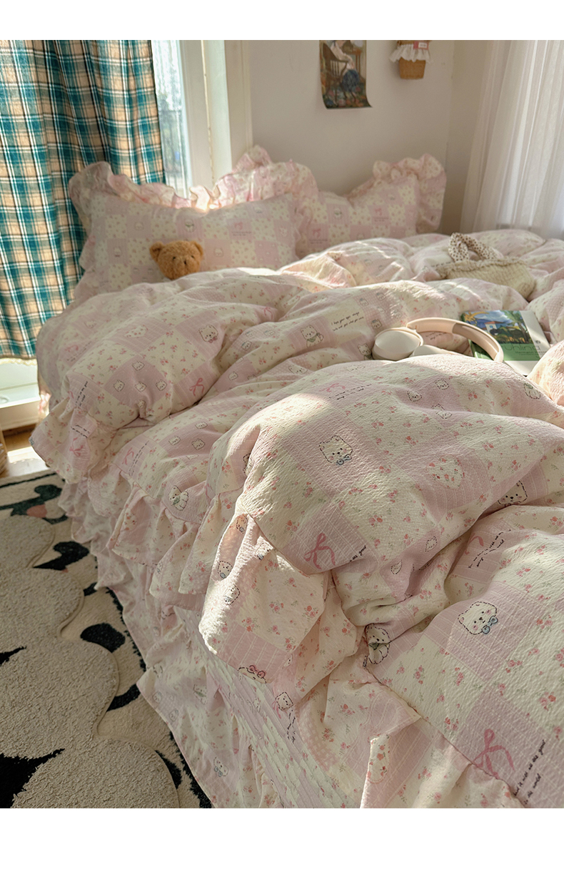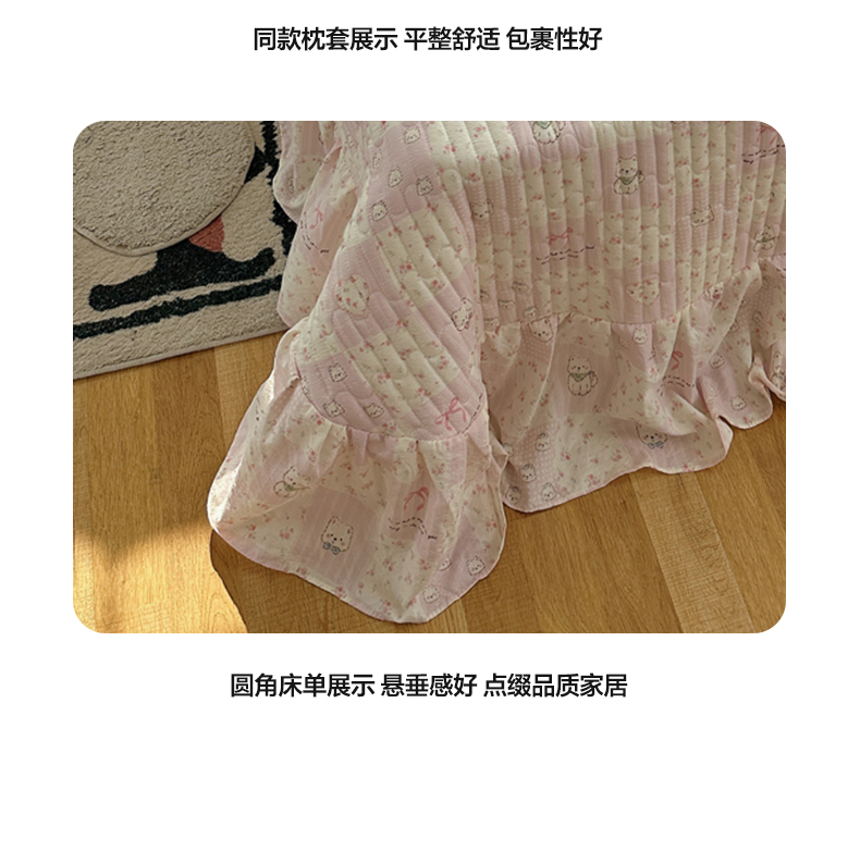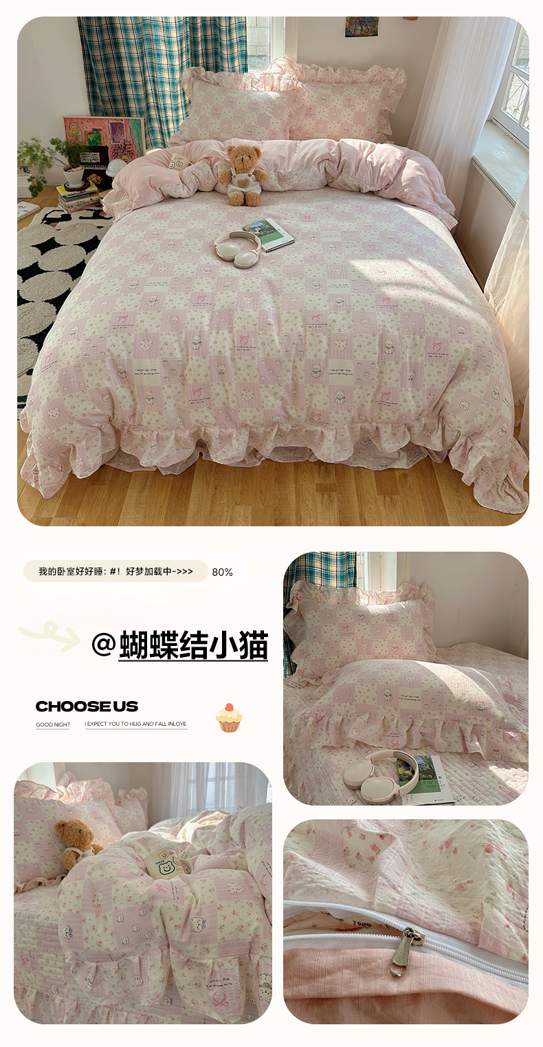 当前位置: 91家纺网 > 商品网购 > 床品套件 > 四件套 > 其它四件套 > 摩妮卡 2026春夏新款韩版花边水洗棉泡泡纱床盖四件套 蝴蝶结小猫