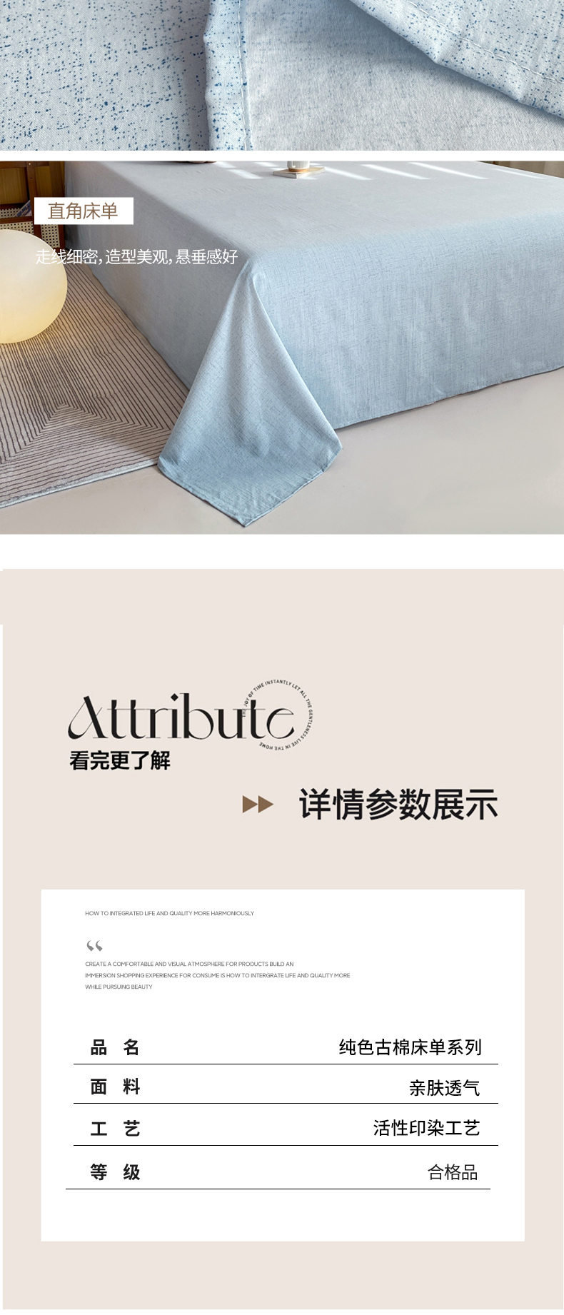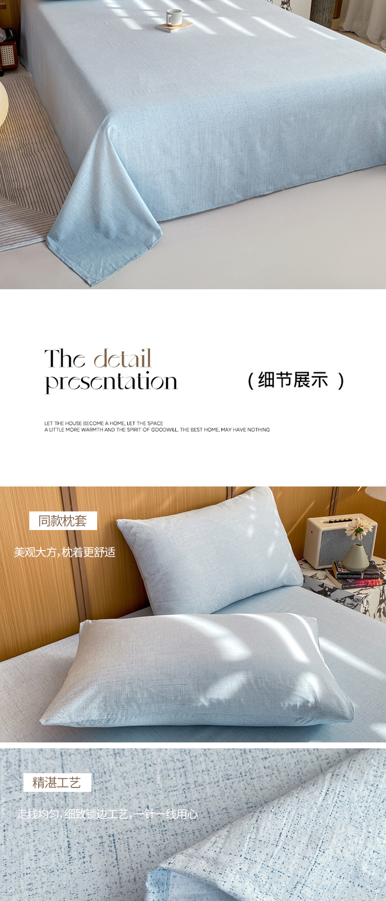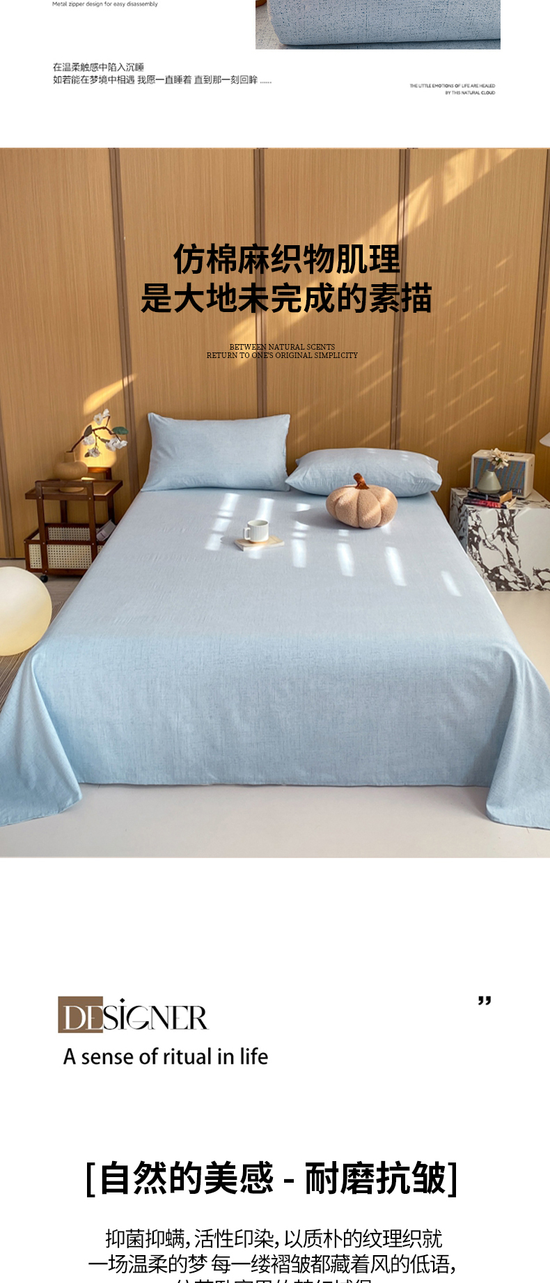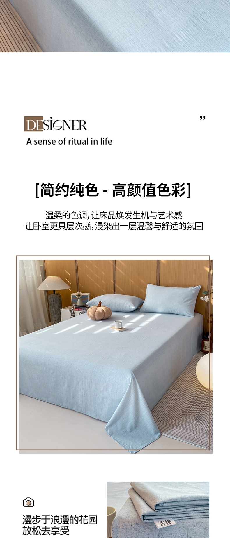 商品名称:麒东家纺 2026年新款古棉麻单床单 天蓝