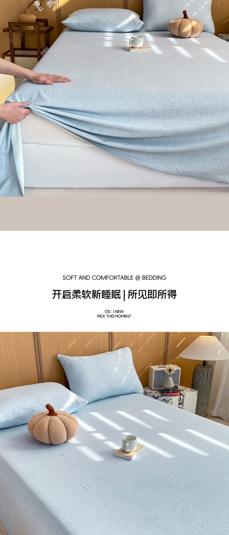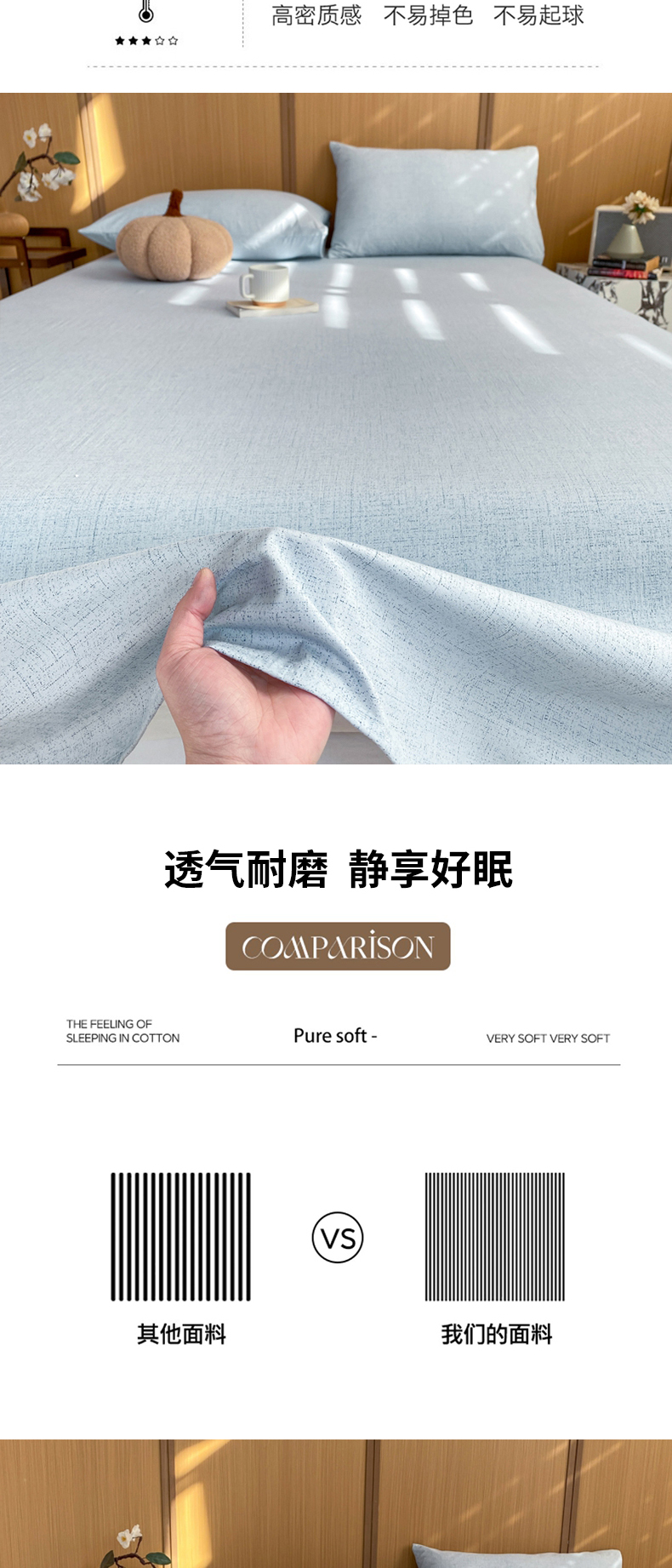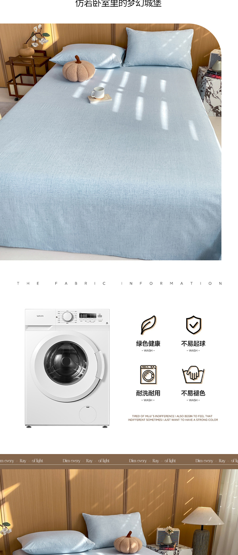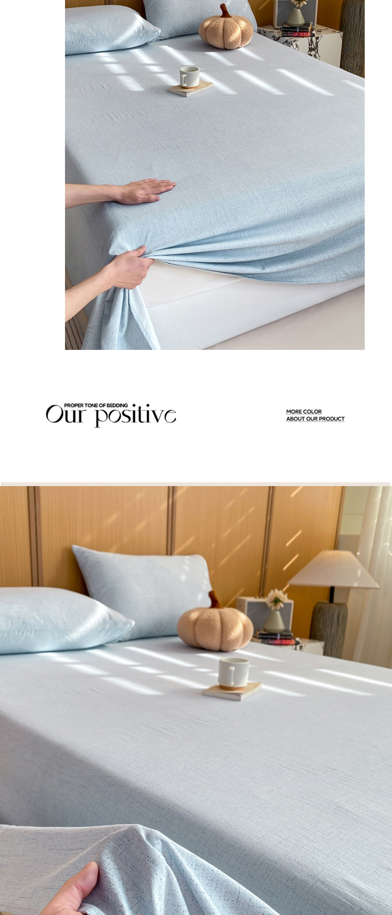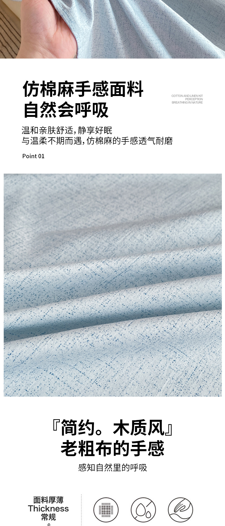 商品名称:麒东家纺 2026年新款古棉麻单床单 天蓝