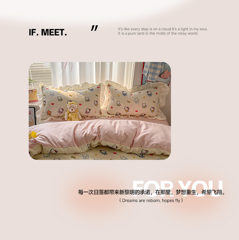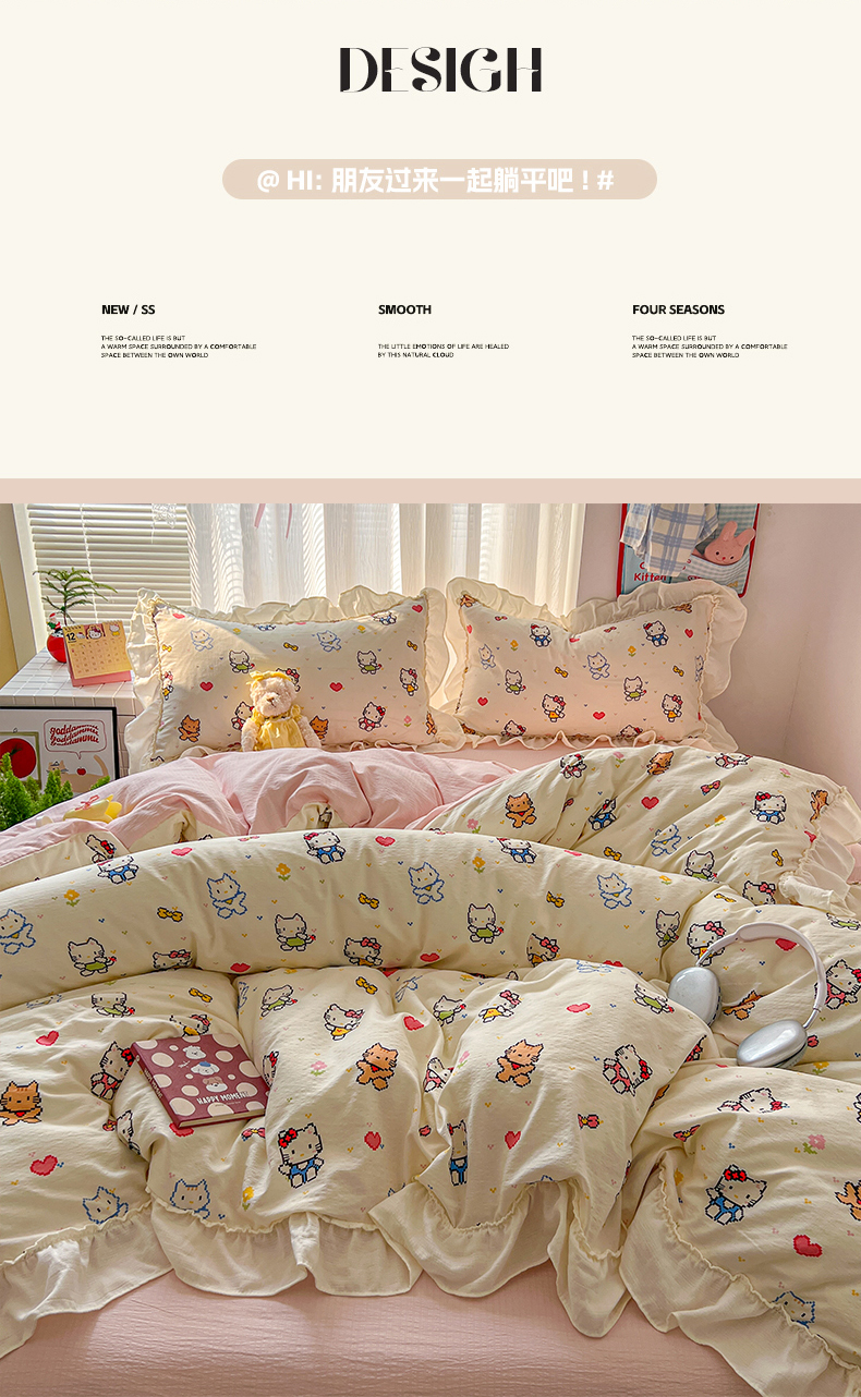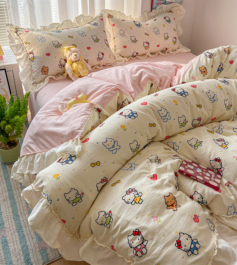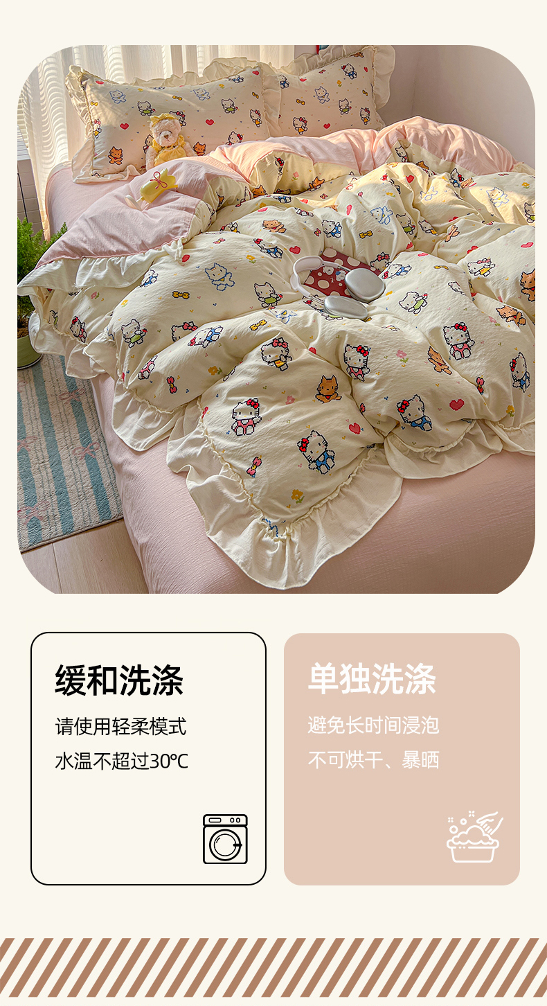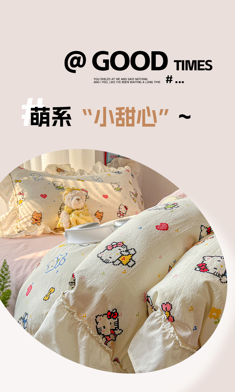 当前位置: 91家纺网 > 商品网购 > 床品套件 > 四件套 > 双层纱四件套 > 老K (原美阁) 2026新款木棉双层纱四件套卡通韩版公主风四件套 爱心猫