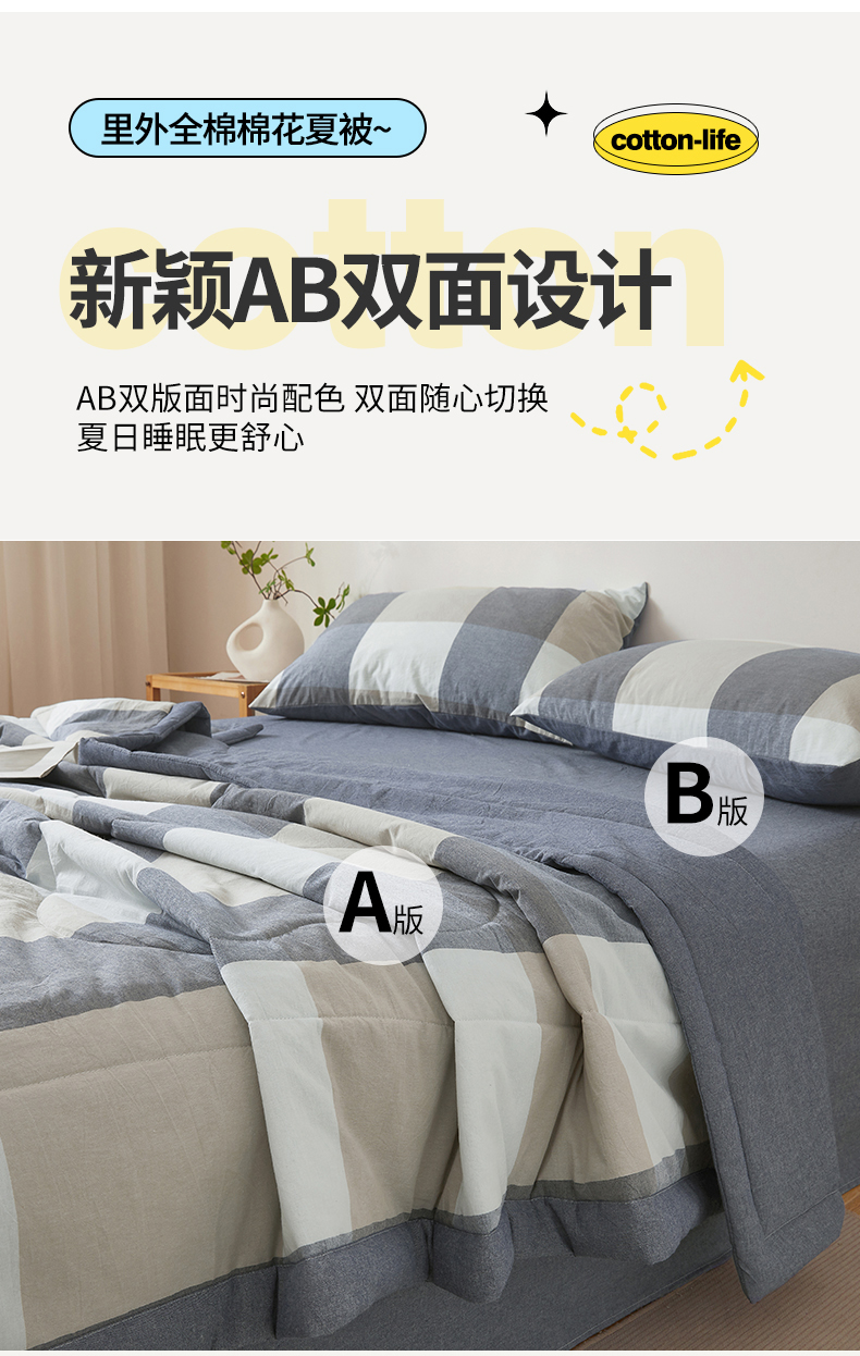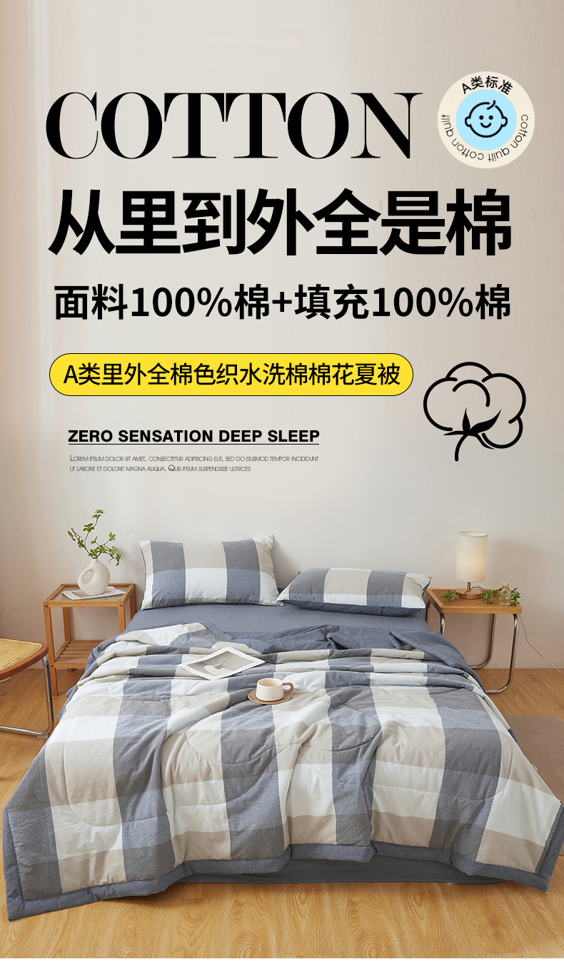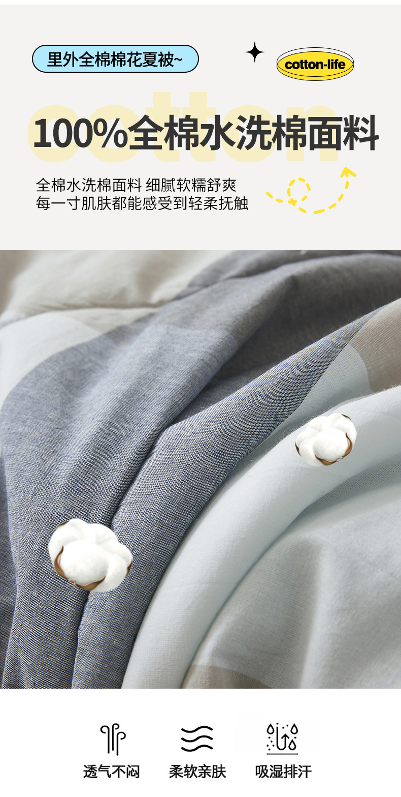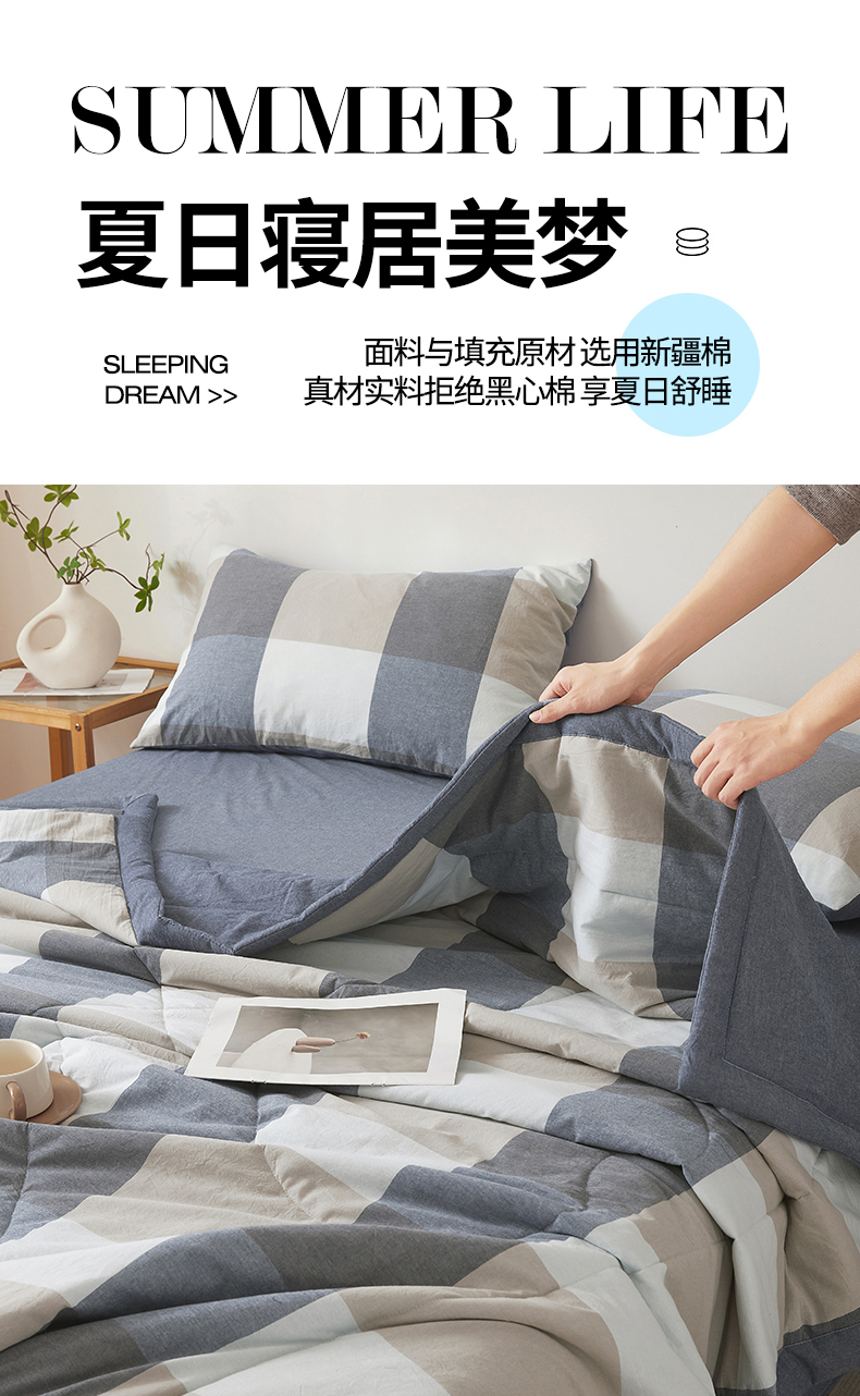 (总)西域种棉人·千百笠 2026新款A类新疆棉花夏凉被加宽包边水洗棉无印格子印花吸湿透气棉花夏被空调被,格子灰,格子蓝,格子熊,格子紫,小格灰,小格绿