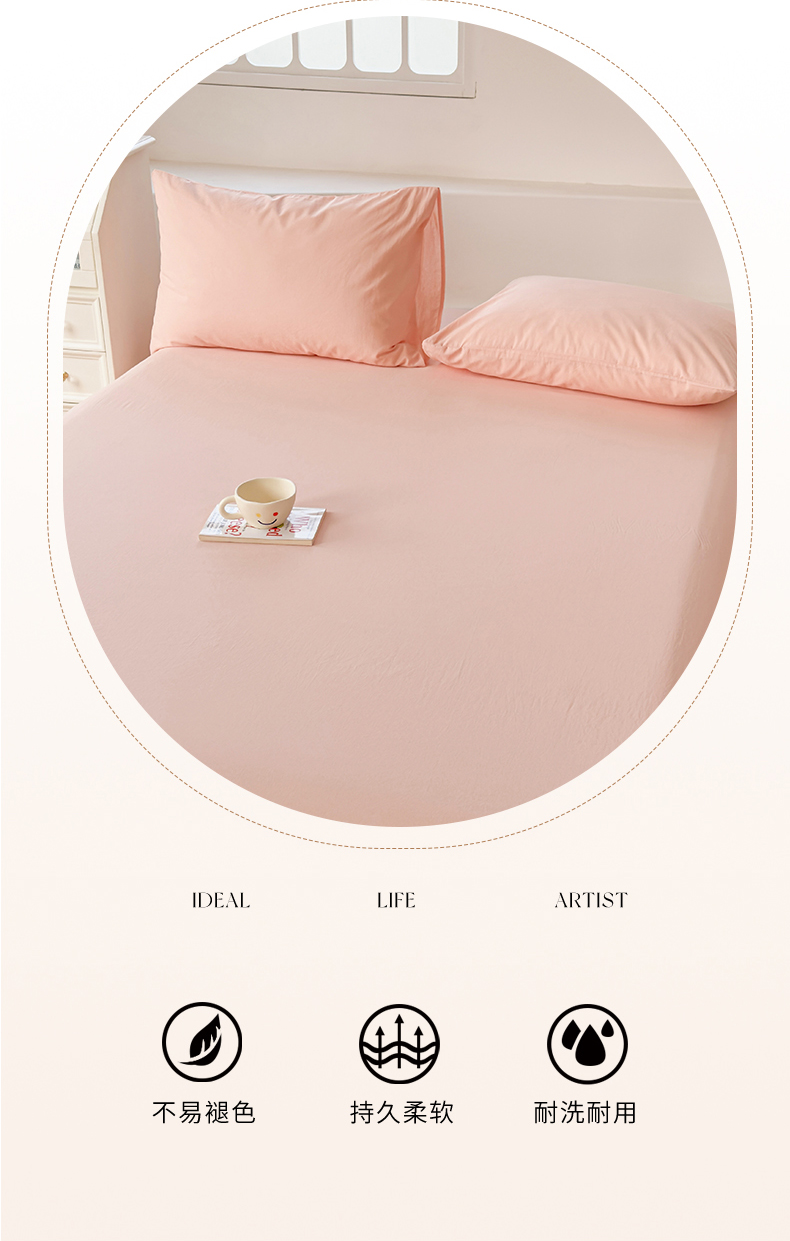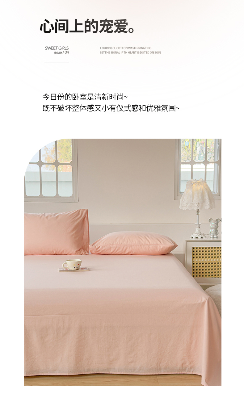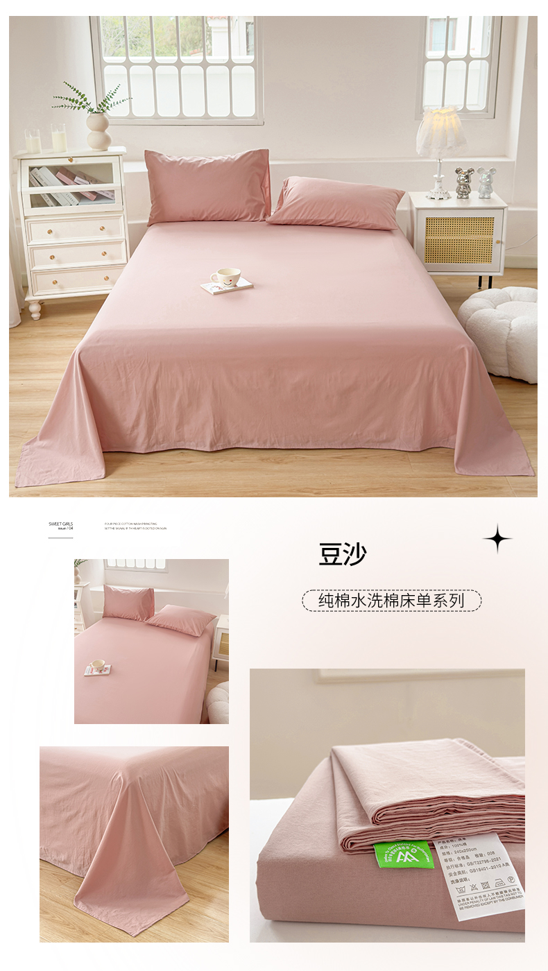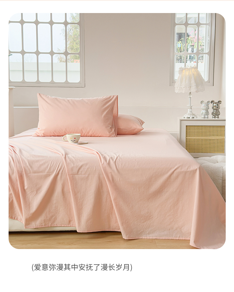 柠萌家居 2026年新款全棉A类母婴级水洗棉纯棉床单纯色系列单品 浅粉
